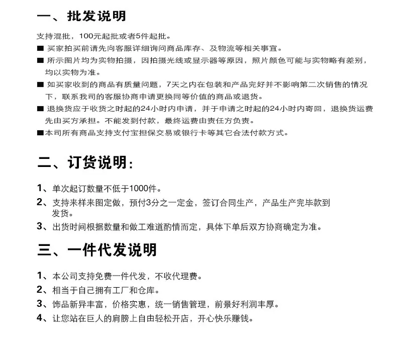 Los productos de muestra solo se pueden fabricar tras la firma del contrato formal y el pago del depósito. Se cobrará el costo de la muestra, según corresponda. El costo de la muestra se reembolsará una vez realizado el pedido formal, siempre que la cantidad sea de 10 000 unidades. El tiempo empleado en la producción de la muestra no se contabiliza en el período de producción.