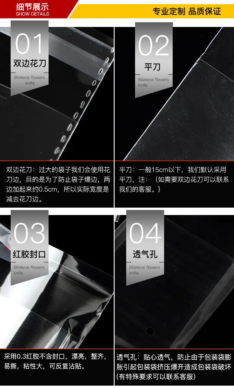 La Fábrica de Empaques Yiwu Boxi se encuentra en la Zona Industrial de Niansanli, ciudad de Yiwu, Jinhua, provincia de Zhejiang. Fundada en 2009, cuenta con diez años de experiencia. Con la filosofía corporativa de "ganar con calidad y establecer una empresa de renombre", basada en la producción a gran escala y un estricto control de calidad, se ha ganado una excelente reputación entre sus clientes, tanto nuevos como antiguos.Nuestra fábrica se especializa en la producción de bolsas OPP autoadhesivas, bolsas planas, bolsas impresas, bolsas con sello invertido, bolsas con cabezal de cartón y diversas bolsas OPP transparentes. Estas bolsas se utilizan ampliamente en el exquisito embalaje exterior de ropa, papelería, suministros de oficina, calcetines, bufandas, juguetes, cinturones, accesorios y otros productos. Siempre hemos servido a nuestros clientes con integridad y calidad, con un enfoque centrado en el cliente para expandirnos al mercado y ganando continuamente nuevos clientes gracias a nuestra reputación. Nos convertiremos en su socio gracias a nuestro nivel profesional, precios razonables y un servicio de alta calidad.Al entrar en temporada alta en la segunda mitad del año, los pedidos realizados después de las 17:00 se enviarán al día siguiente. Si tiene prisa, comuníquese con atención al cliente con antelación.