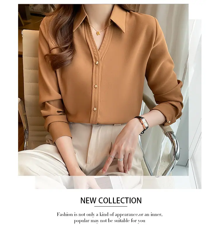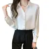 Camisa Marrón de Satén para Mujer Otoño Nuevo 2025 Primavera Otoño Temperamento Manga Larga Top Moda Retro