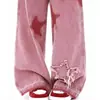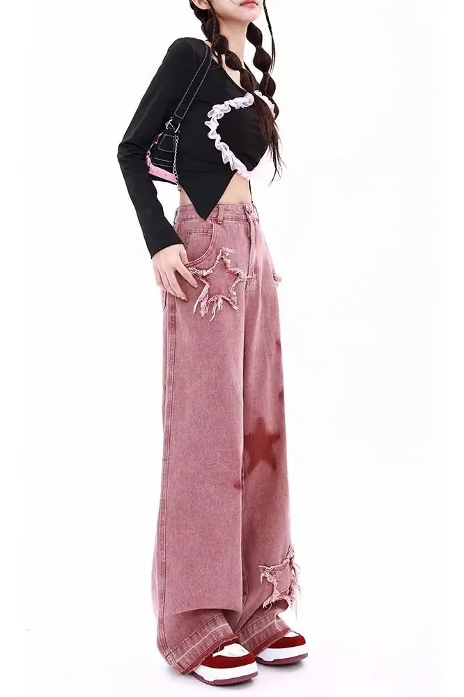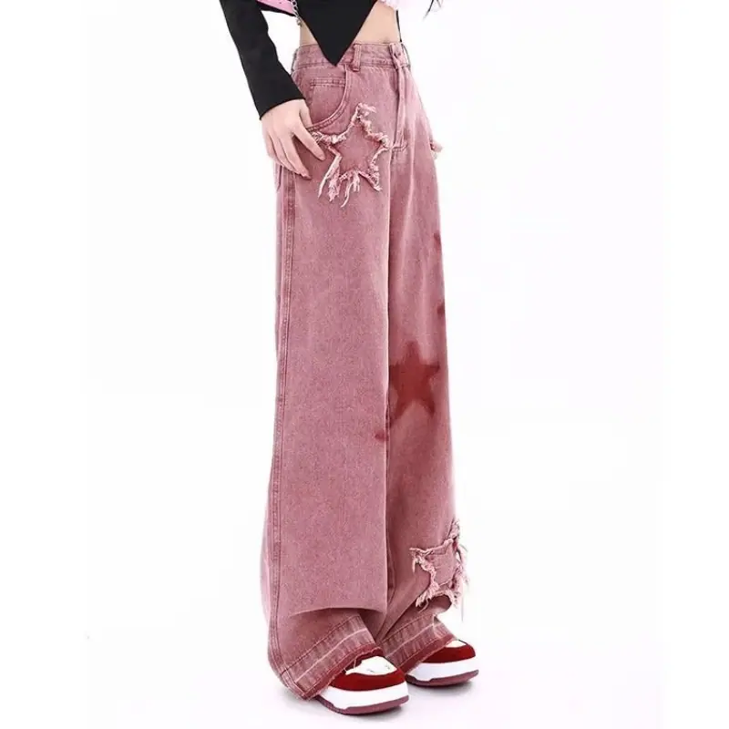 Jeans Americanos Retro con Bordado de Estrella para Mujer Principios de Otoño Nuevo Uso Dopamínico Pantalones de Pierna Ancha Sueltos de Cintura Alta