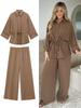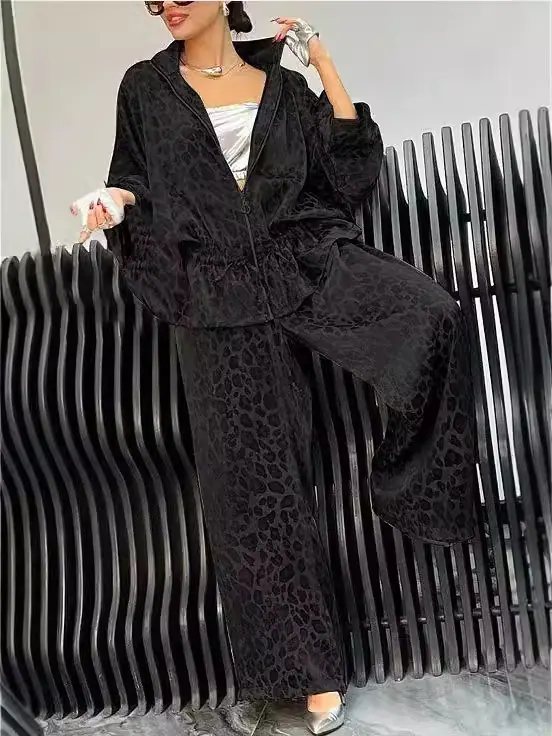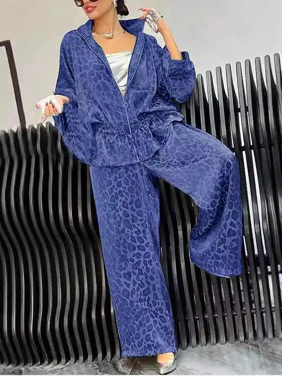 Nuevo Traje de Dos Piezas para Mujer de Manga Larga Holgado Estampado de Leopardo Transfronterizo Camisa Pantalón Comercio Exterior Traje para Mujer Europeo y Americano