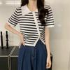 Suéter de Punto Estilo Universitario Cuello Polo Manga Corta Inclinada Color en Contraste Abertura Ajustado Adelgazante Elegante Combinable Top de Mujer a la Moda