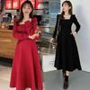 Vestido Largo Elegante Estilo Hepburn Talla Grande para Mujer Otoño e Invierno Nuevo Adelgazante Manga Larga Vestido Súper de Hada para Mujer