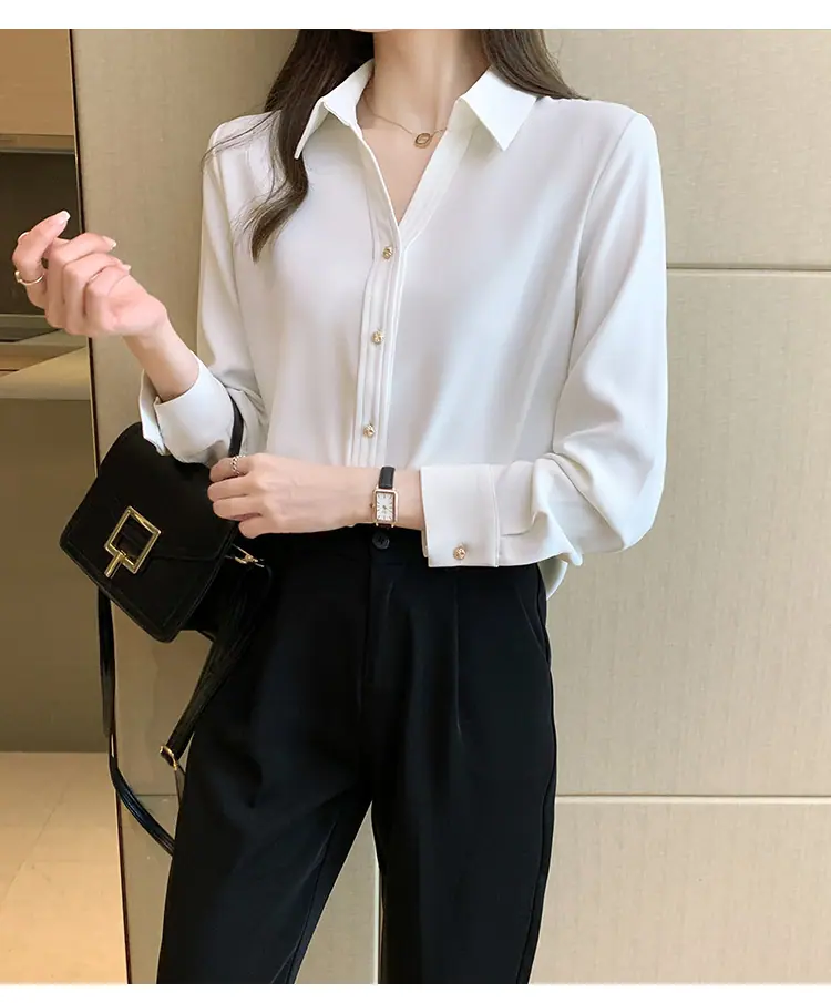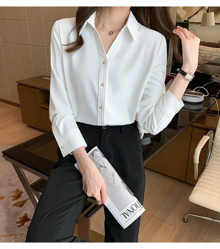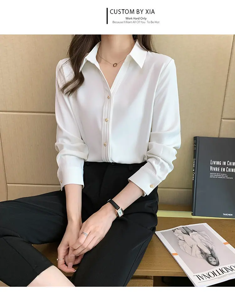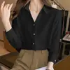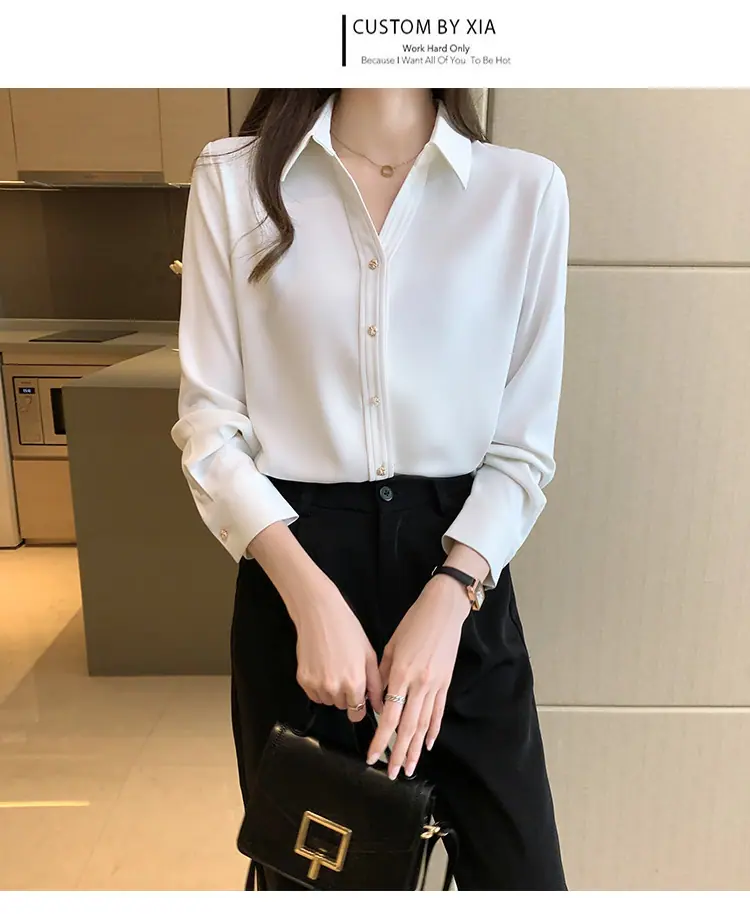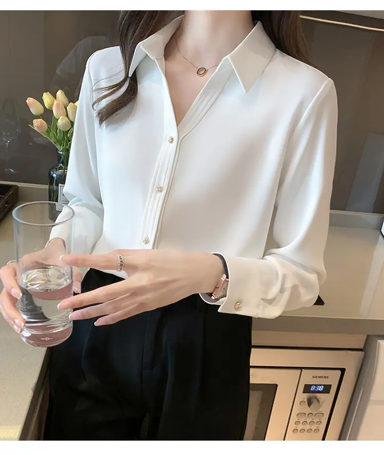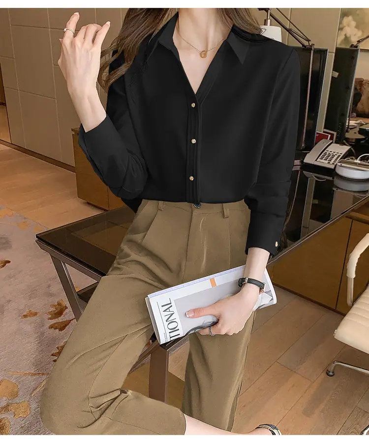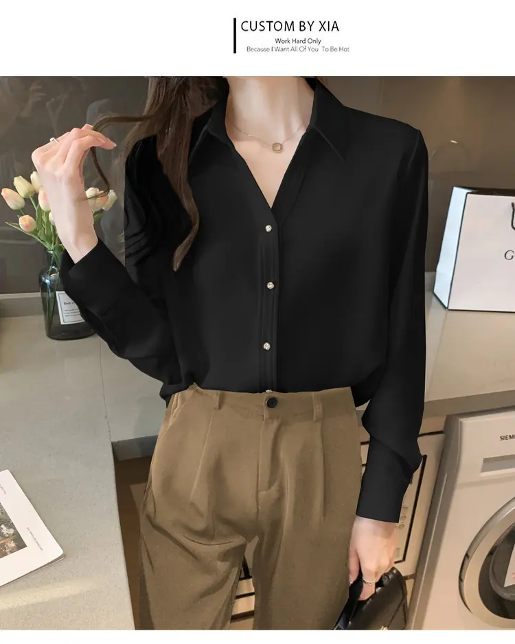 En stock Camisa marrón de satén de calidad para mujer, blusa elegante de manga larga para otoño, primavera y otoño, moda vintage.