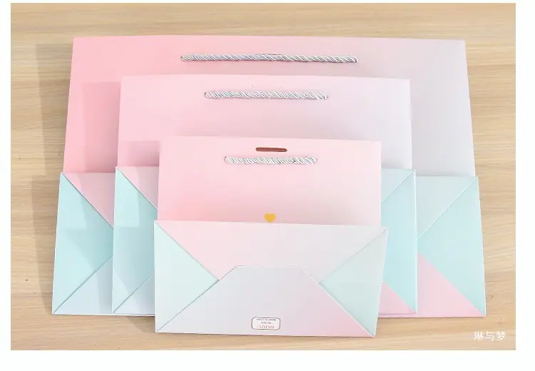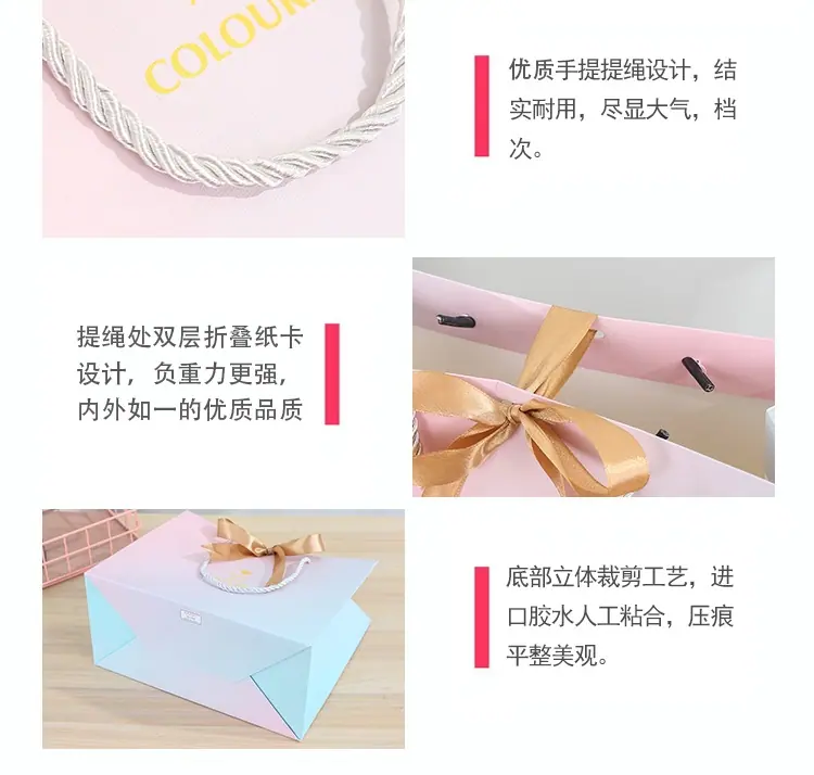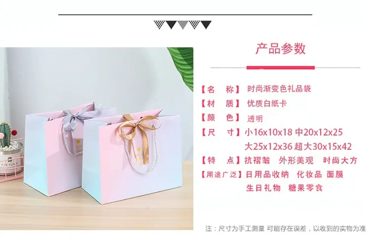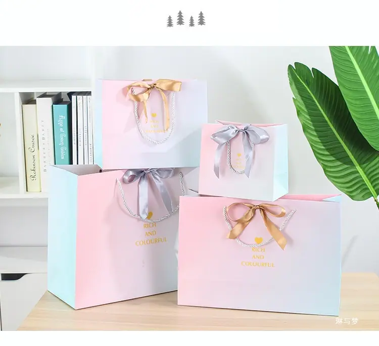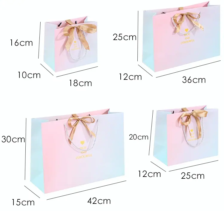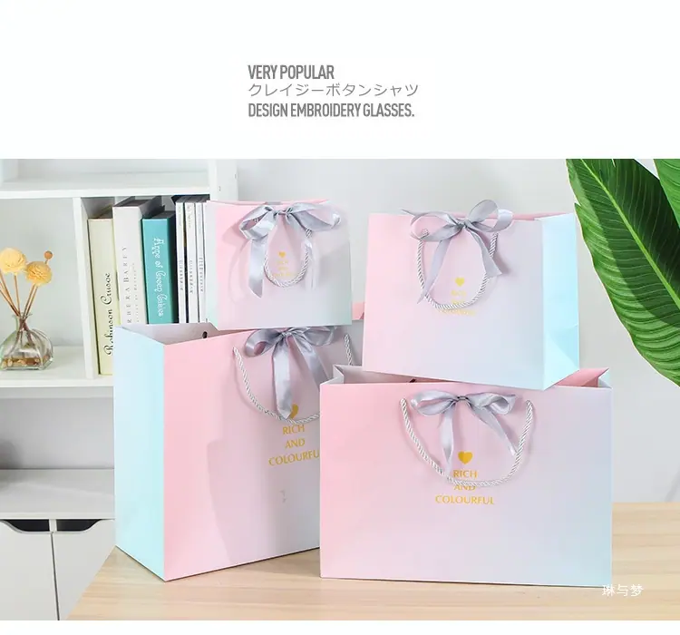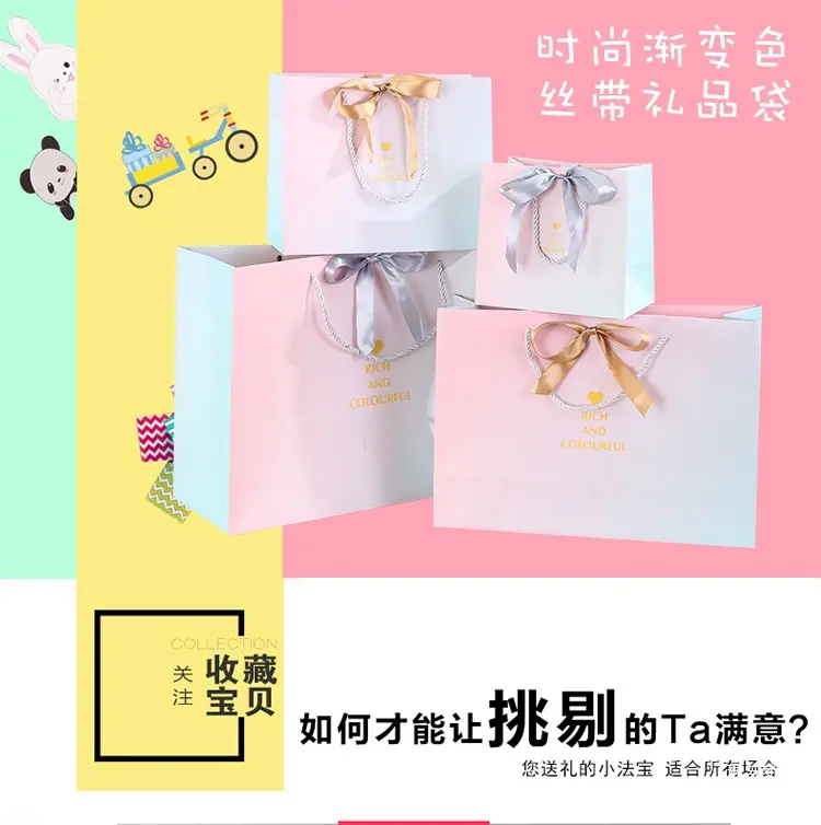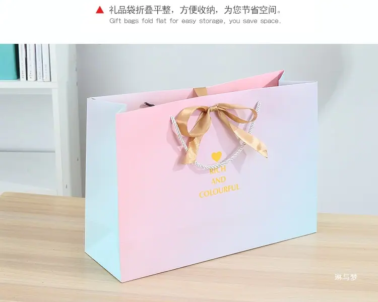 Nuevo embalaje estilo ins bolsa de regalo degradada bolsa tote para tienda de ropa bolsa de papel logotipo personalizado bolsa de regalo