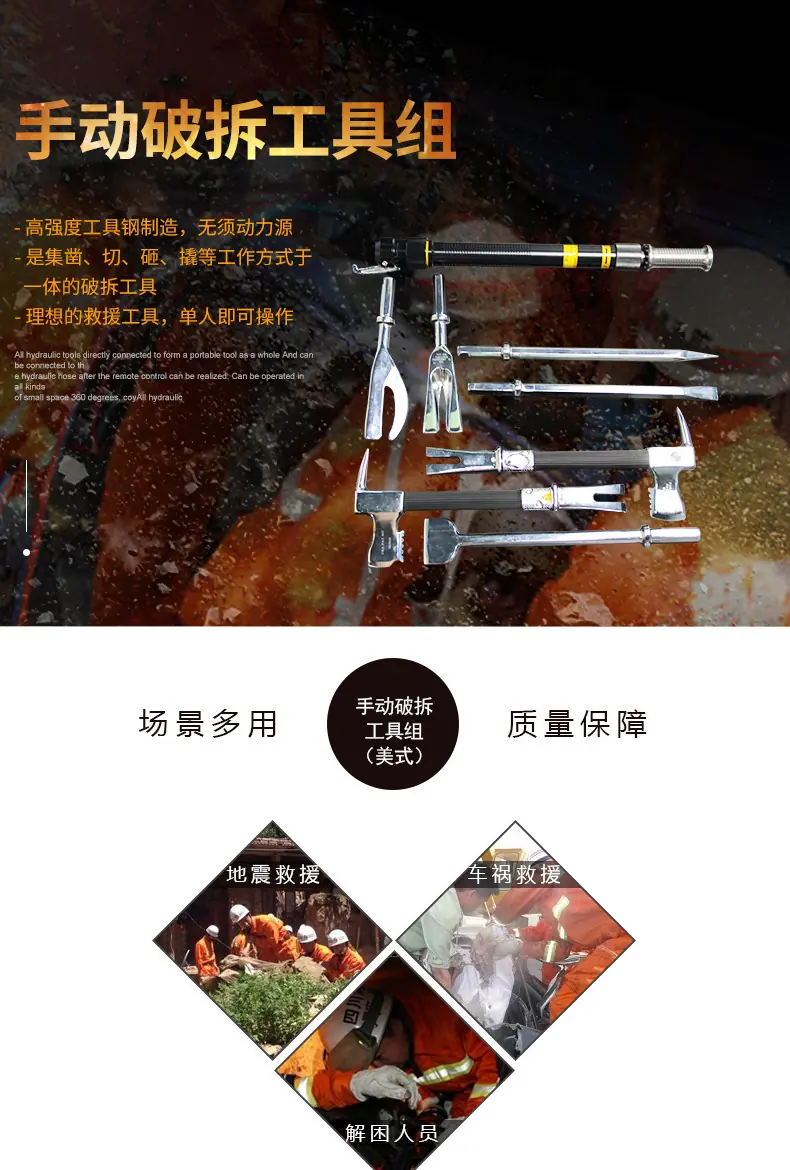 El juego de herramientas de entrada manual es una herramienta de rescate multiusos adecuada para funcionar en diferentes entornos y situaciones. Adecuado para vehículos de rescate, cuerpos de bomberos, equipos especiales de policía (apertura de puertas), rescate especial por accidente, etc.; trabajo de rescateBIPreparar. La varilla deslizante se puede usar con cinco herramientas diferentes de acero forjado reforzado,para adaptarse a diferentes necesidades;Por ejemplo:Rasga la lámina de metal(como carcasa de coche, avión), atravesando muros de ladrillo, puertas, cerraduras, portones, etc., y también puede remover obstáculos duros. Cuando no se añaden herramientas especiales, el extremo de la barra deslizante también puede usarse comoQIAGNfuerzaPara herramientas de interrogatorio. La caja de ingeniería de plástico de alta resistencia tiene funciones impermeables y resistentes a las caídas, y las ruedas remolcables pueden ser transportadas fácilmente por una sola persona.