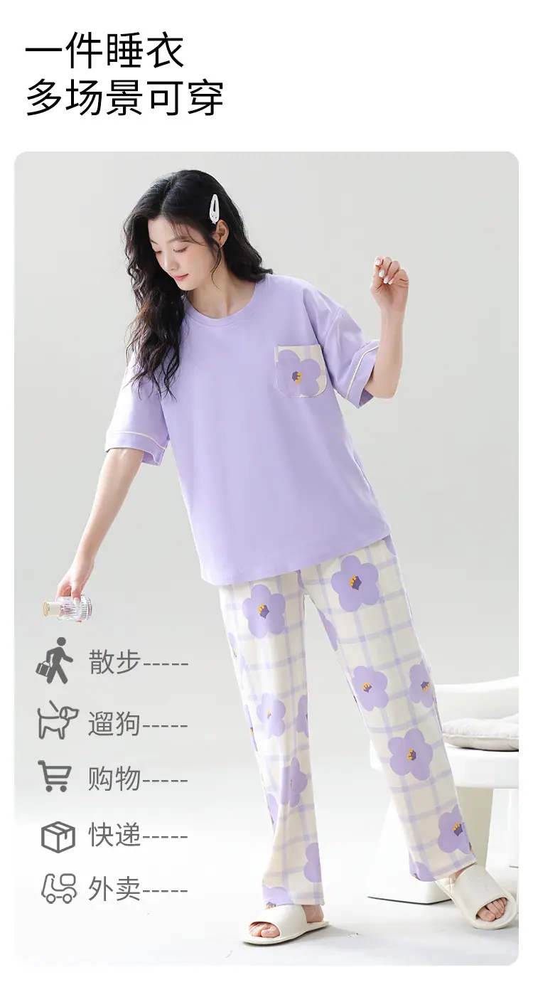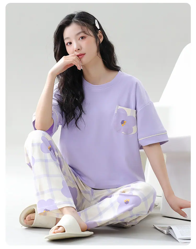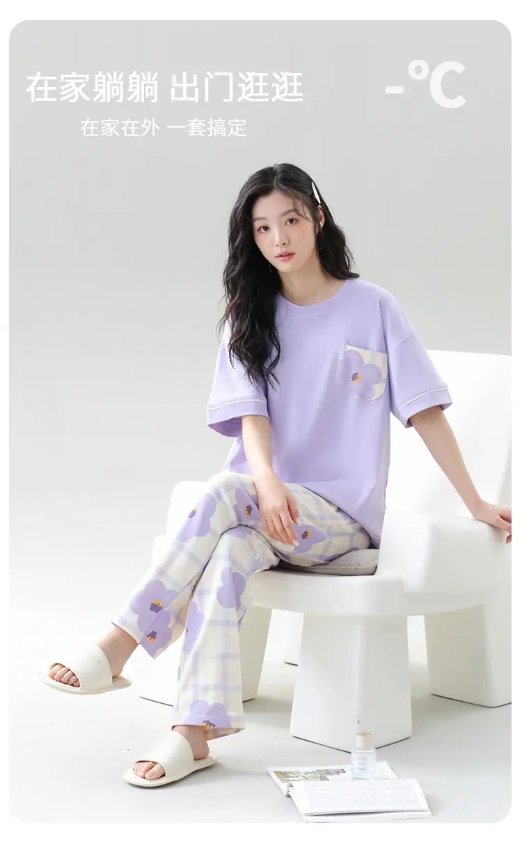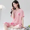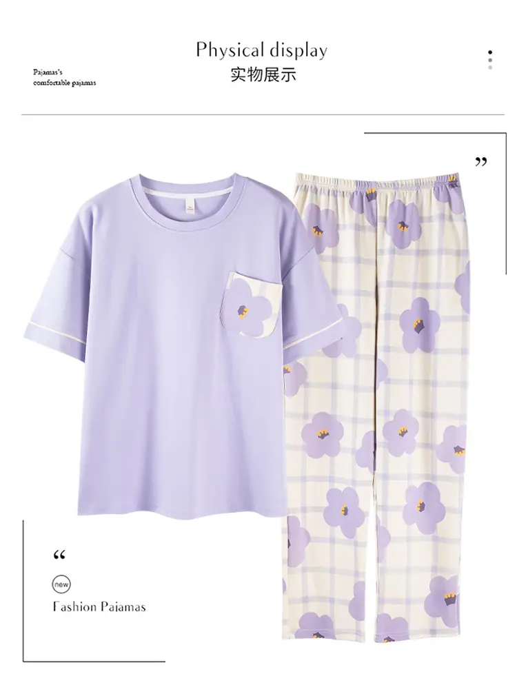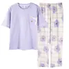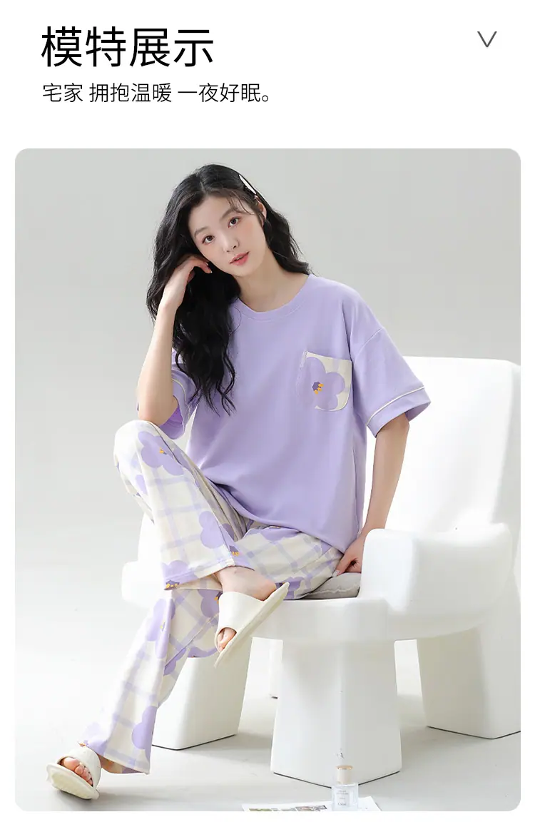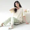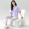 Pijama de Verano para Mujer de Algodón de Manga Corta y Pantalón Delgado de Algodón Casual para Uso Exterior Traje de Ropa para el Hogar