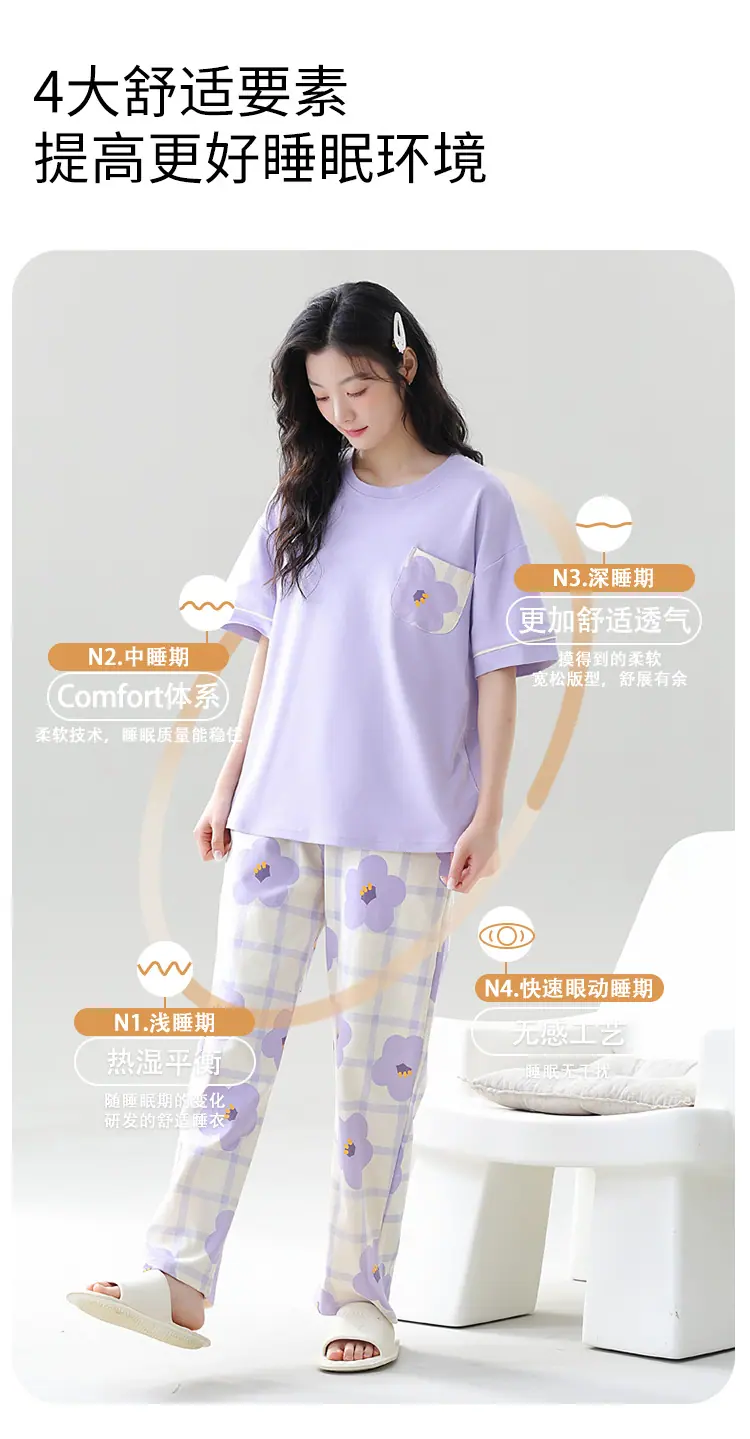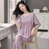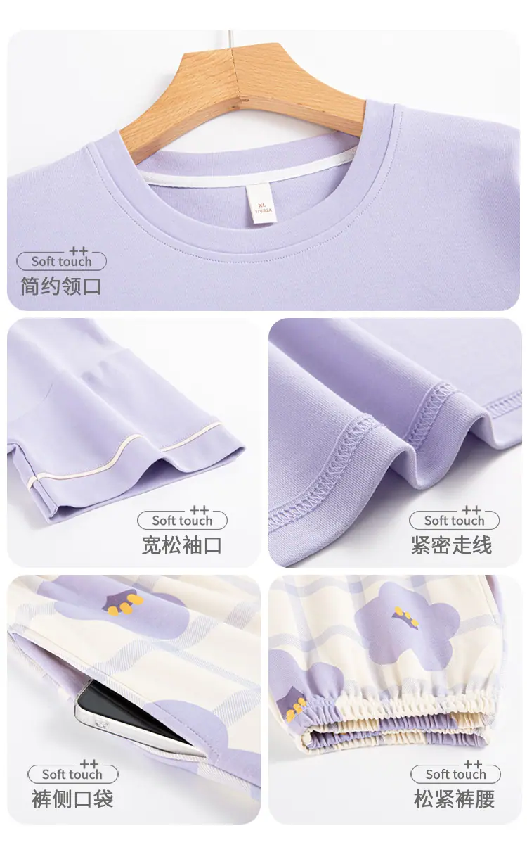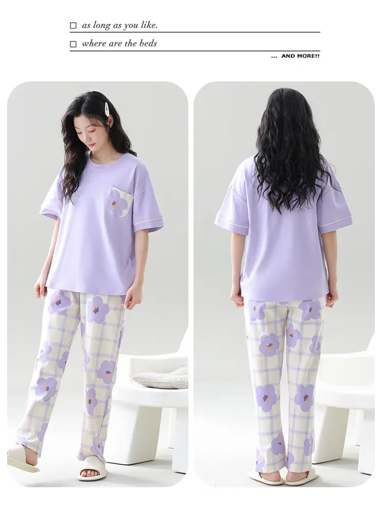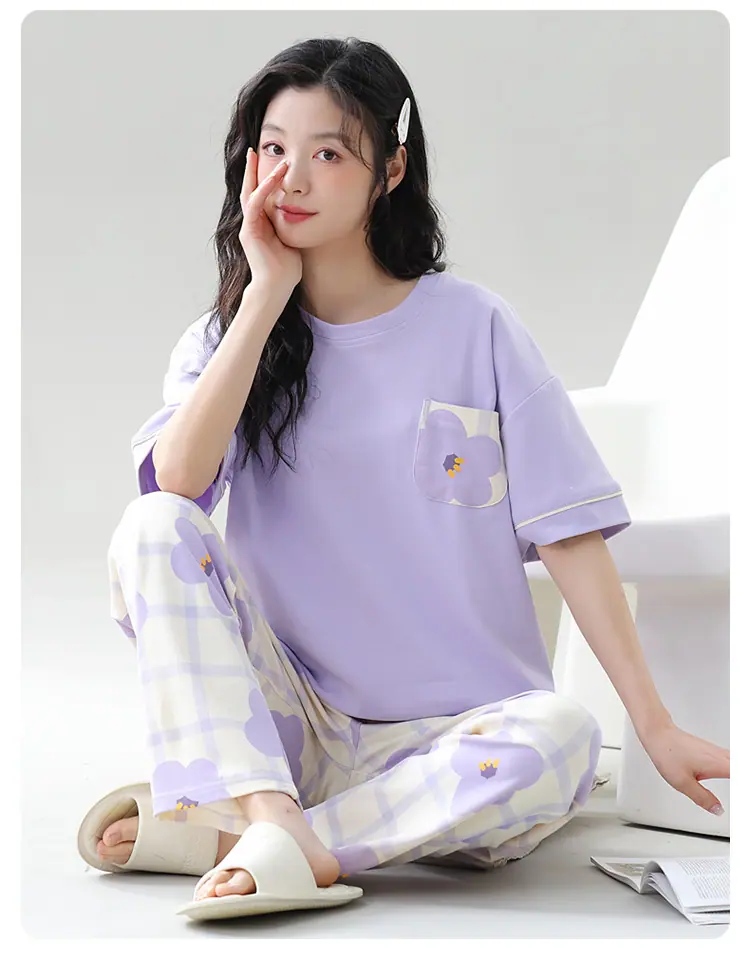 Pijama de Verano para Mujer de Algodón de Manga Corta y Pantalón Delgado de Algodón Casual para Uso Exterior Traje de Ropa para el Hogar
