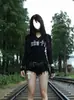 Moda transfronteriza dulce retro chica sexy ajuste ceñido europeo y americano cuello en V manga larga estilo dulce y cool estampado de letras top de manga larga