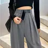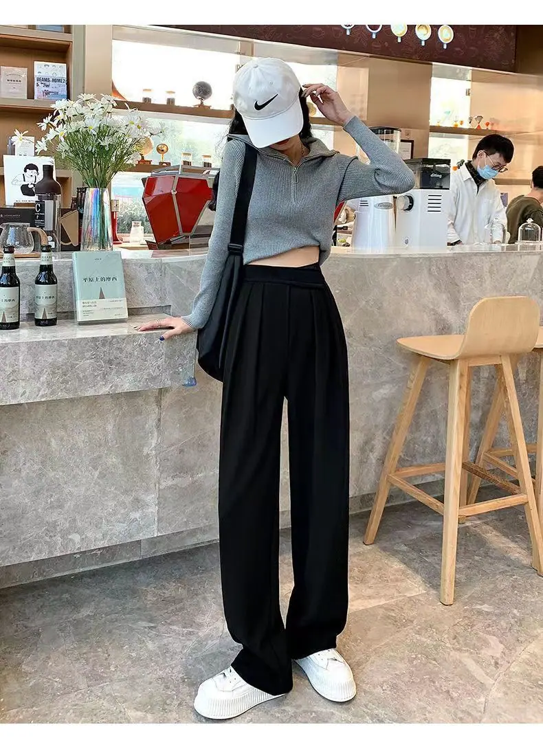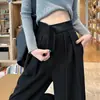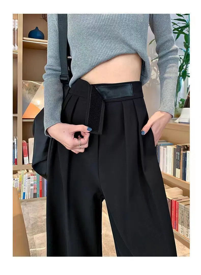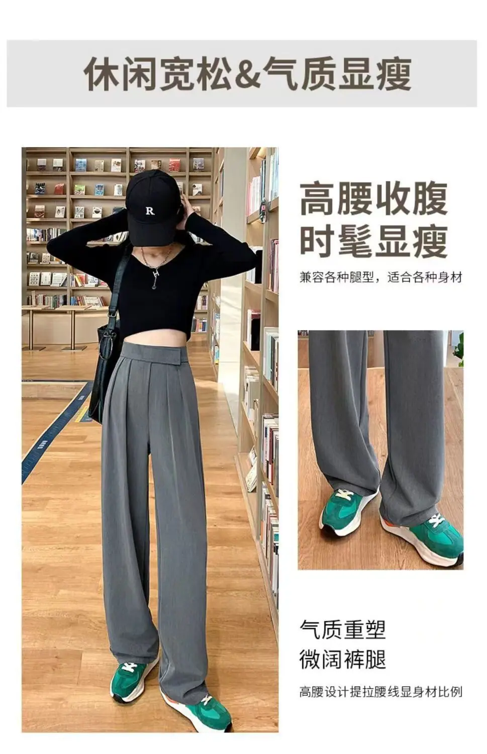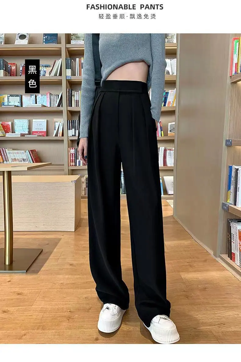 Pantalones de Velcro Color Café para Mujer Primavera y Verano Cintura Alta Dosis Largo Corte Slim Recto Suelto Casual Pierna Ancha