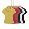 Top de camiseta corta de solapa abotonada estilo retro americano para mujer en verano, aspecto adelgazante, jersey de punto con botones, camiseta tipo polo de manga corta
