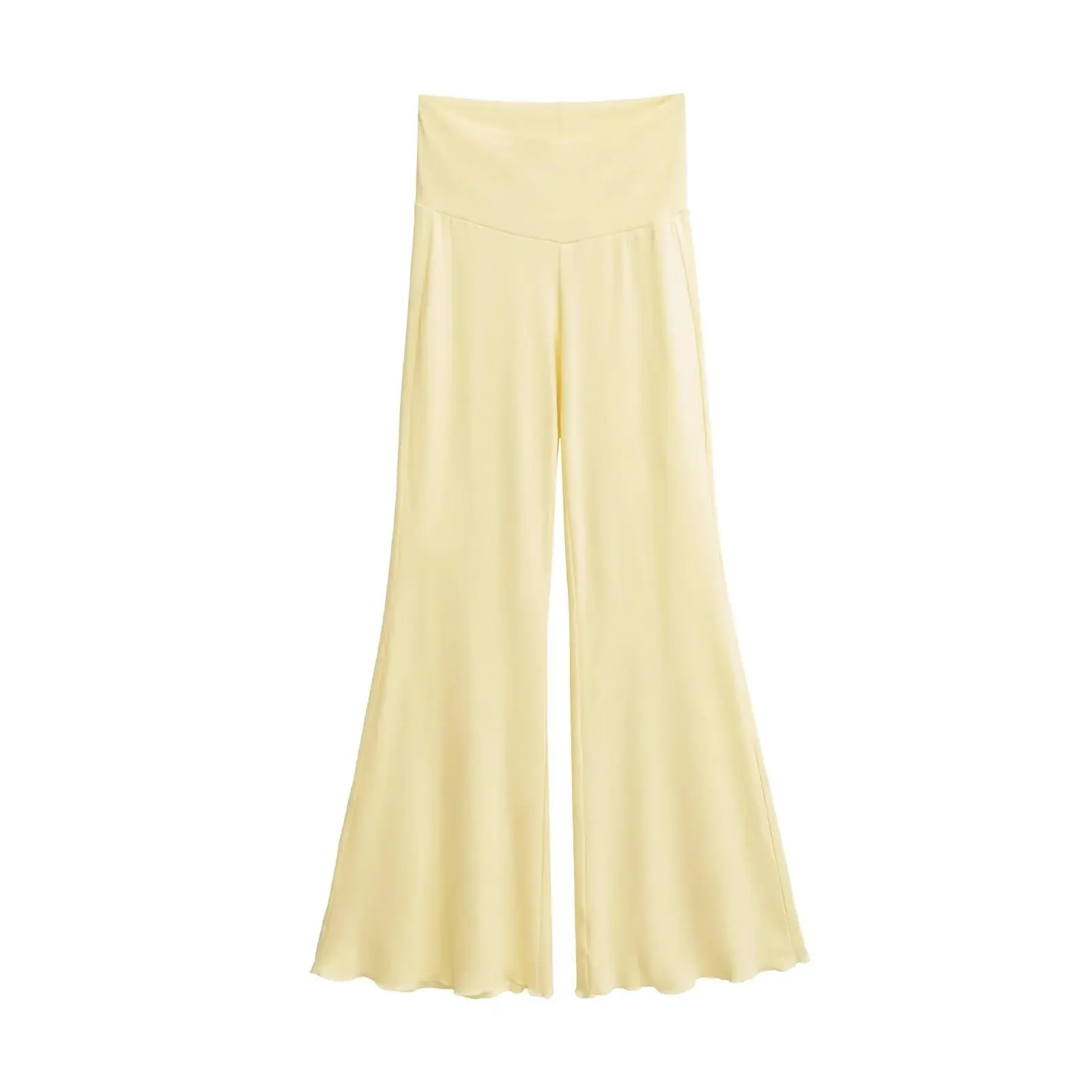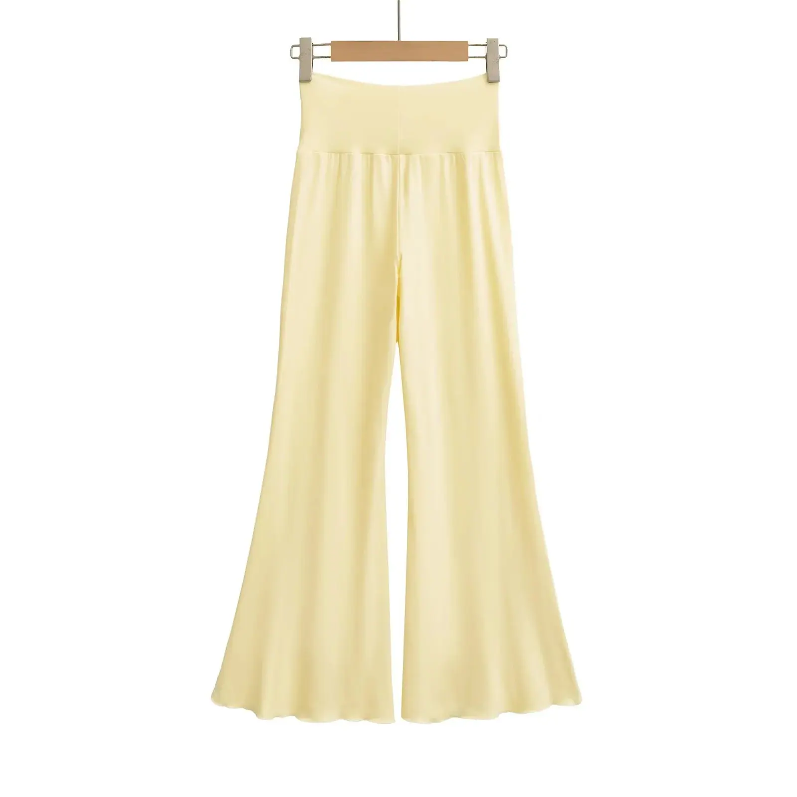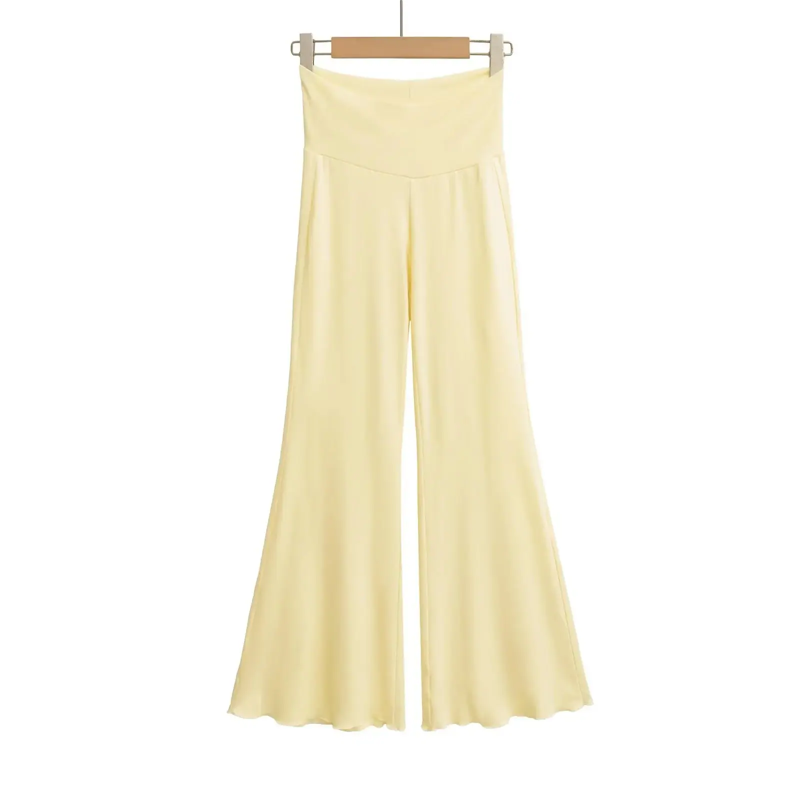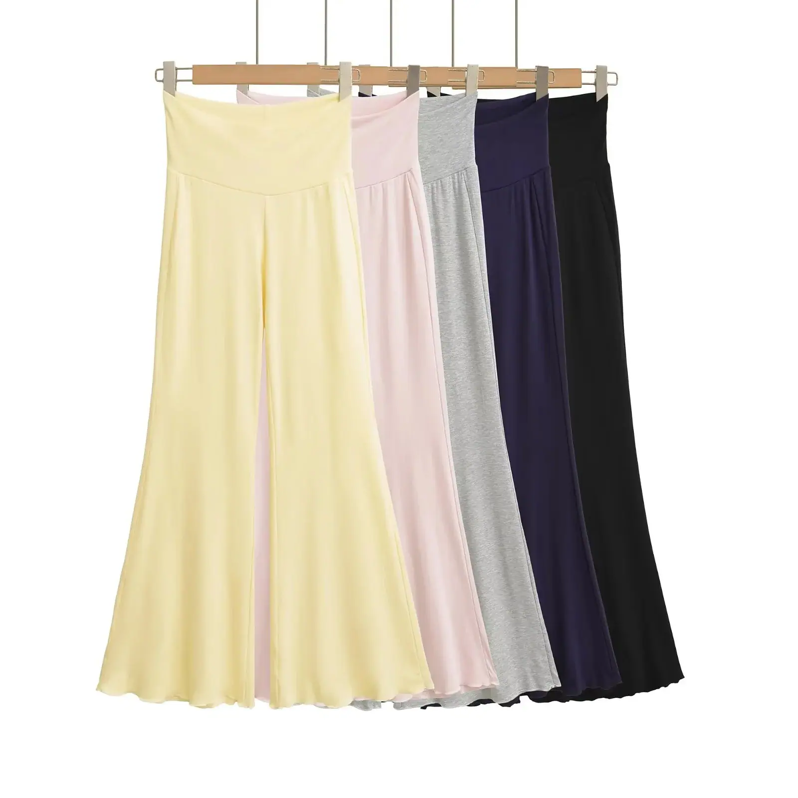 Pantalones Casuales Micro Acampanados con Dobladillo con Volantes para Mujer 2025 Nuevo Otoño Delgados con Dobladillo Vuelto Cintura Alta Adelgazantes Acampanados Largos
