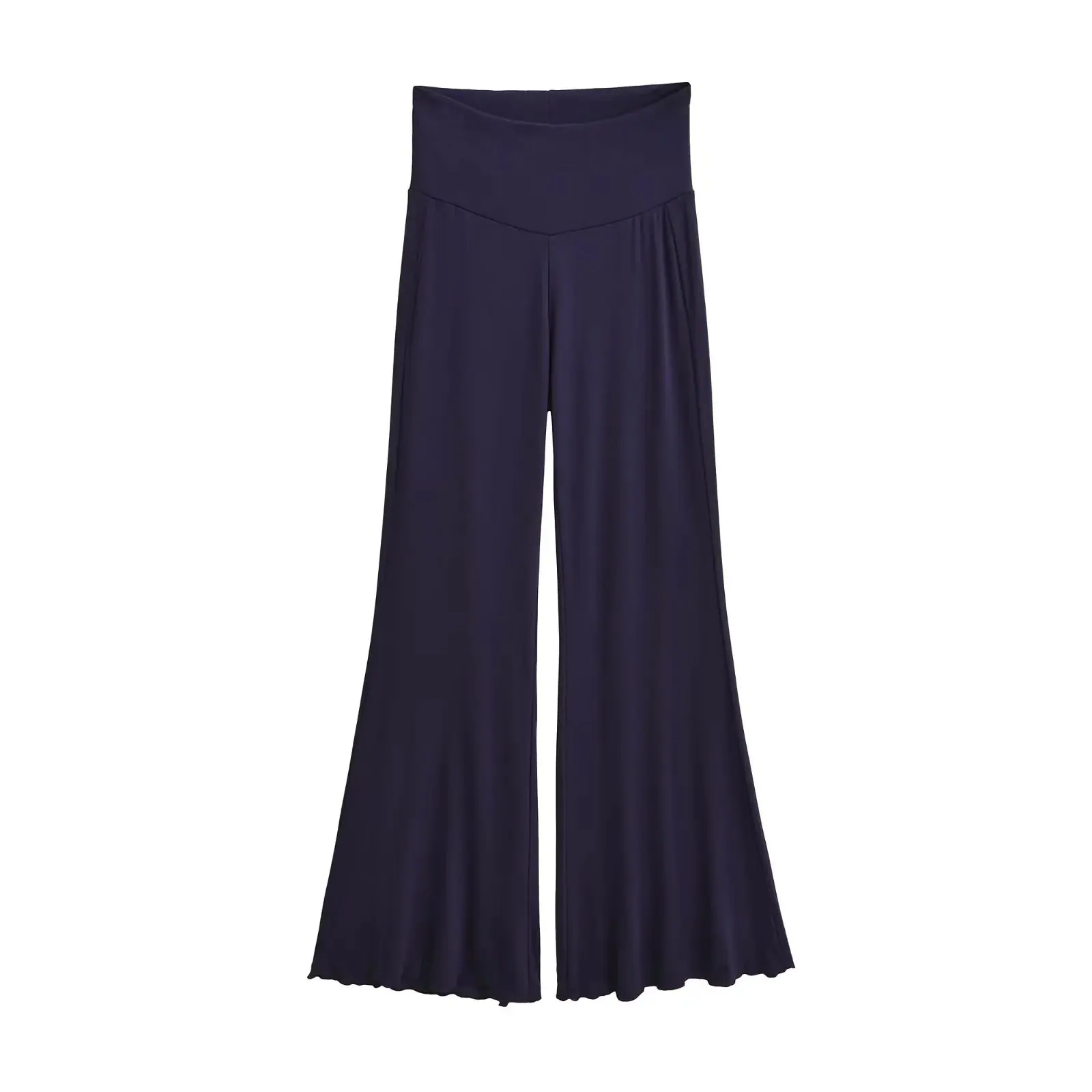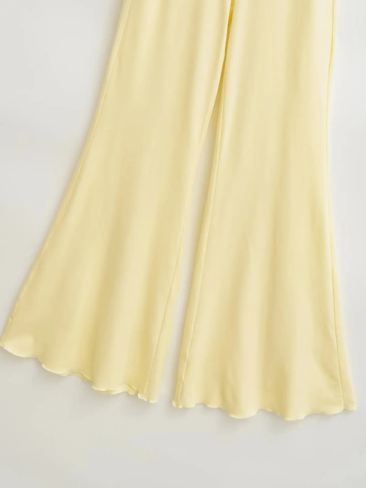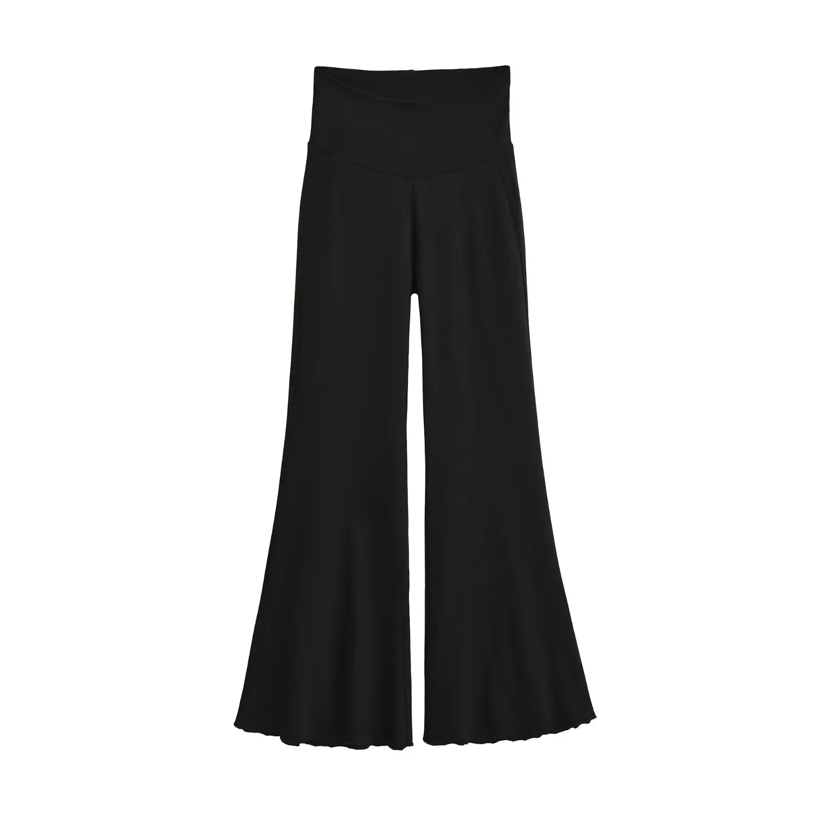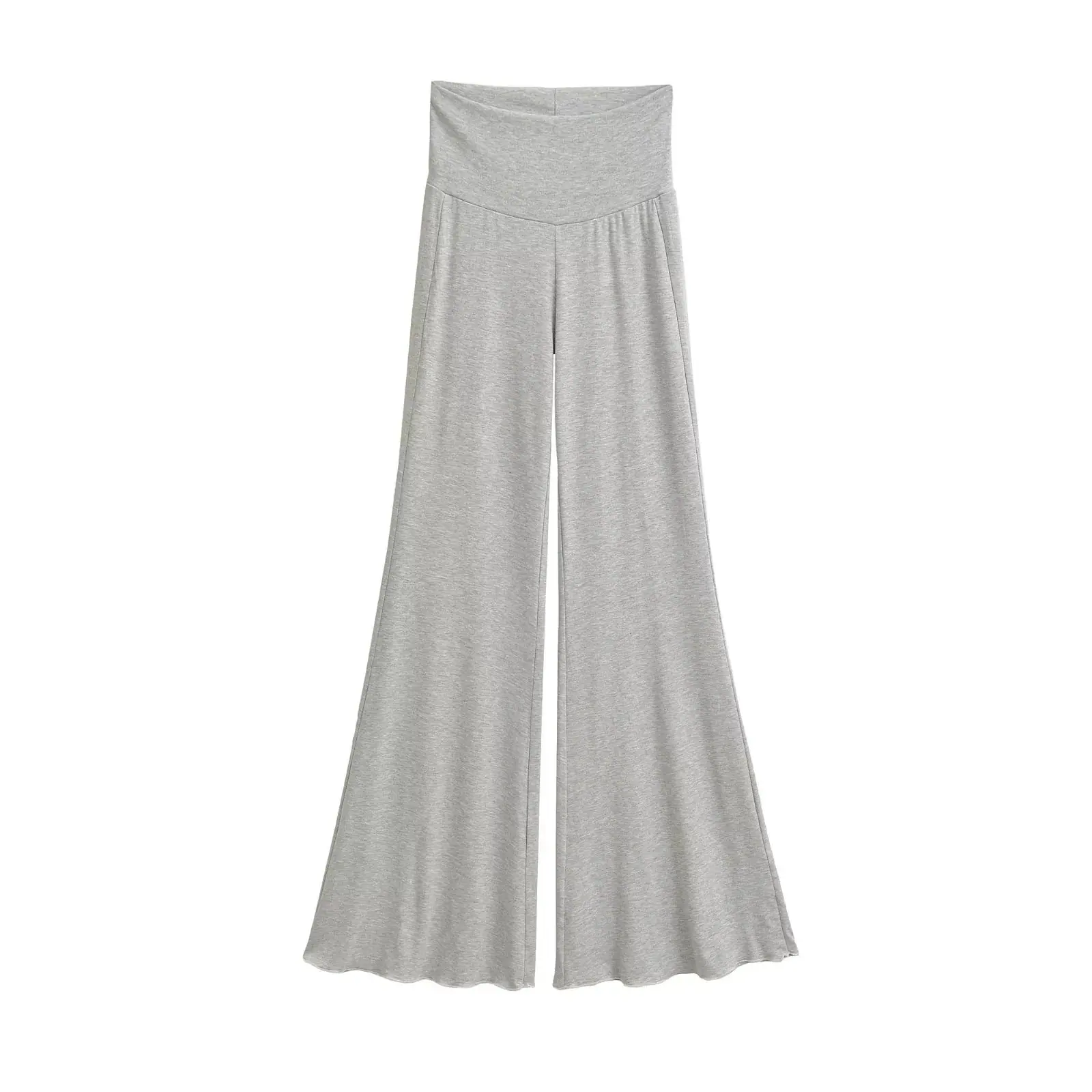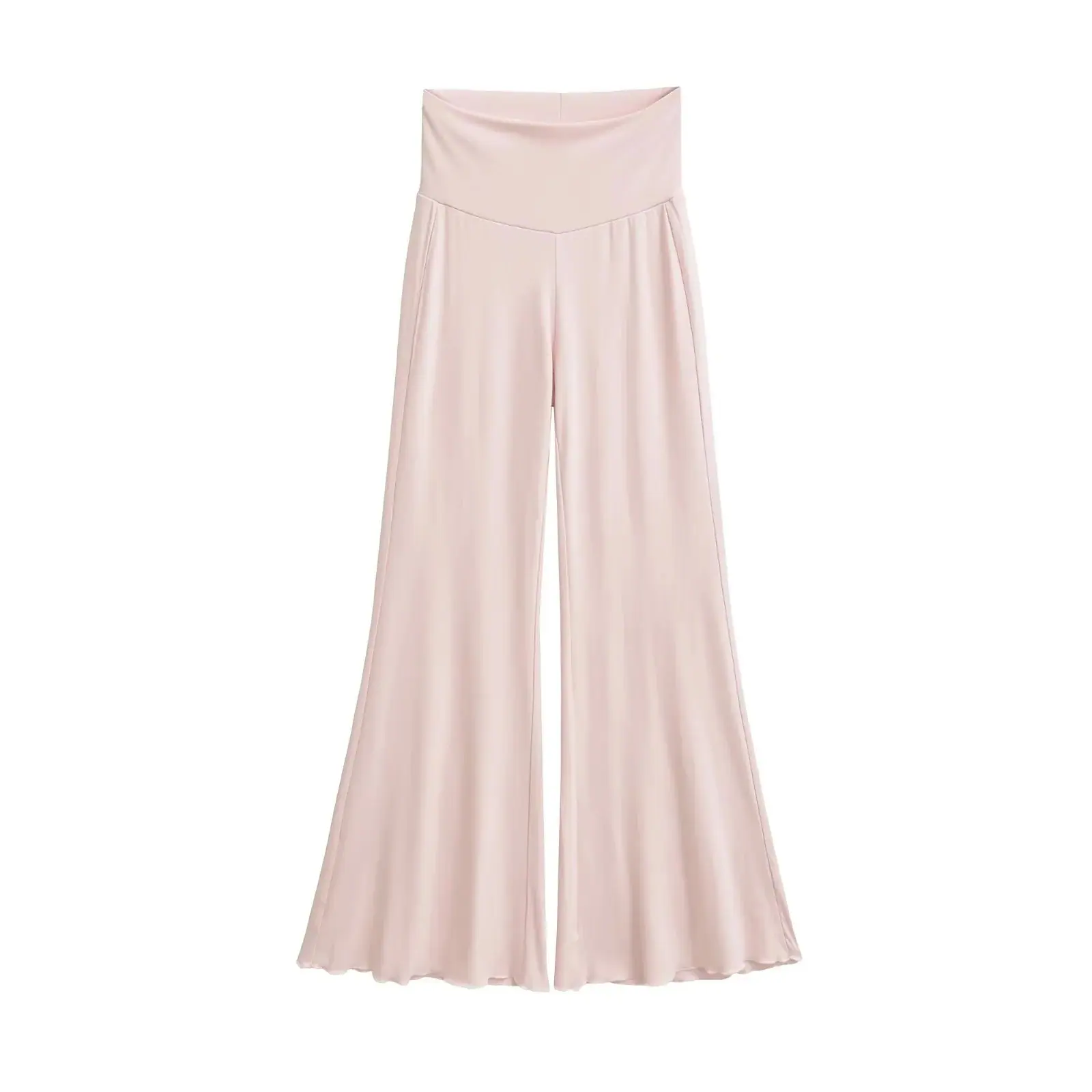 Pantalones Casuales Micro Acampanados con Dobladillo con Volantes para Mujer 2025 Nuevo Otoño Delgados con Dobladillo Vuelto Cintura Alta Adelgazantes Acampanados Largos