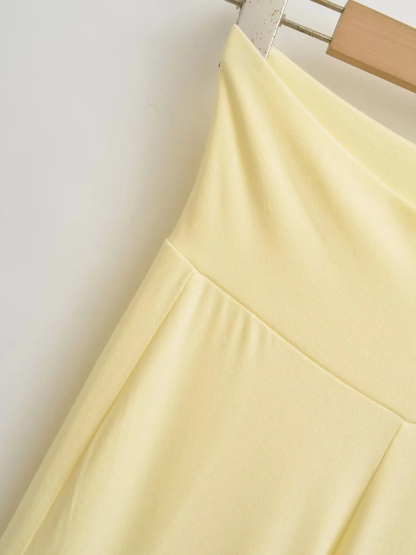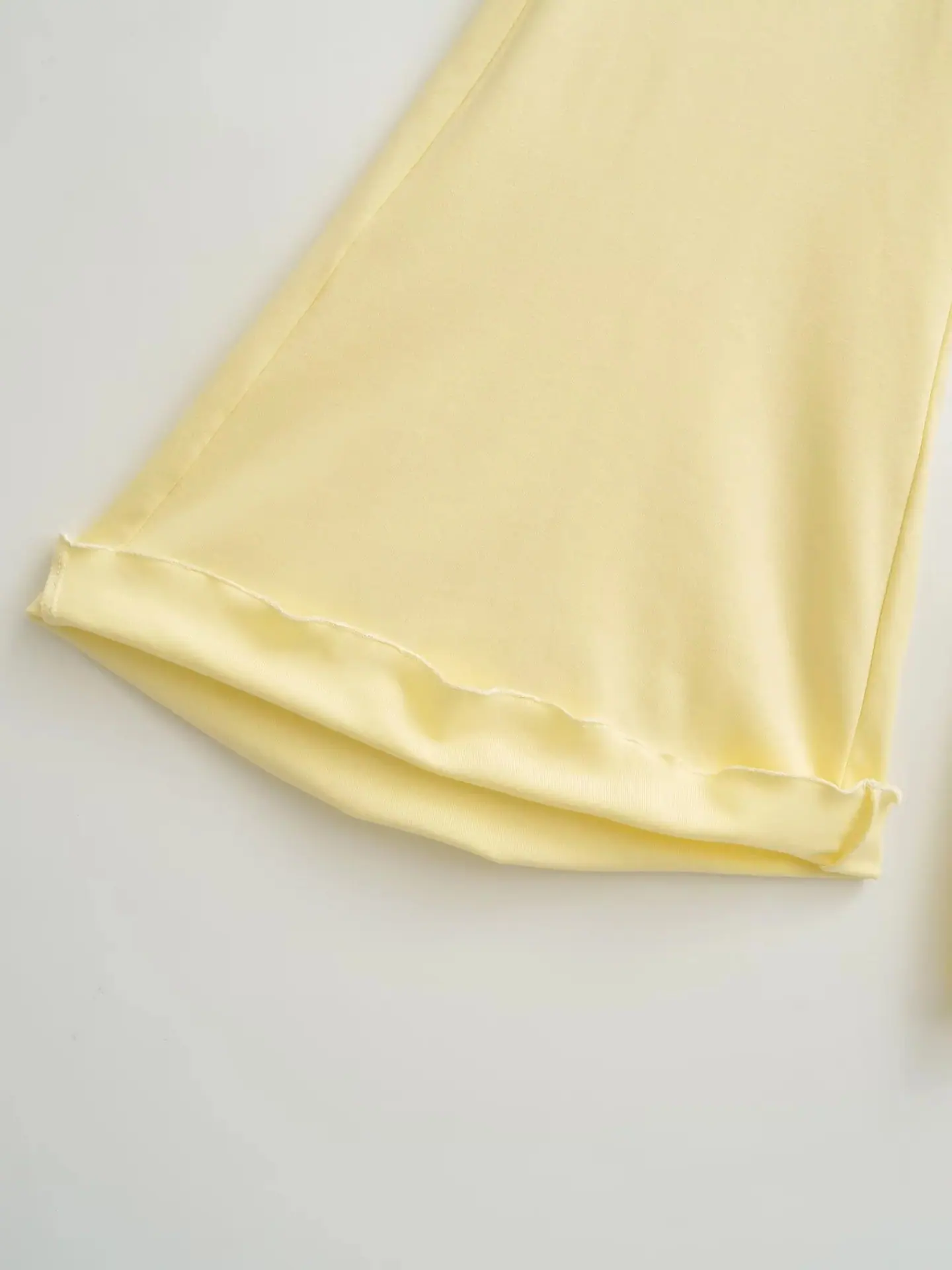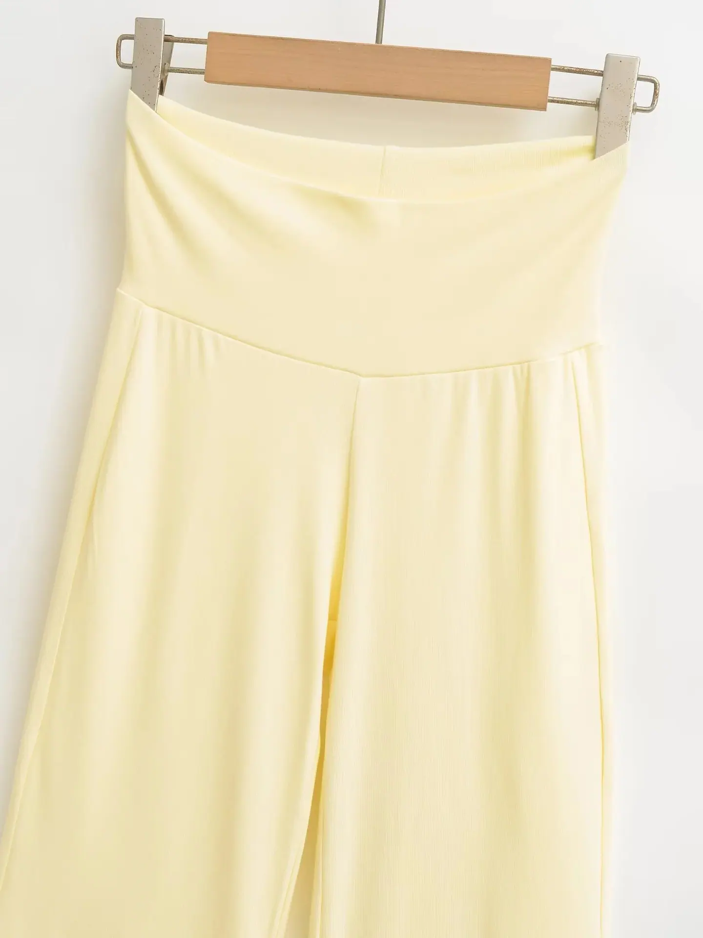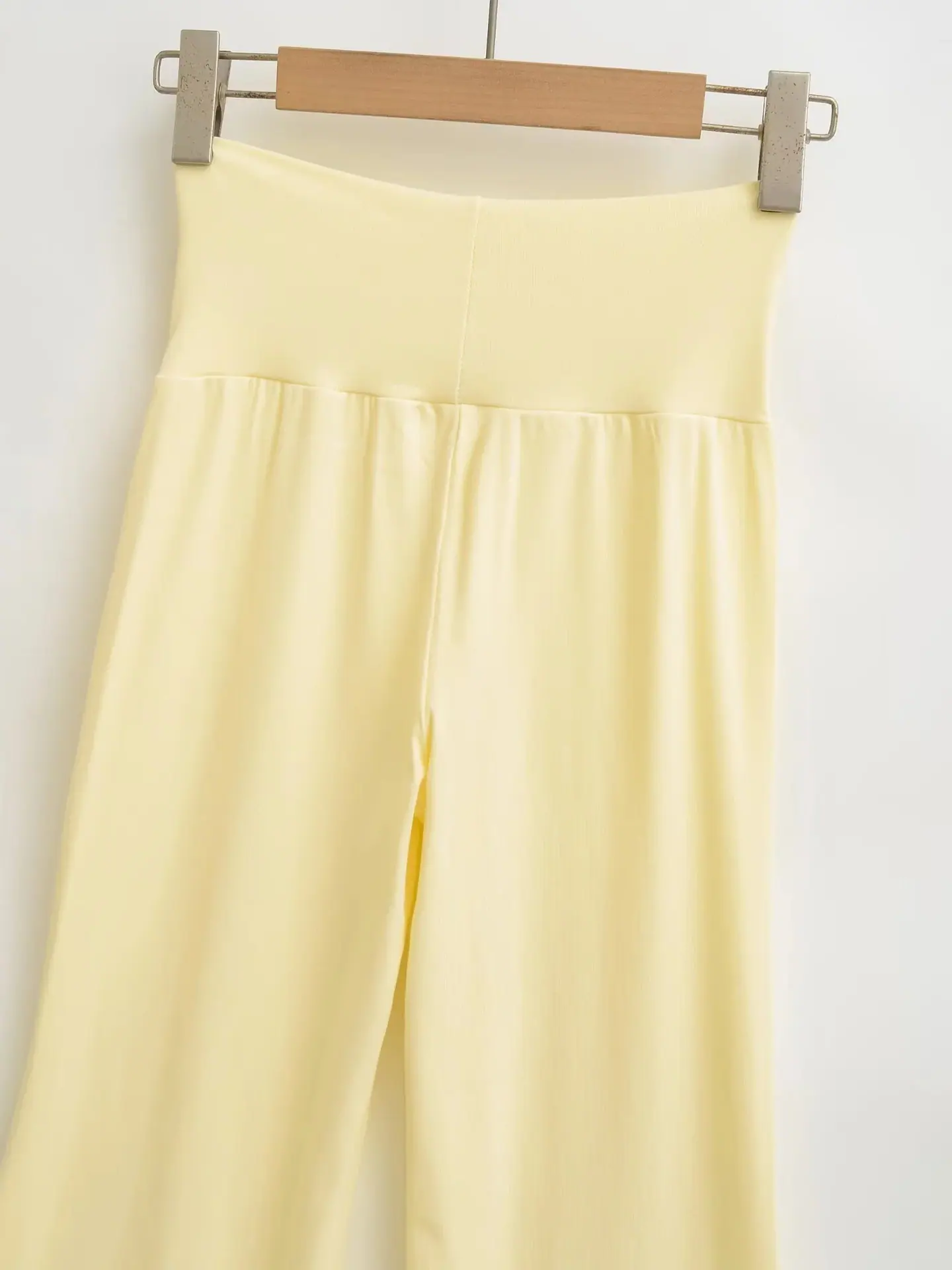 Pantalones Casuales Micro Acampanados con Dobladillo con Volantes para Mujer 2025 Nuevo Otoño Delgados con Dobladillo Vuelto Cintura Alta Adelgazantes Acampanados Largos