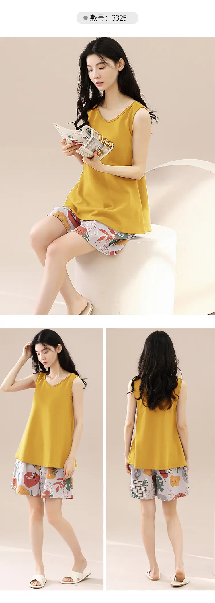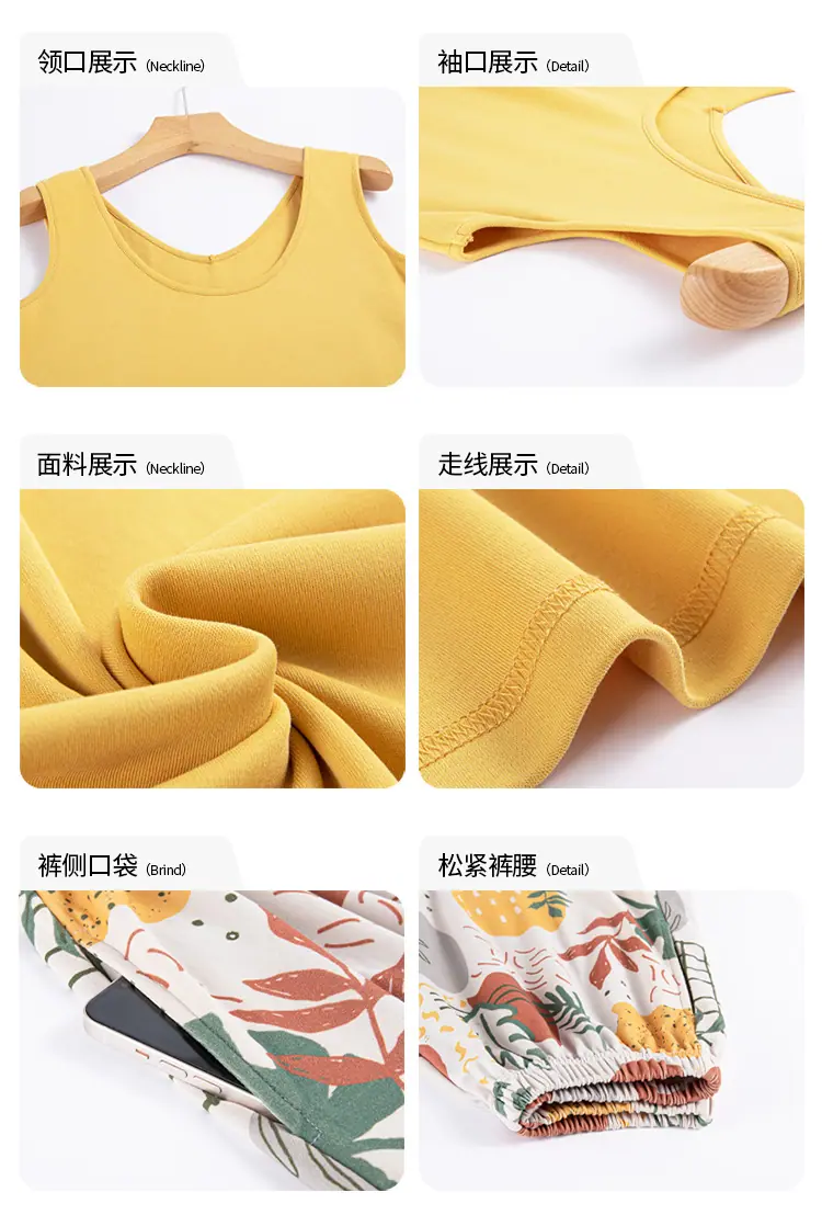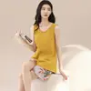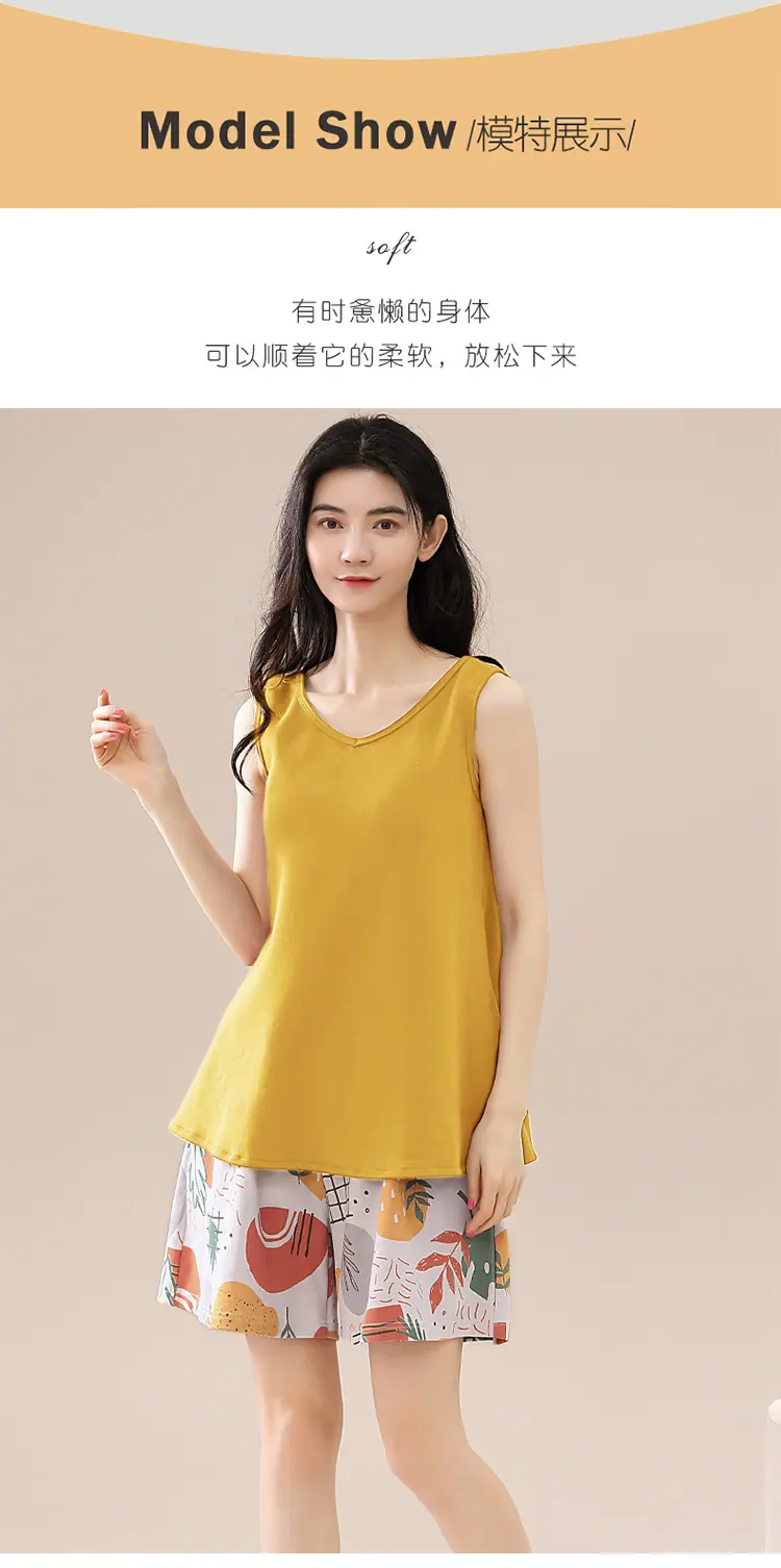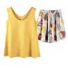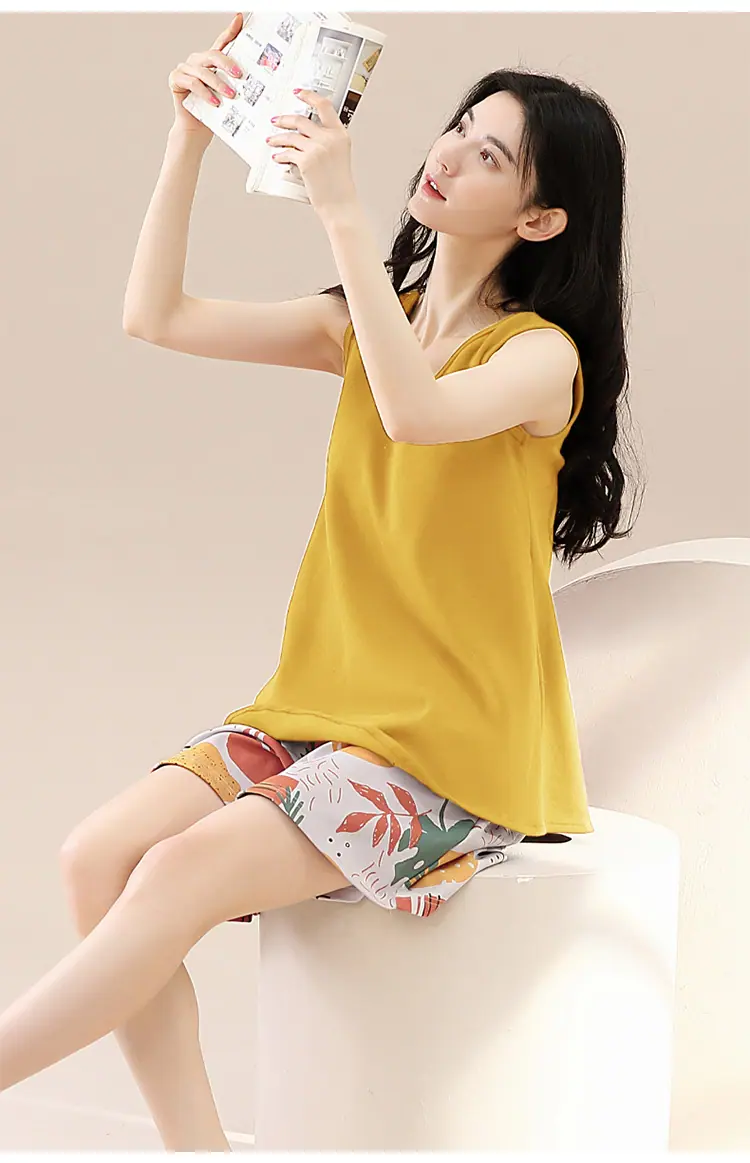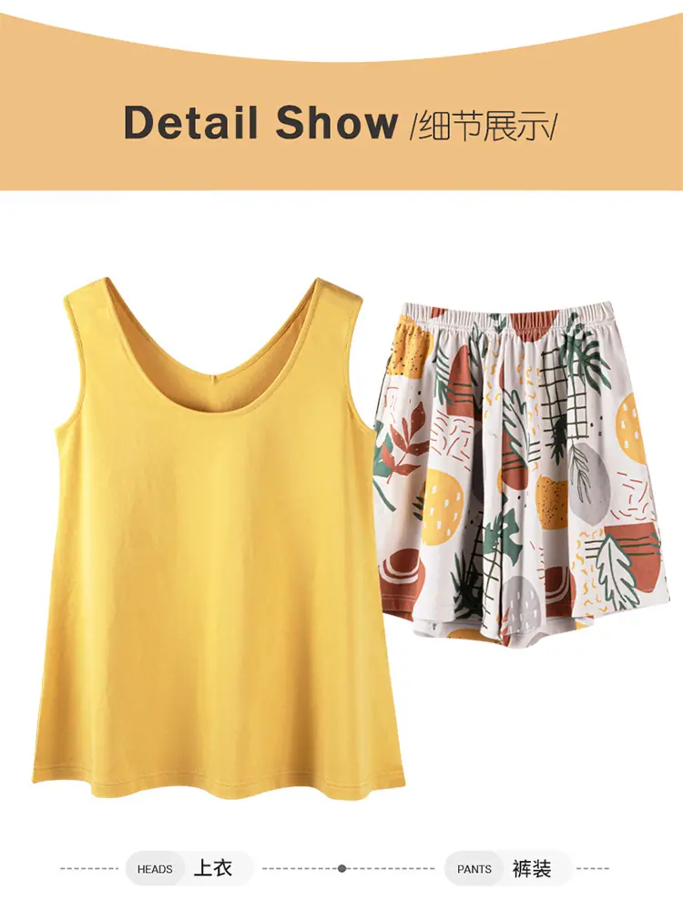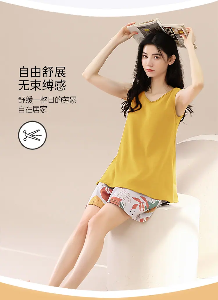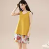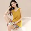 Pijamas de Verano para Mujer de Algodón Puro Fino sin Mangas Shorts Sexy Traje de Dos Piezas Seda de Hielo Ropa para el Hogar Chalecos