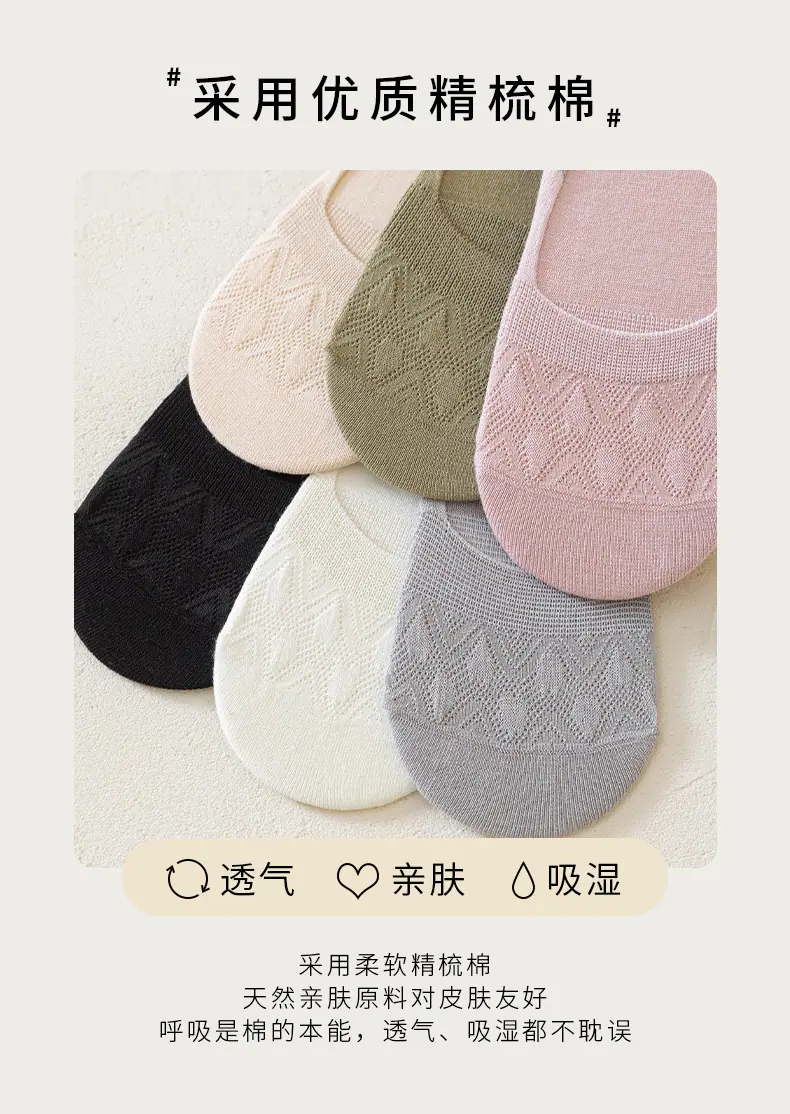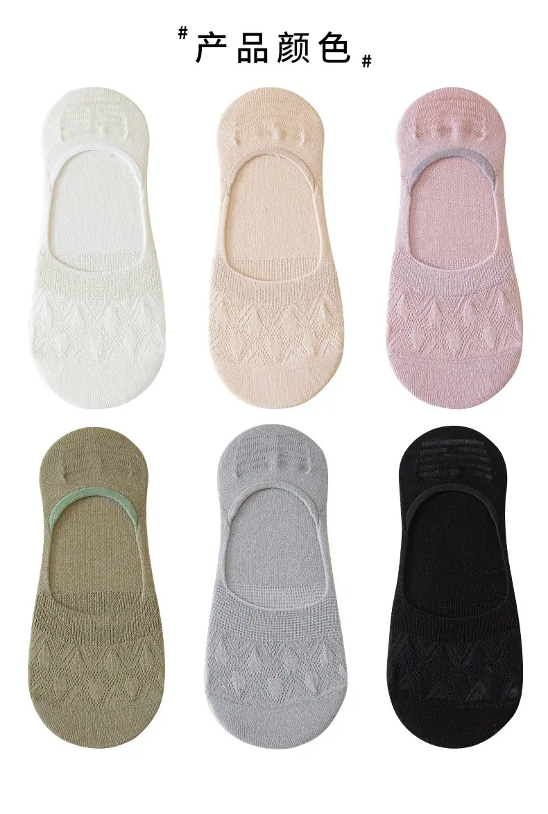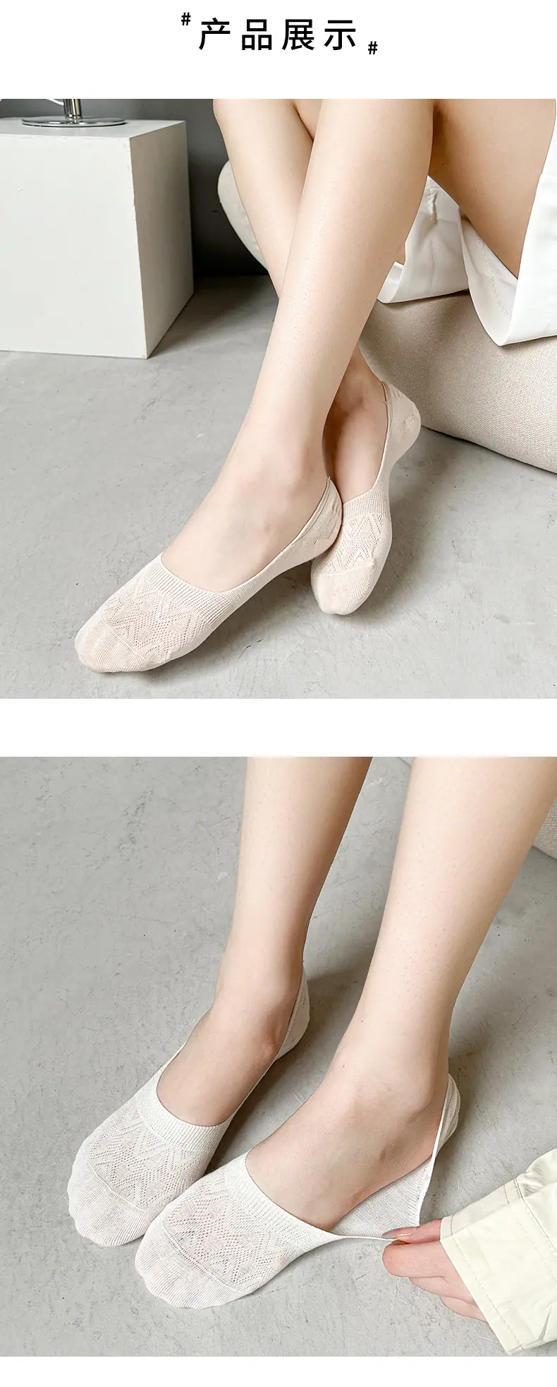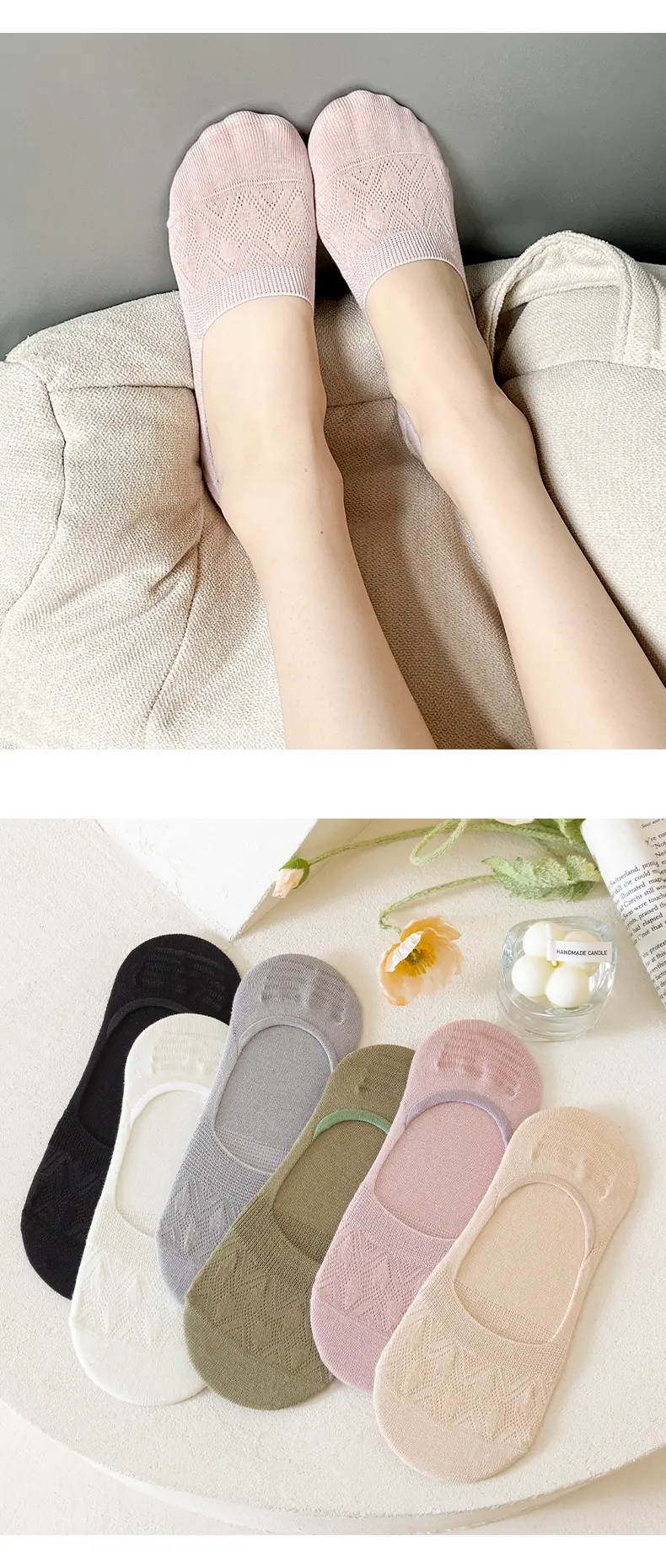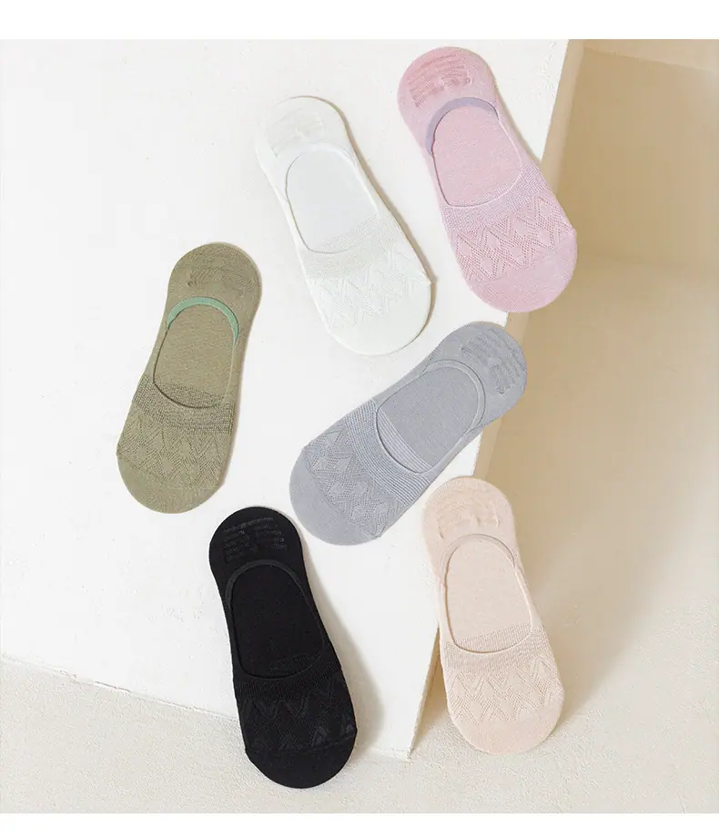 Calcetines de Algodón Finos de Verano para Mujer de Color Sólido Malla Calados Antideslizantes Calcetines Invisibles Punta sin Costuras Calcetines para Tacones Altos