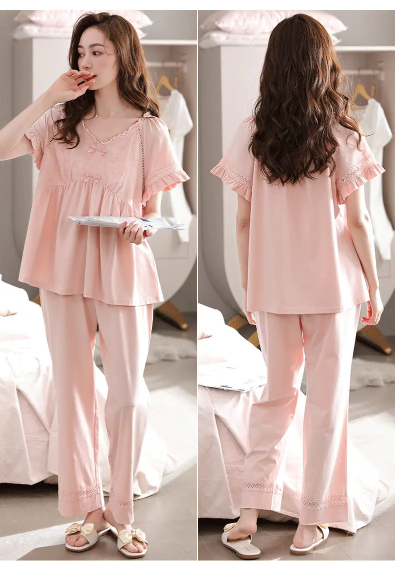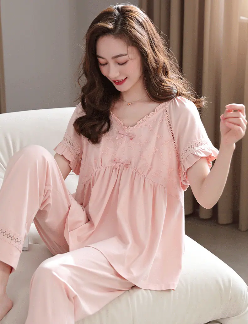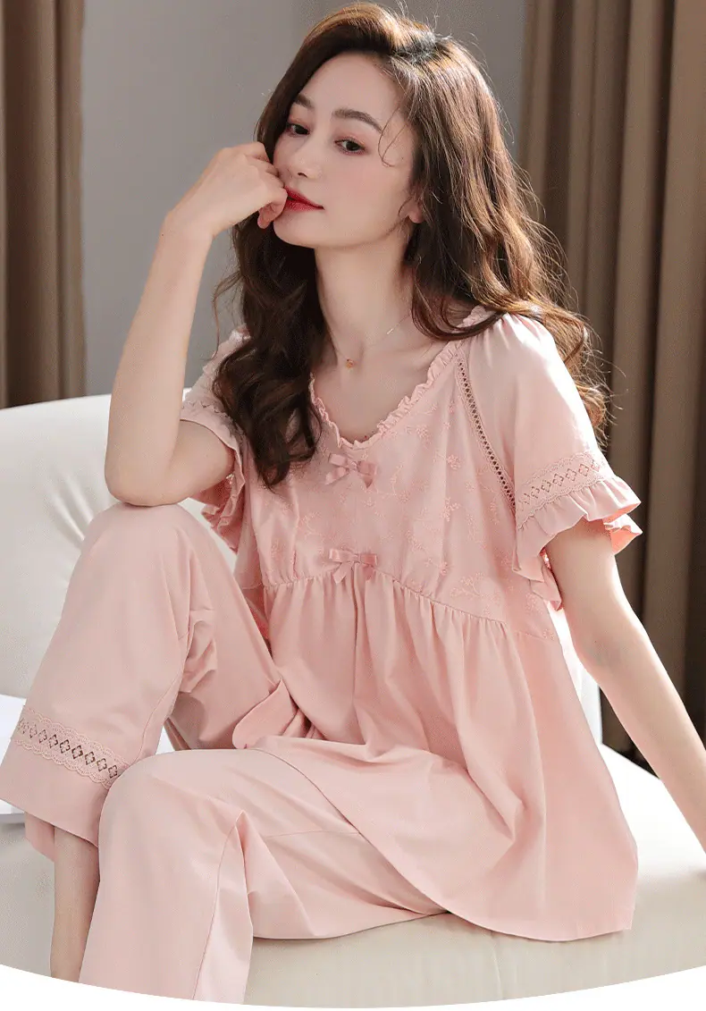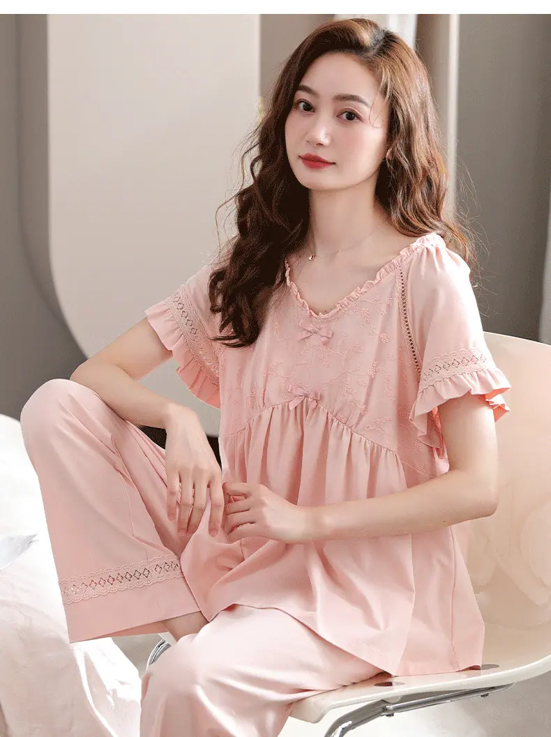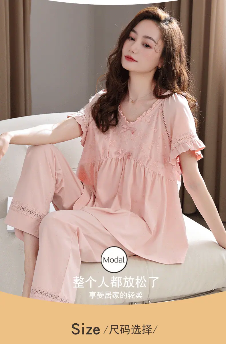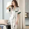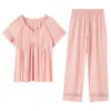 Pijama de Verano para Mujer de Algodón Modal Seda con Cuello en V de Hielo, Traje de Pantalón Corto de Manga Corta, Ropa Casual Fina para el Hogar de Verano