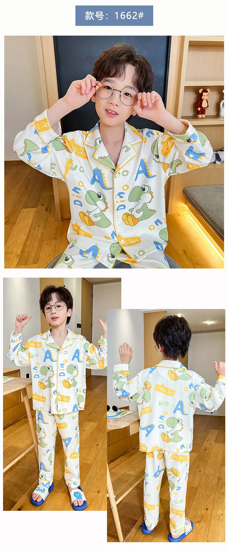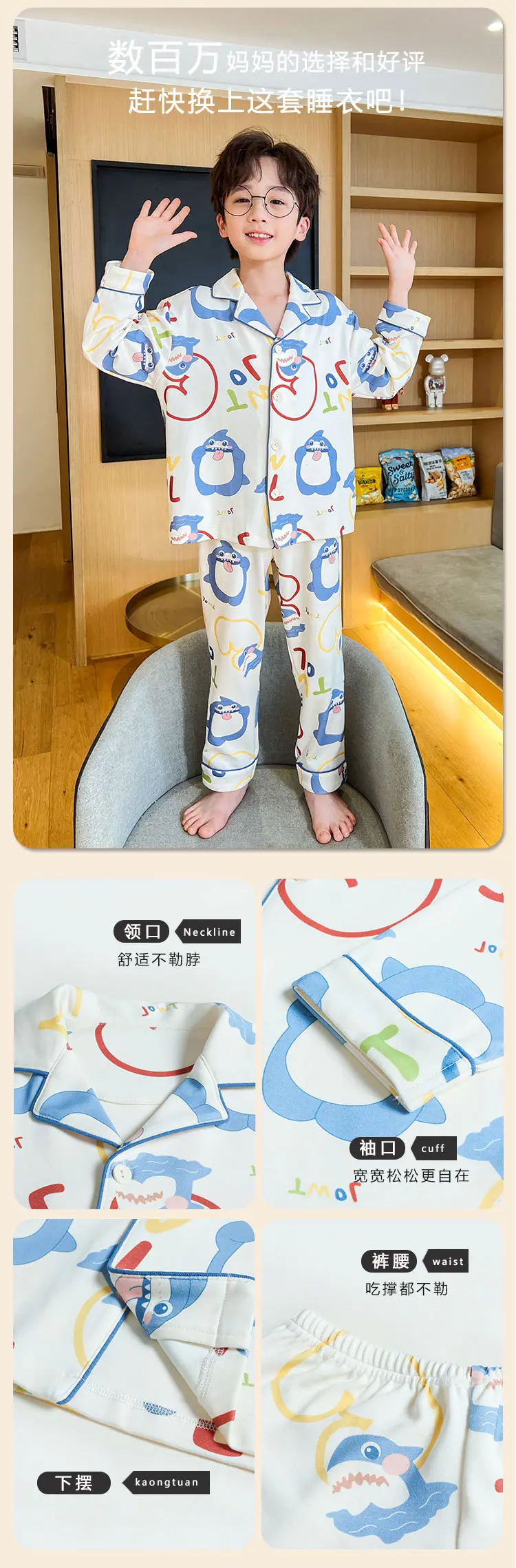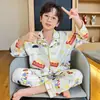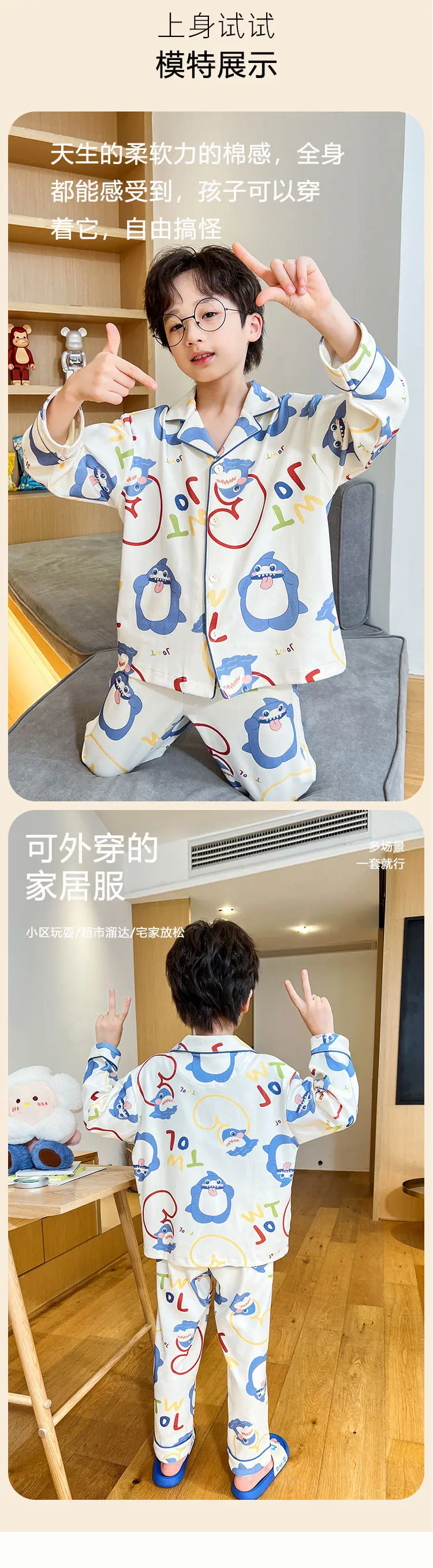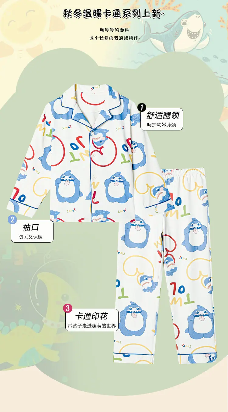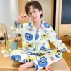Pijamas de otoño para niños de manga larga, moda infantil de dibujos animados con solapa, ropa popular para el hogar para bebés niños y niñas