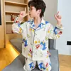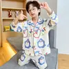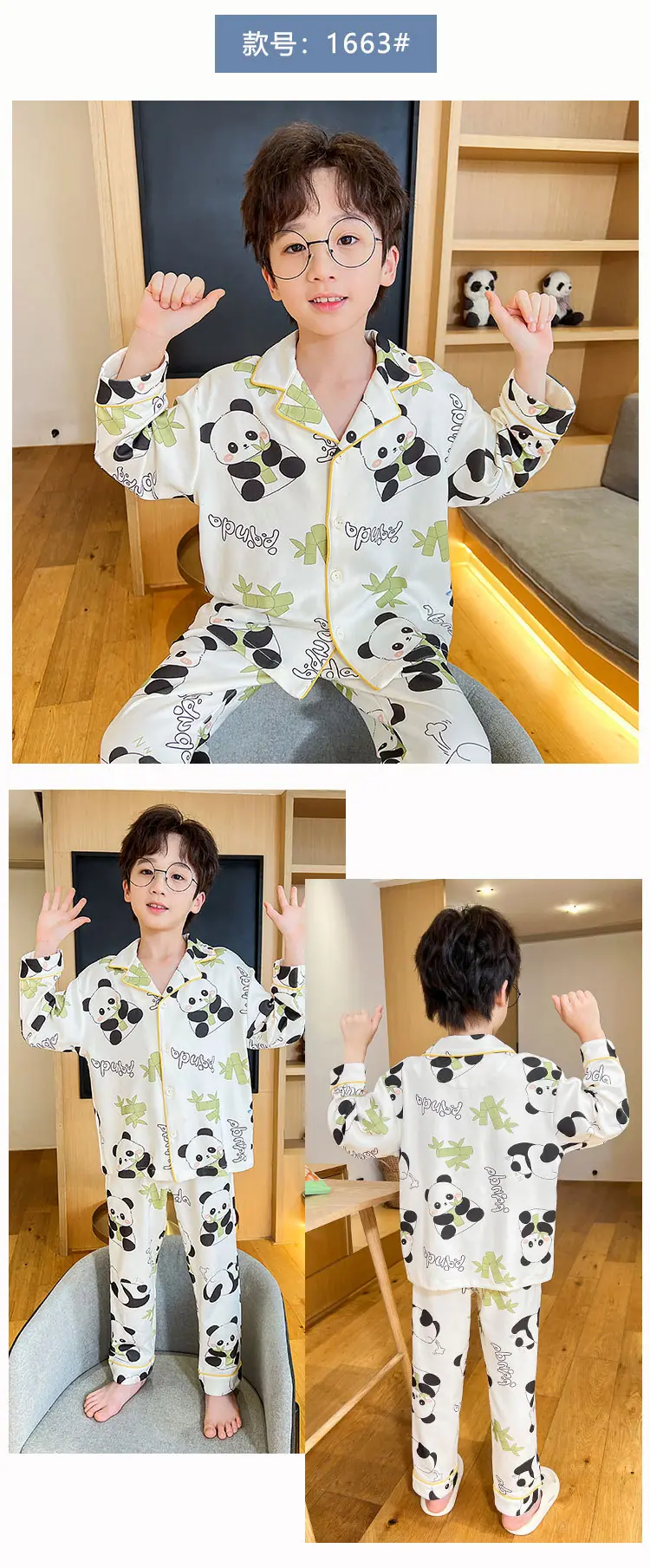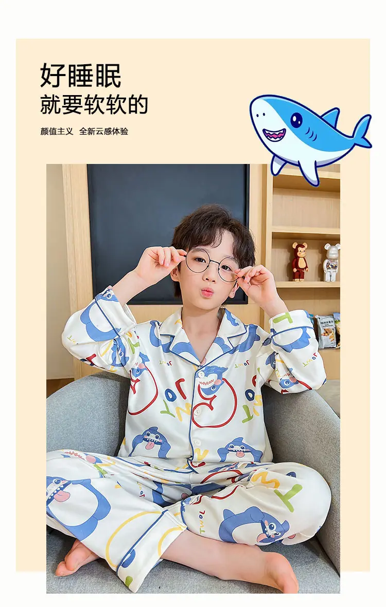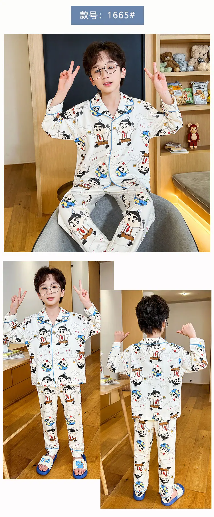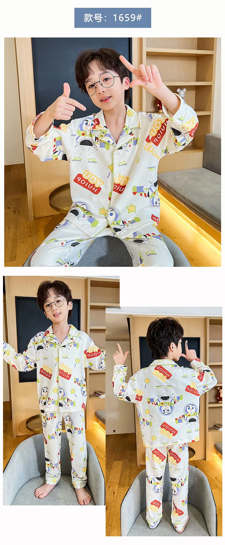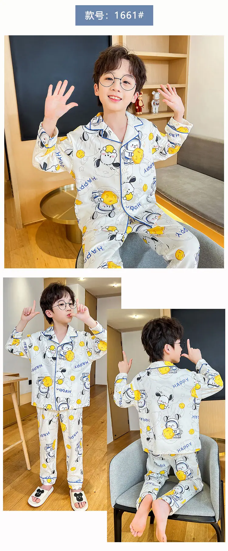 Pijamas de otoño para niños de manga larga, moda infantil de dibujos animados con solapa, ropa popular para el hogar para bebés niños y niñas