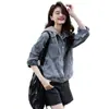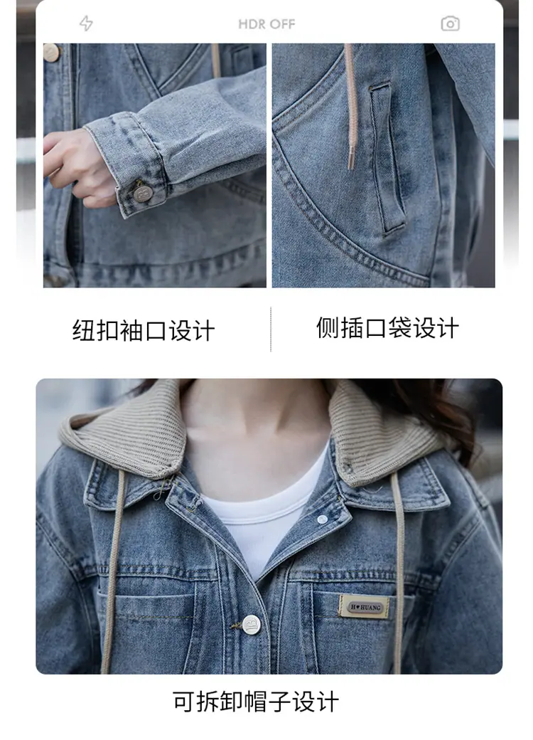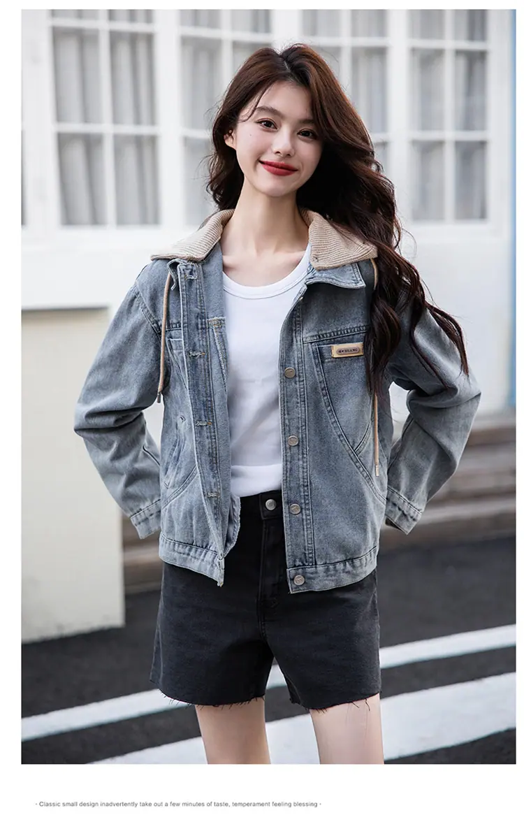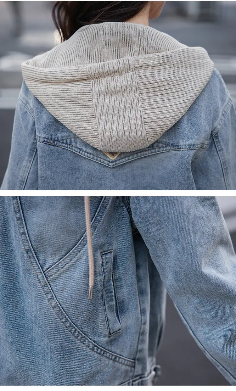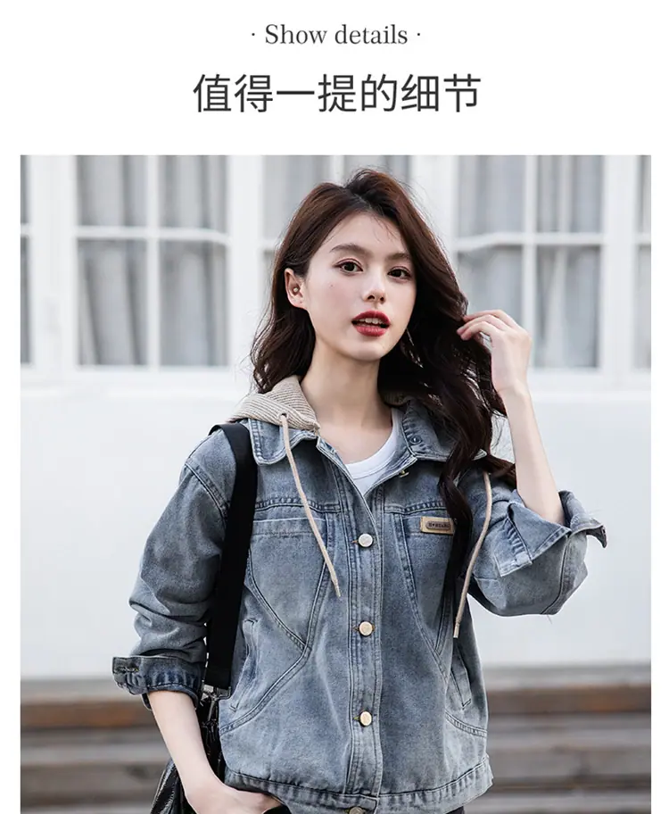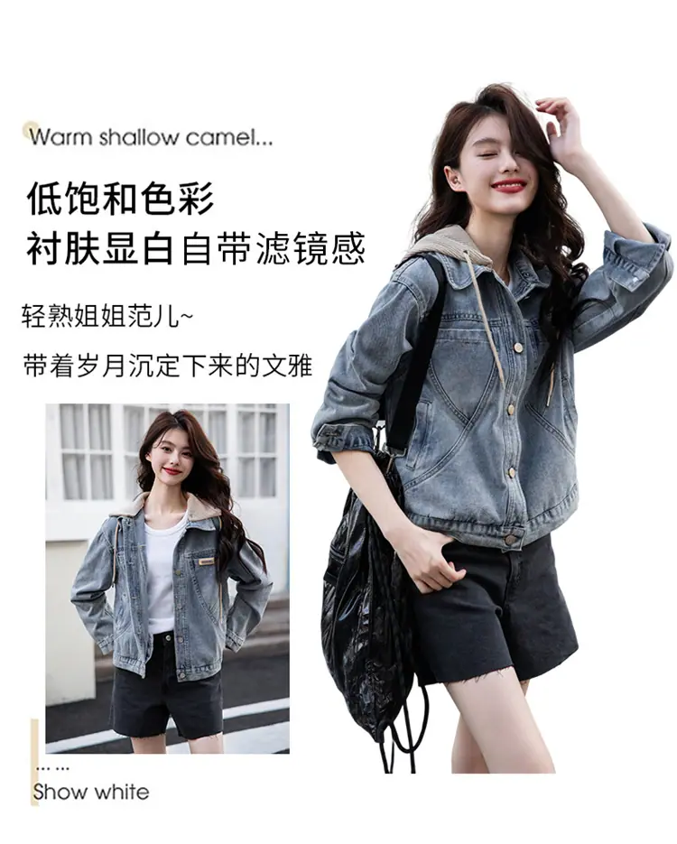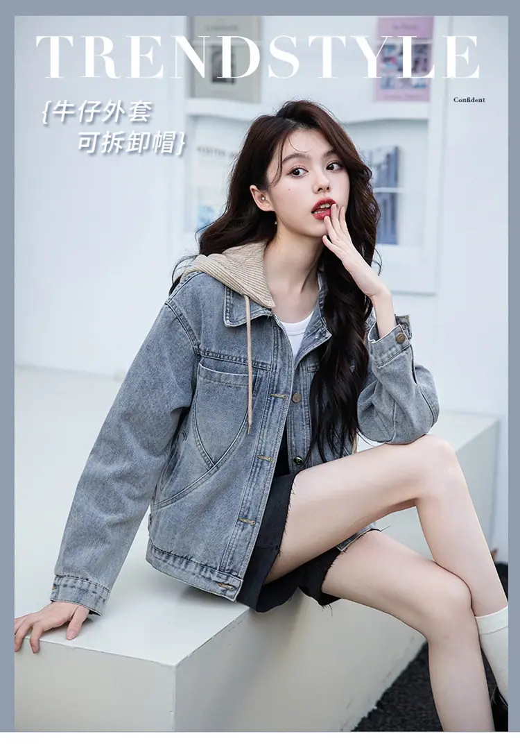 Chaqueta de mezclilla de moda retro para mujer 2025 primavera nueva talla pequeña elegante talla grande chaqueta con capucha top corto