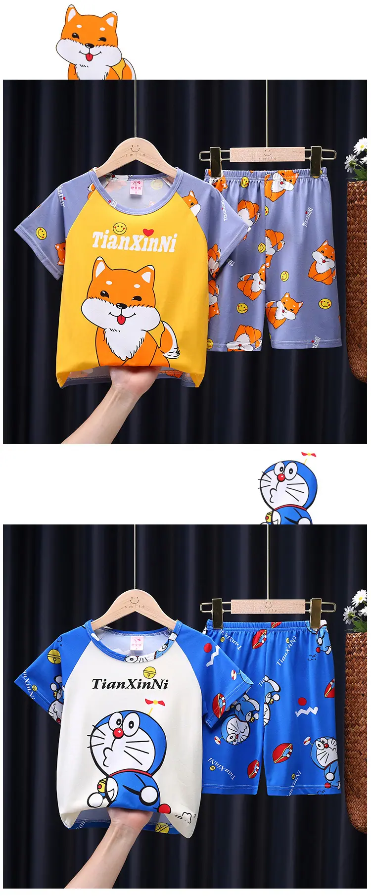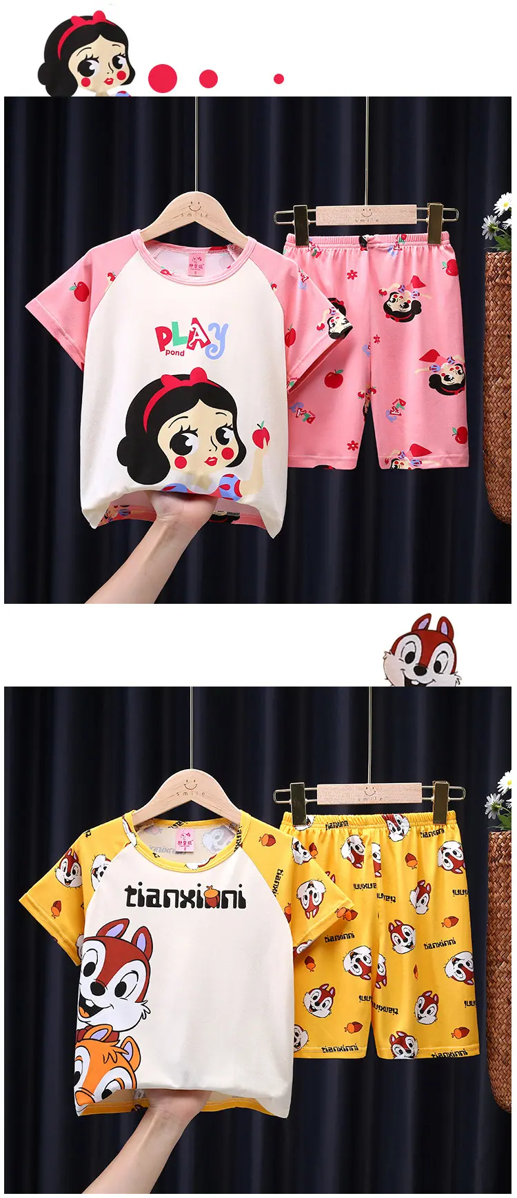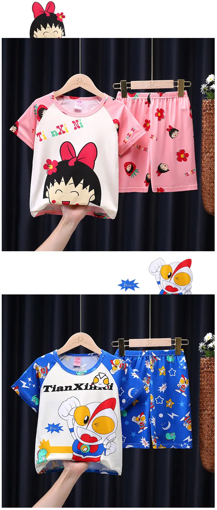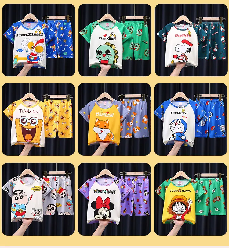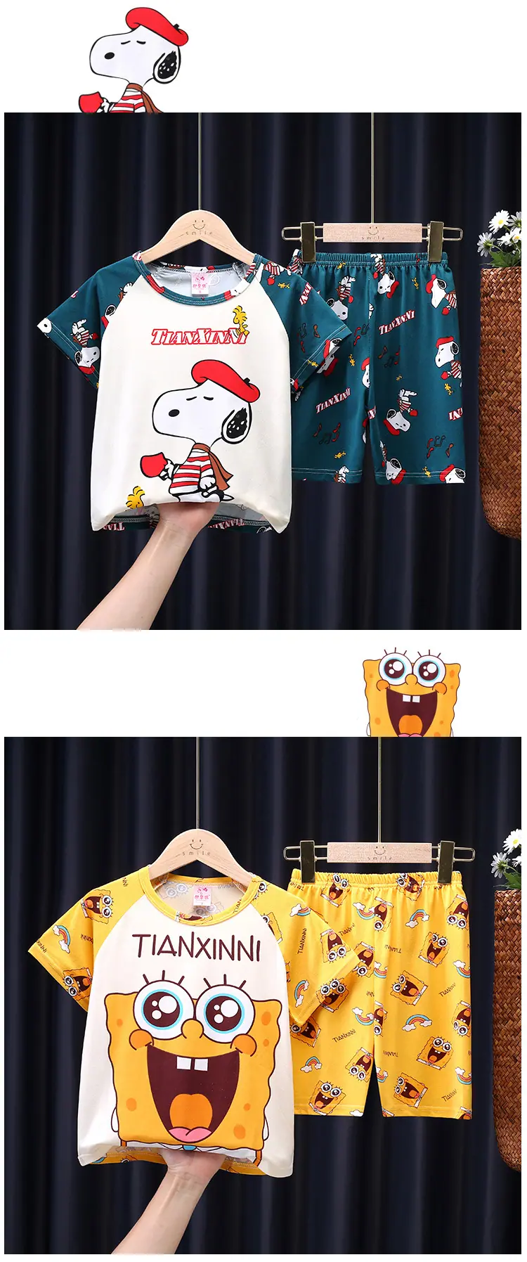 Pijamas de Verano para Niños Delgados Grandes para Niños y Niñas de Manga Corta Traje de Verano para Niños Ropa de Casa Ropa Exterior