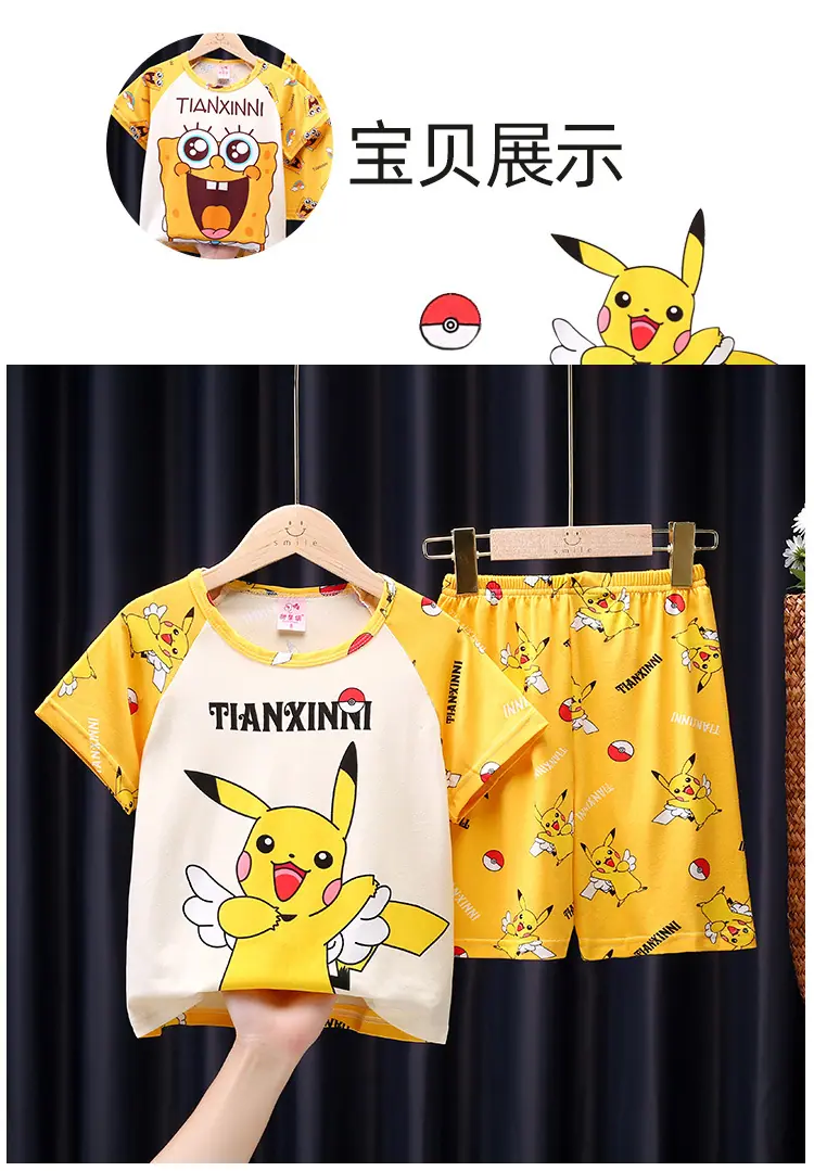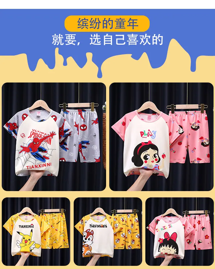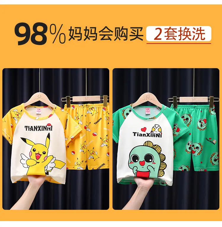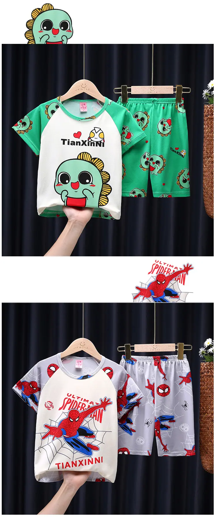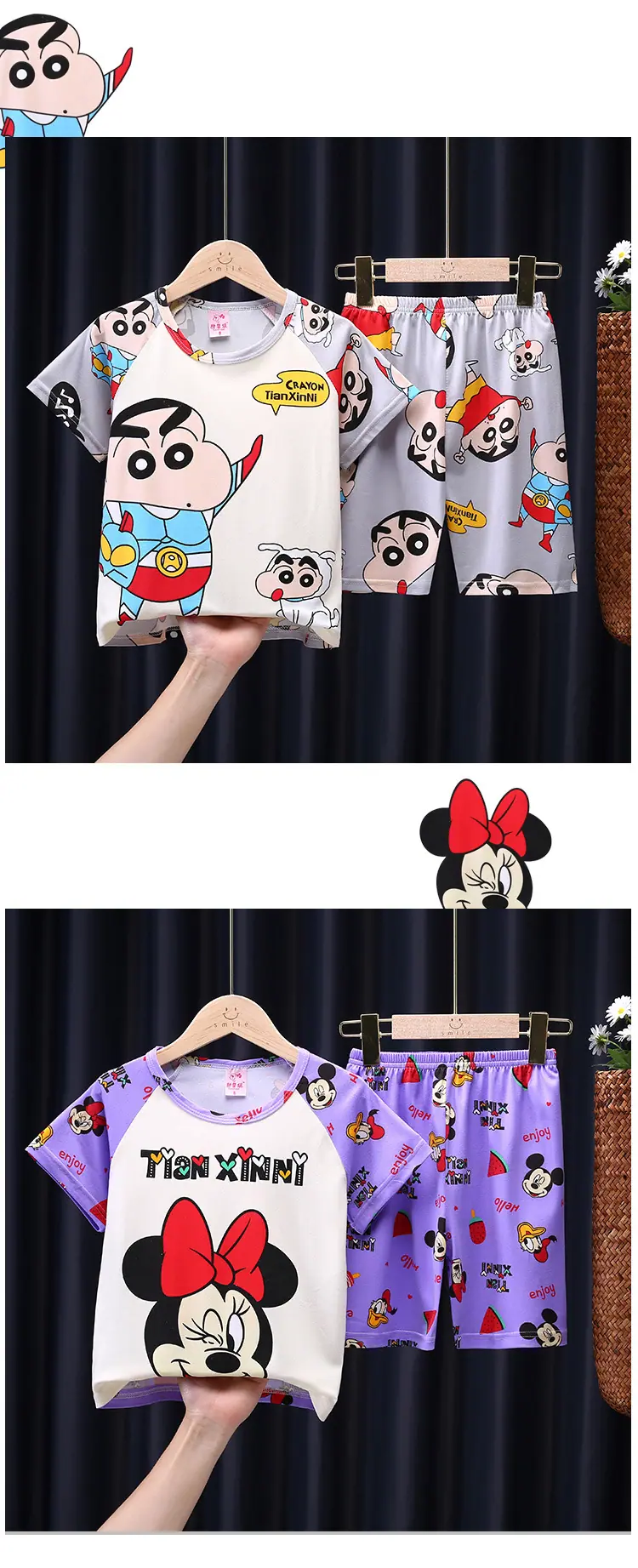 Pijamas de Verano para Niños Delgados Grandes para Niños y Niñas de Manga Corta Traje de Verano para Niños Ropa de Casa Ropa Exterior