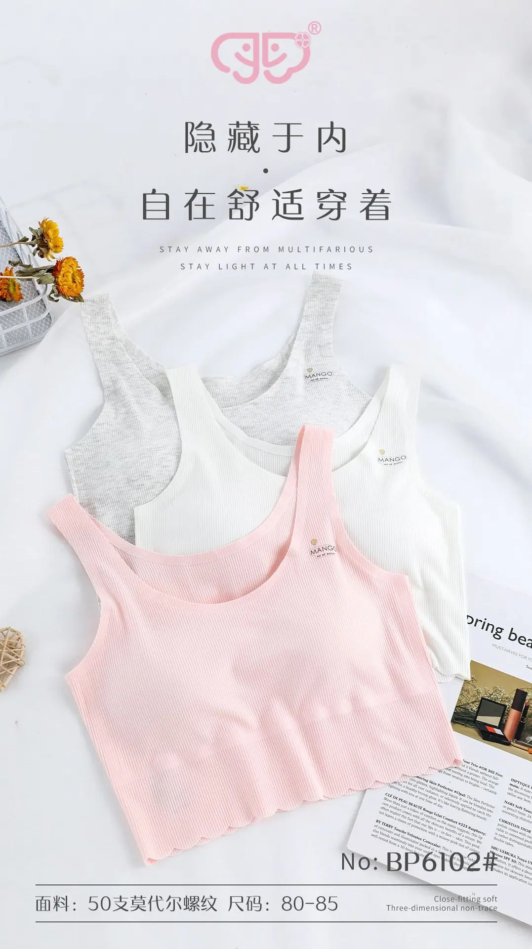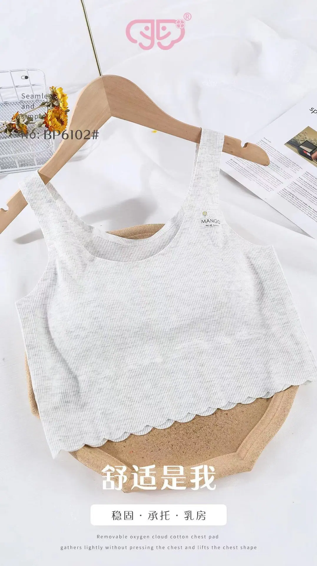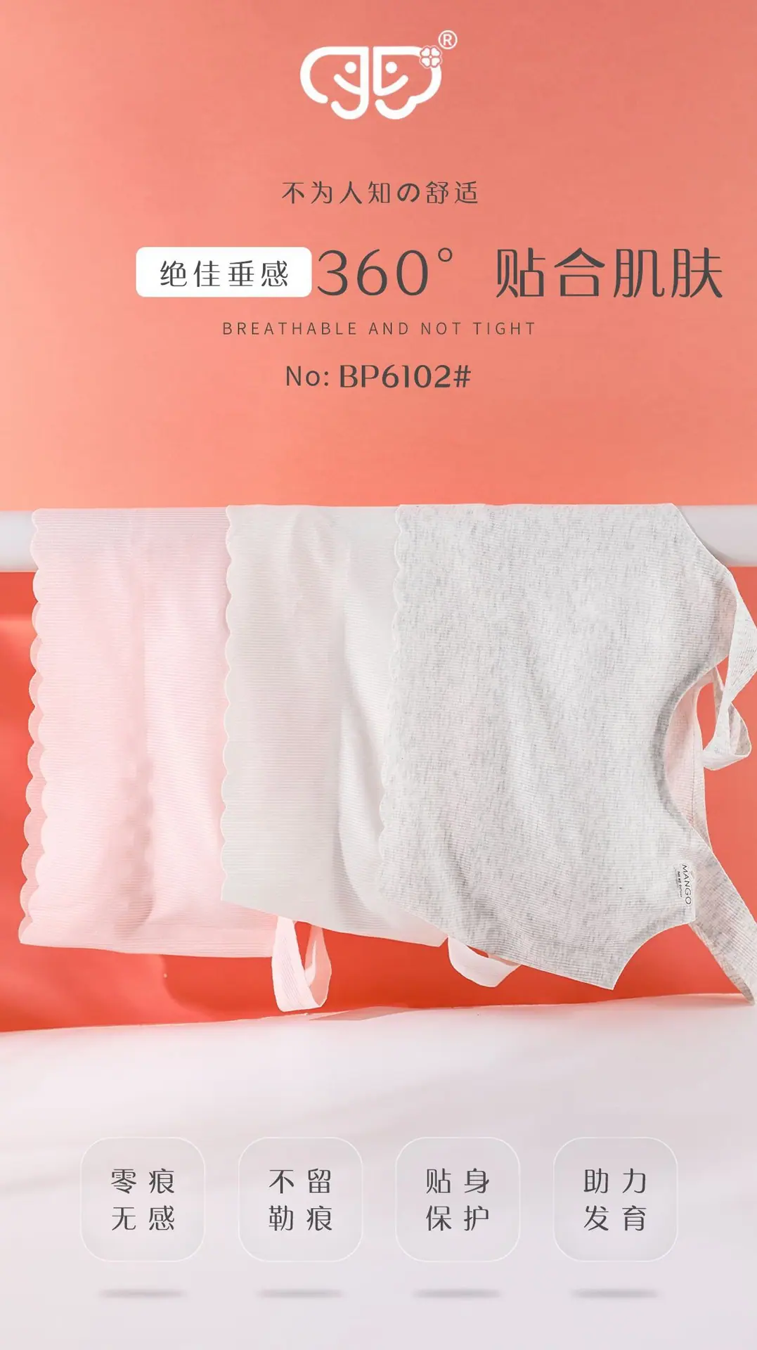 Estudiante de Secundaria Chica Modal Acanalado Estilo Largo Ropa Interior Agujero Estudiante Niños Período de Desarrollo Sujetador Sin Aros Anti-Protrusión