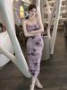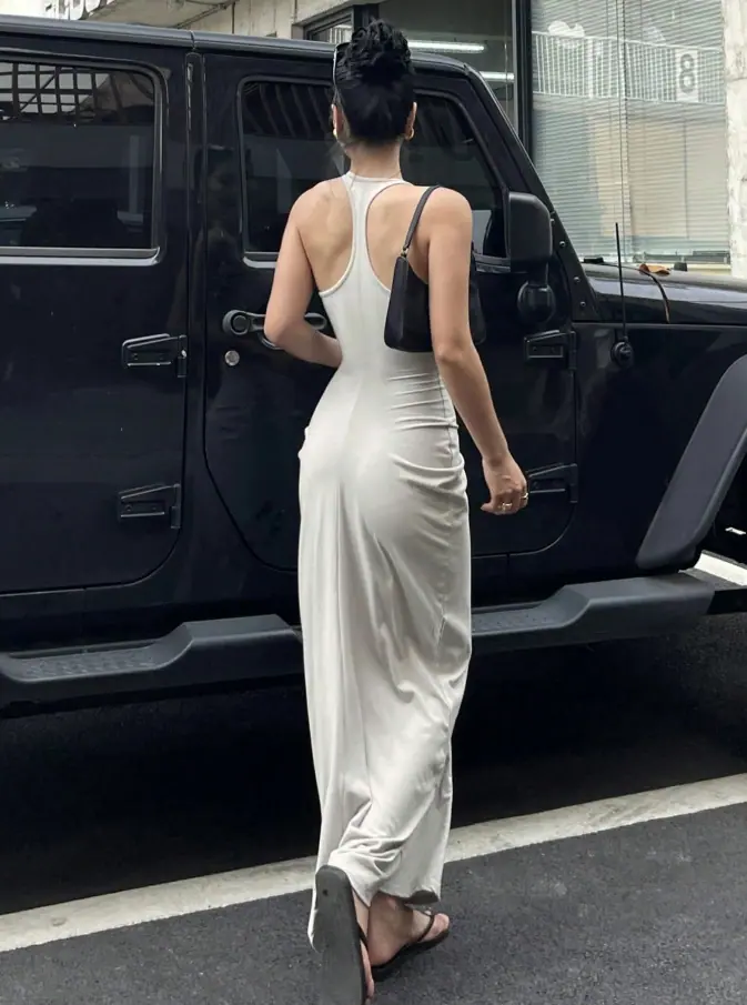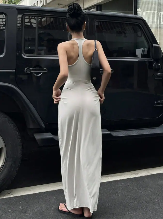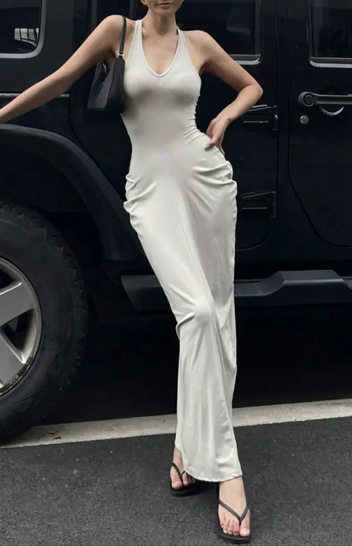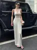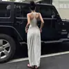Vestido Largo Sexy para Chica Caliente Transfronterizo Europeo y Americano 2025 Cuello en U Profundo Escotado Cubre Vientre Adelgazante Halter Sin Mangas Cintura Alta