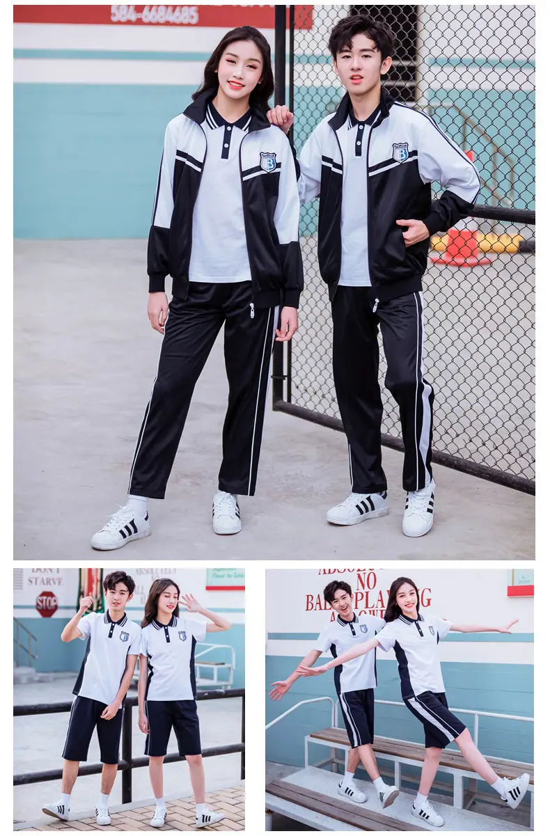 Uniforme escolar traje de estudiante de primaria ropa de primavera y otoño ropa de jardín de infancia ropa deportiva azul verano estudiante de secundaria traje de tres piezas ropa de clase