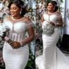Vestidos de Novia Sirena Lujo Africano Encaje con Perlas Blancas Manga Larga Vintage Elegantes Vestidos de Novia Vestido 2026