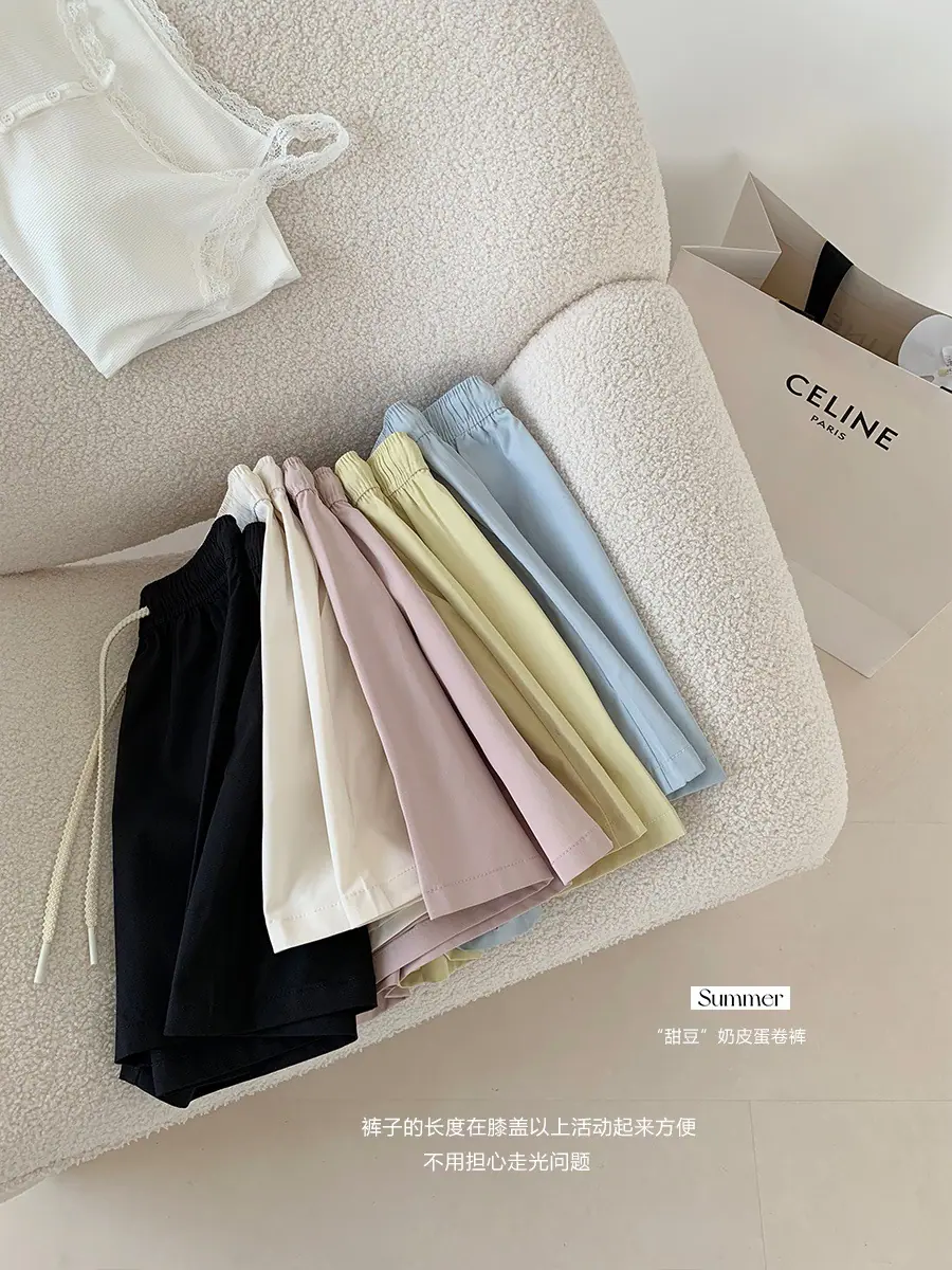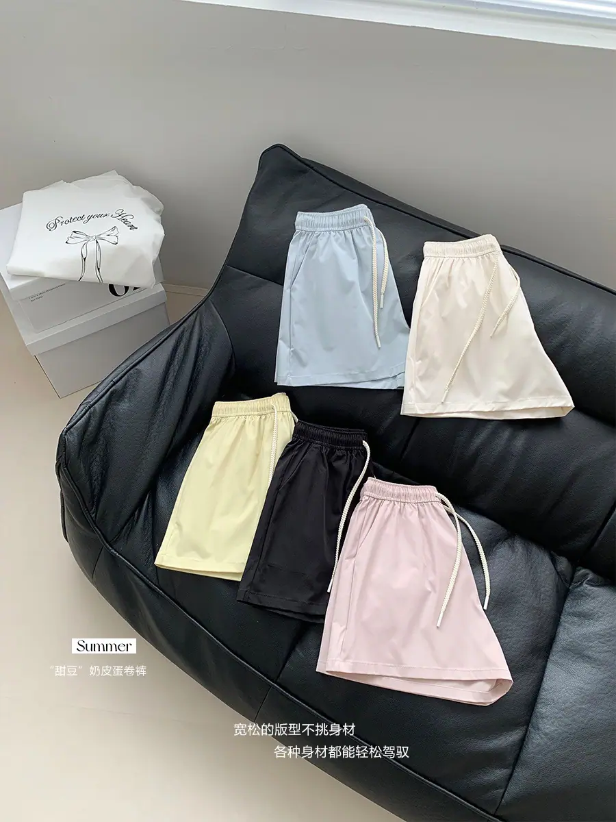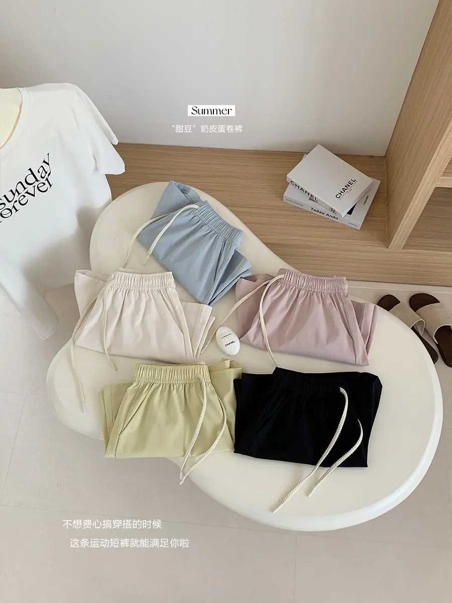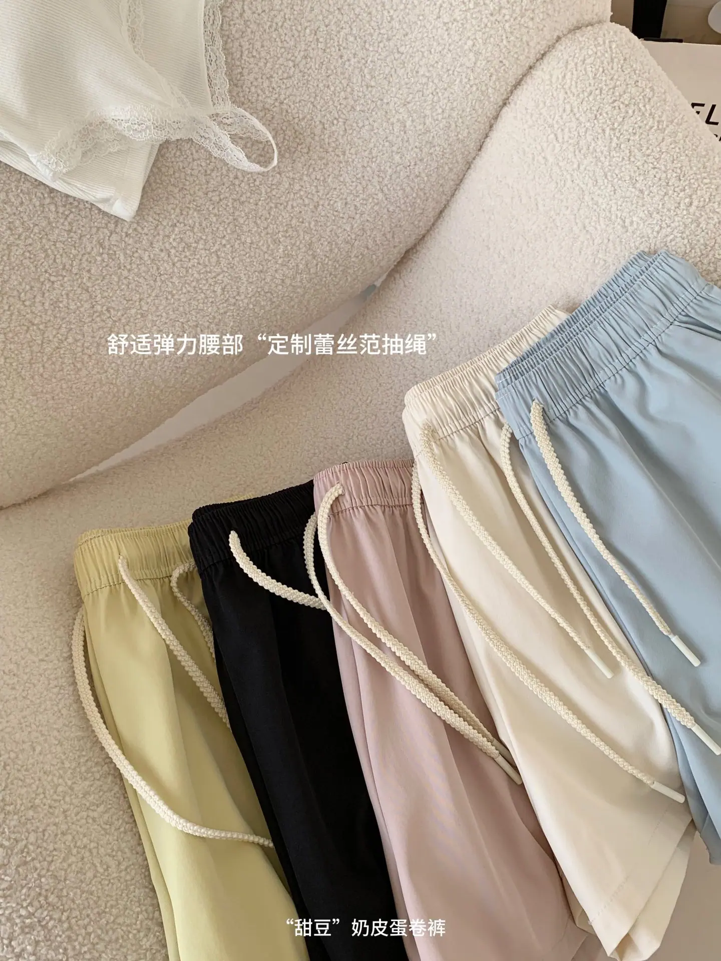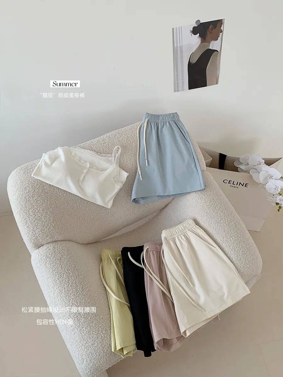 Shorts Casuales Rectos con Cordón Elástico de Cintura Alta para Mujer Verano 2025 Nuevo Holgado Adelgazante Deportivo Pantalones Versátiles Modernos