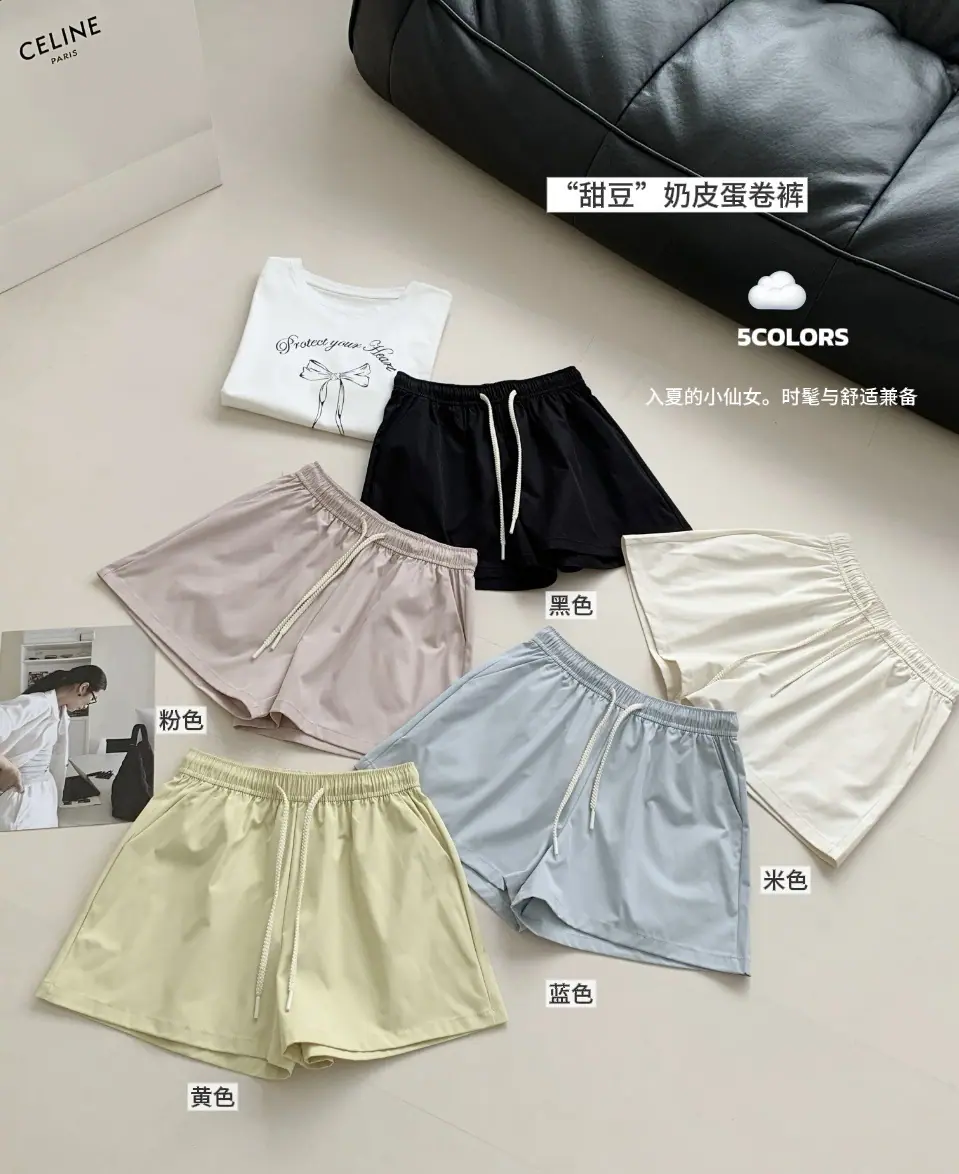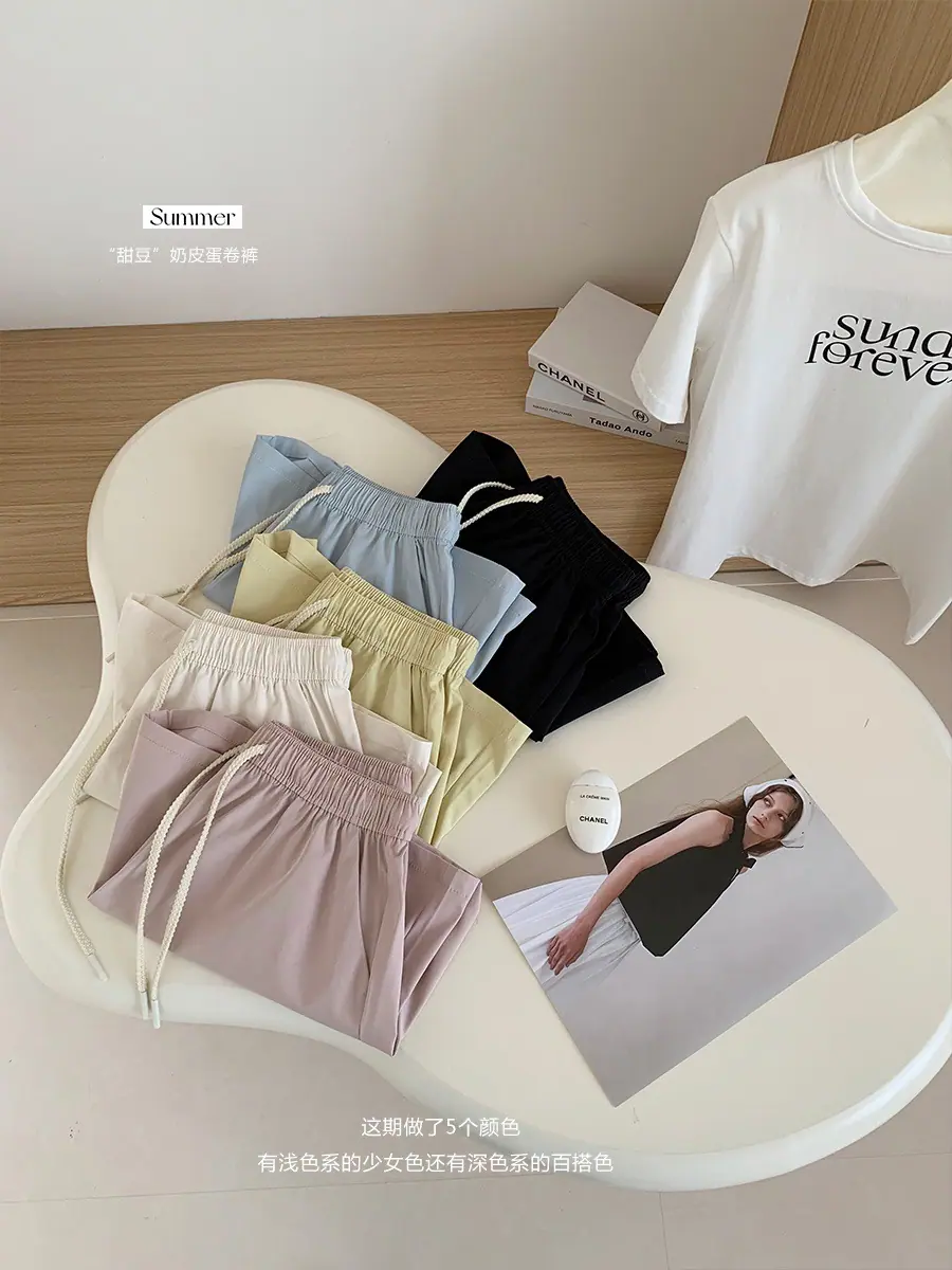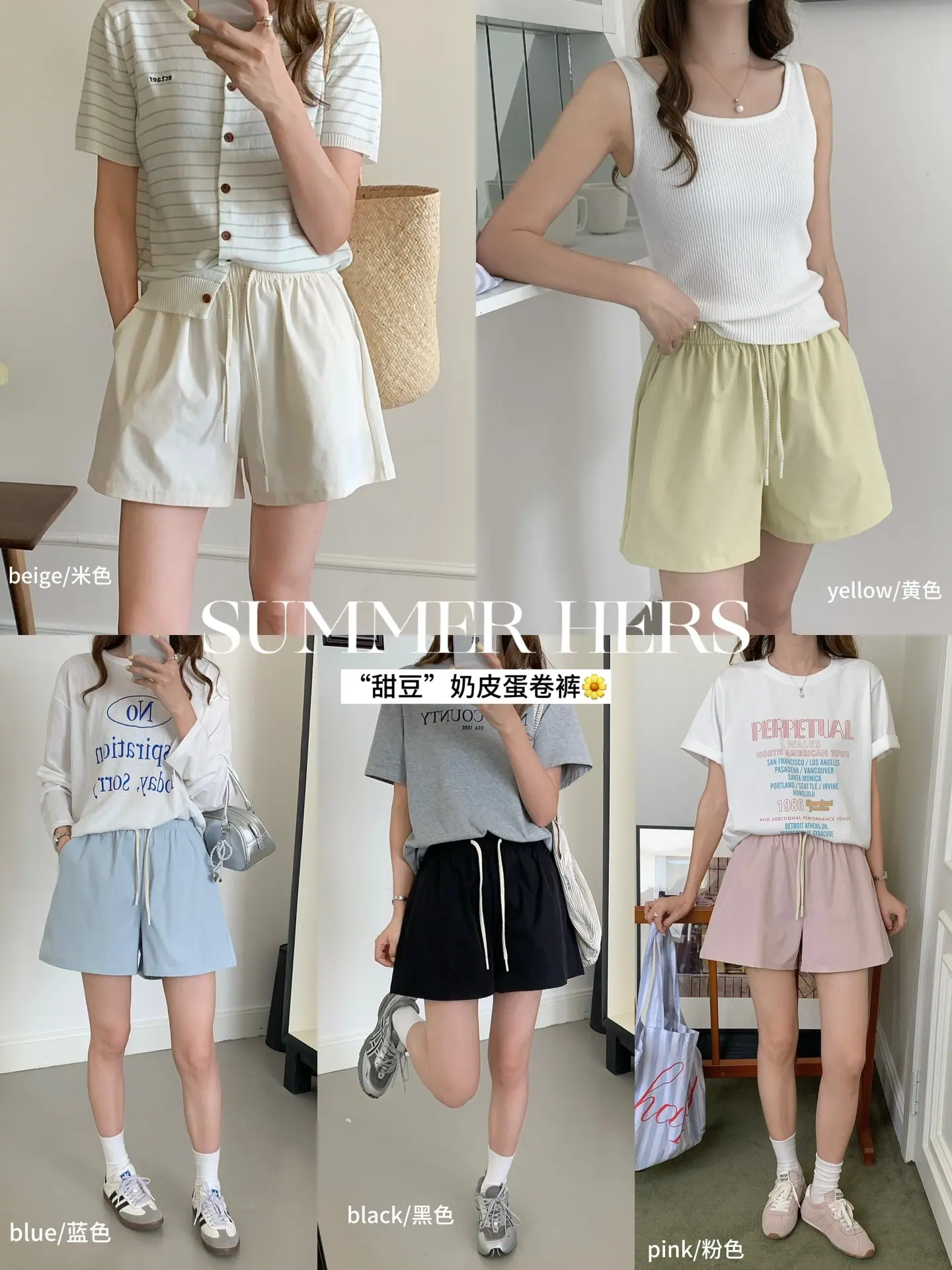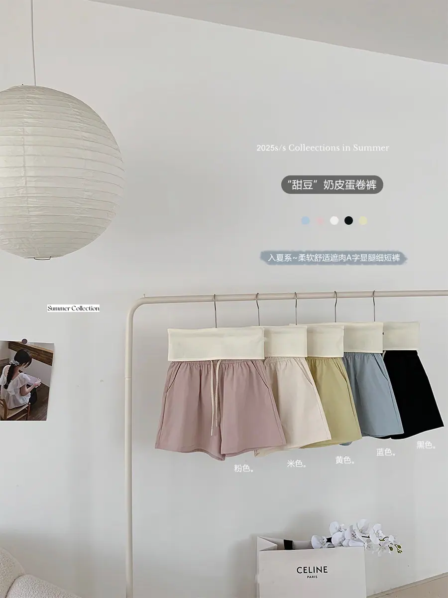 Shorts Casuales Rectos con Cordón Elástico de Cintura Alta para Mujer Verano 2025 Nuevo Holgado Adelgazante Deportivo Pantalones Versátiles Modernos