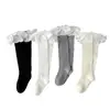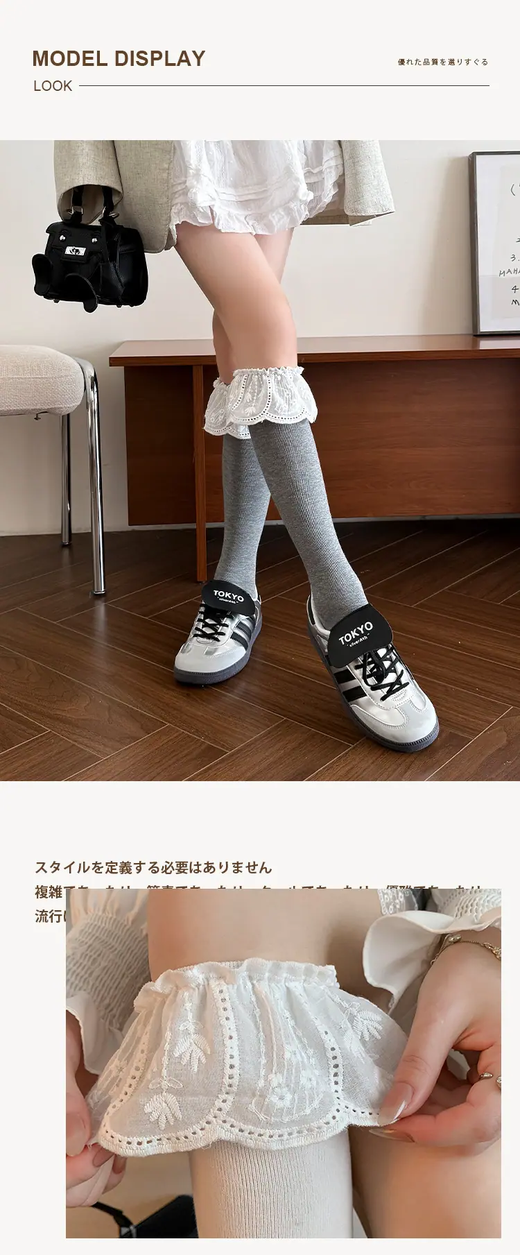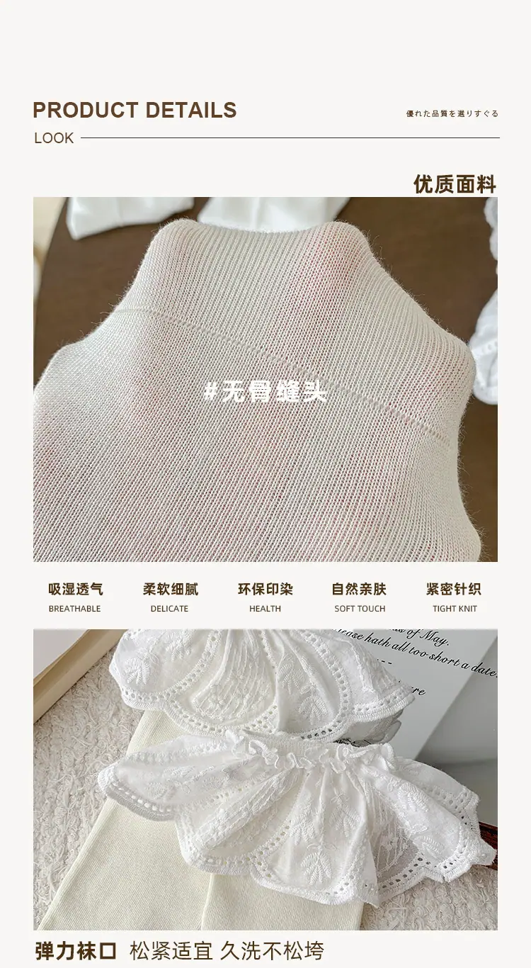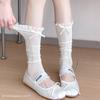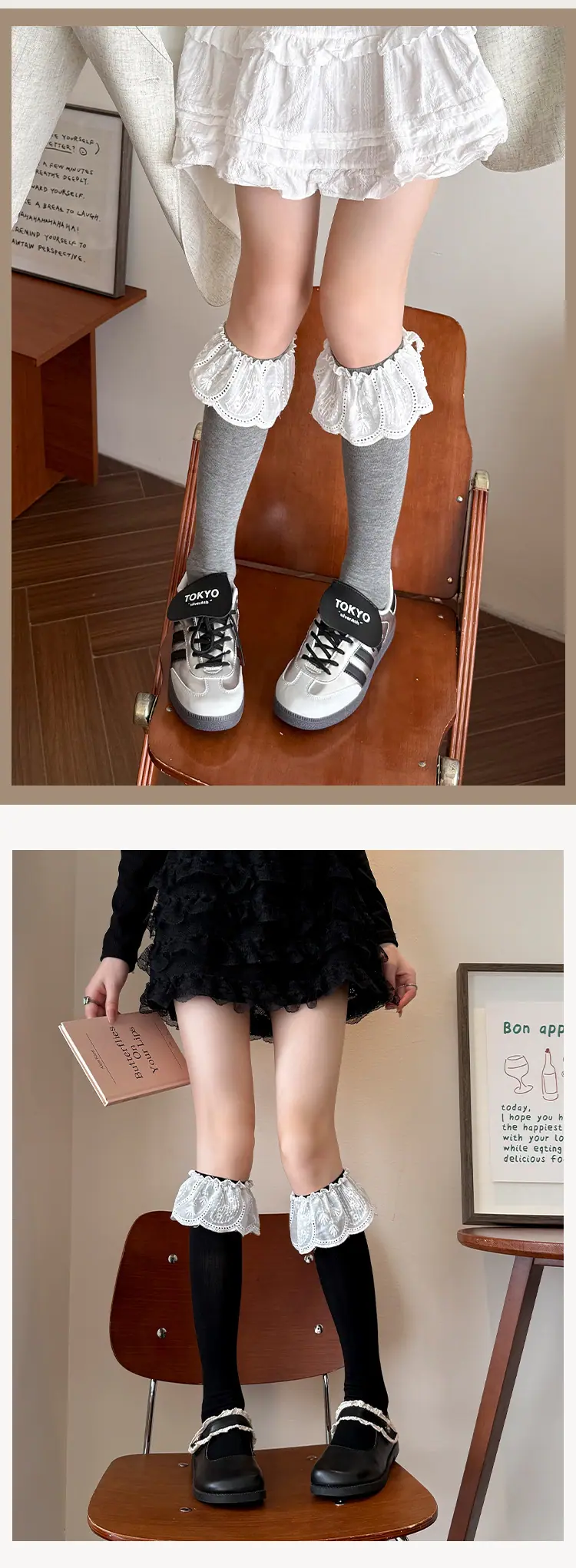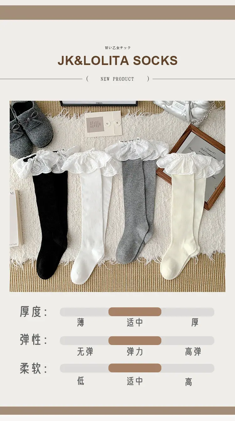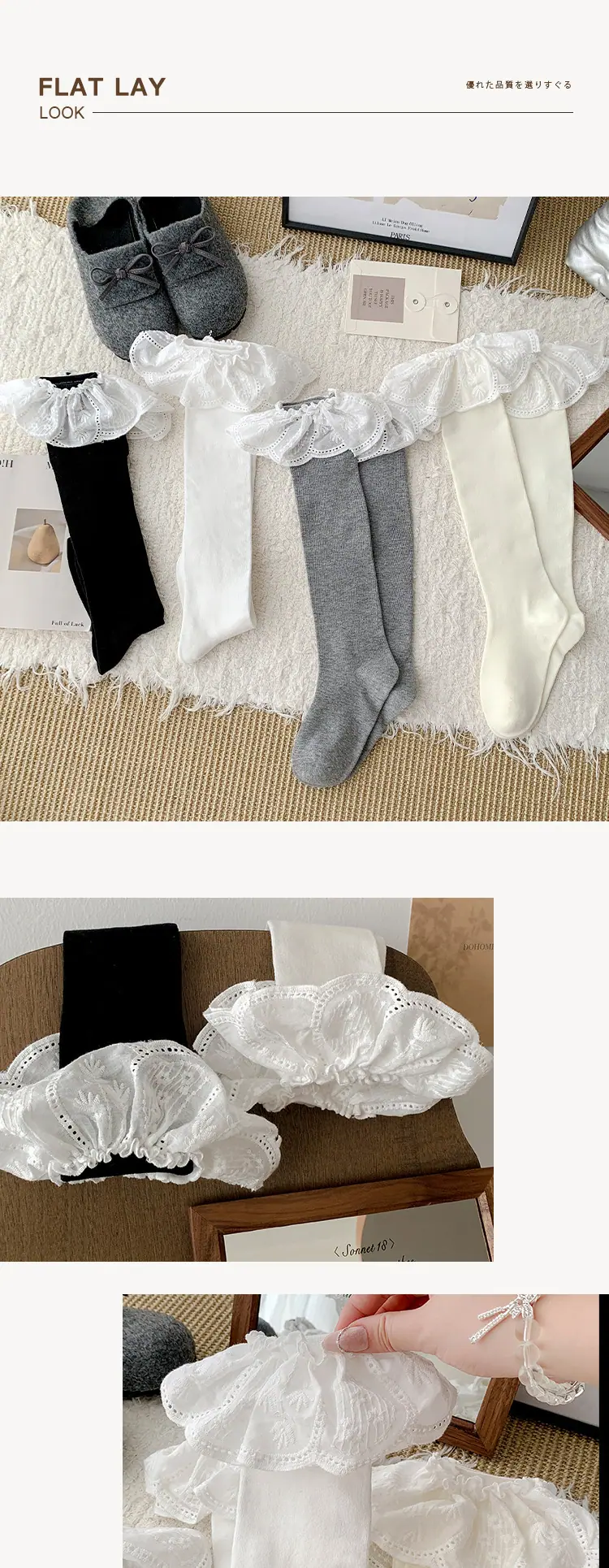 Calcetines altos hasta la rodilla de encaje grande para mujer Primavera Otoño estilo miu estilo Ballet lolita blancos por encima de la rodilla