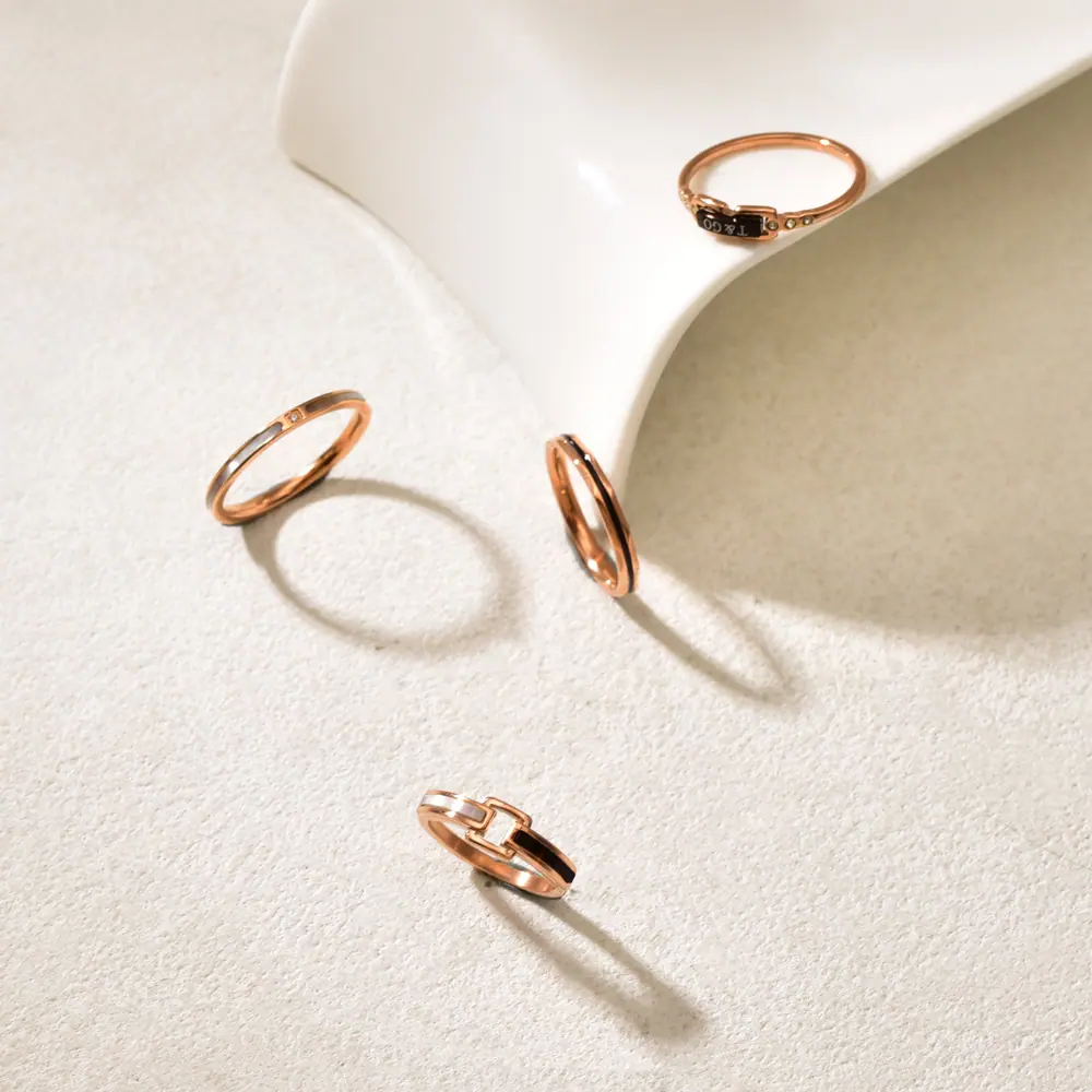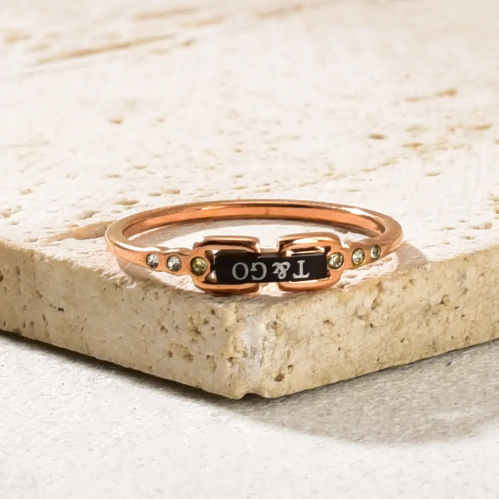 Material: acero de titanio + revestimiento al vacío en horno + oro de 18 quilates