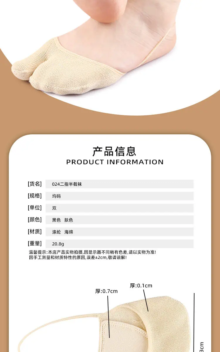 Calcetines Finos de Verano de Dos Dedos con Correas, Zapatos de Tacón Alto, Medias de Medio Pie Acolchadas Suaves Absorbentes de Impactos para el Antepié