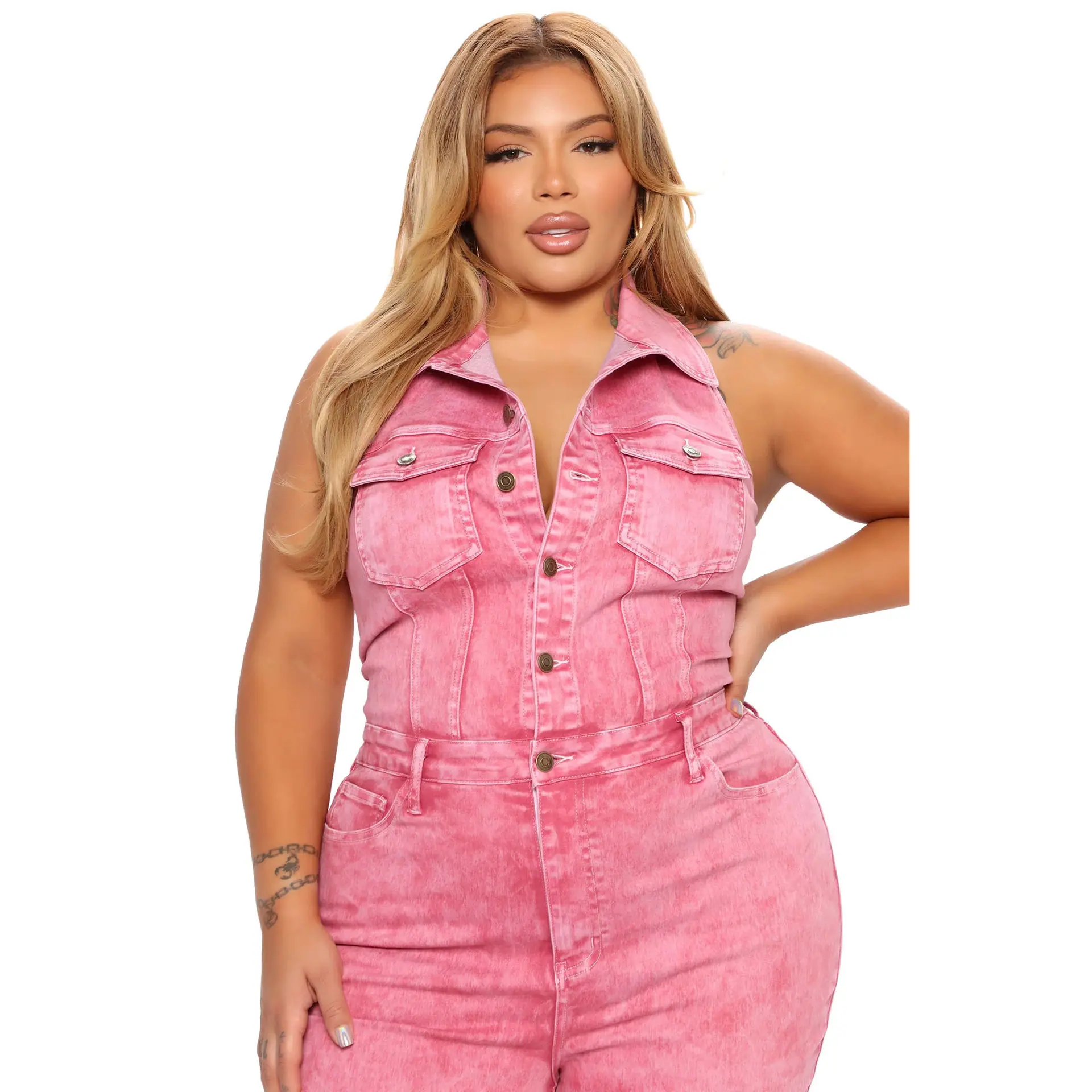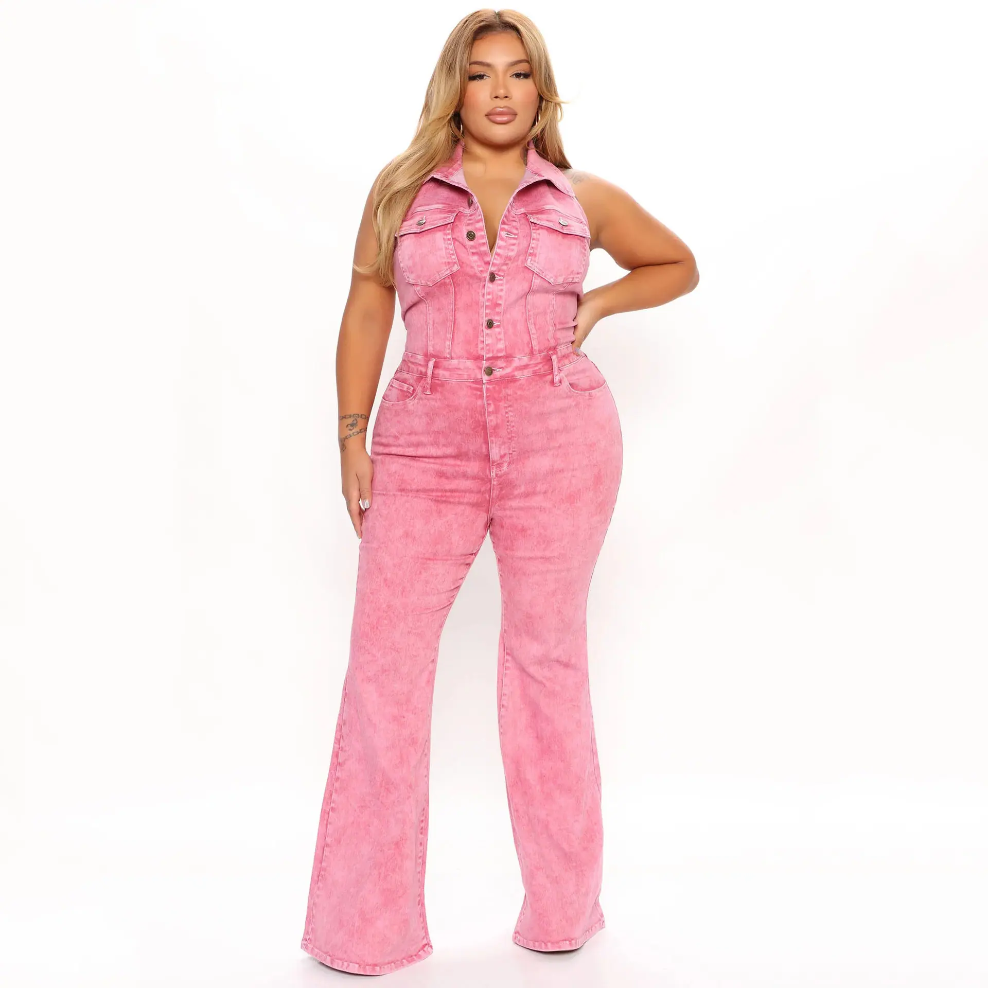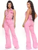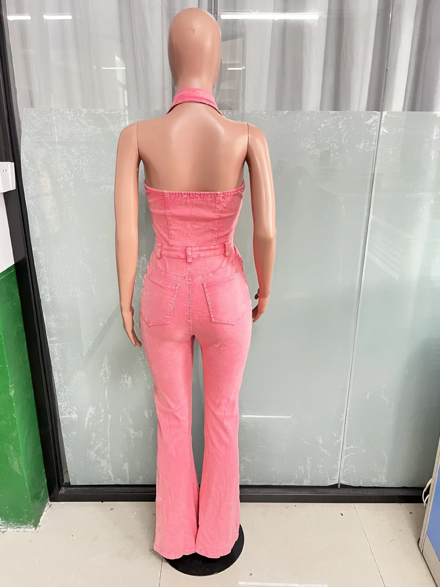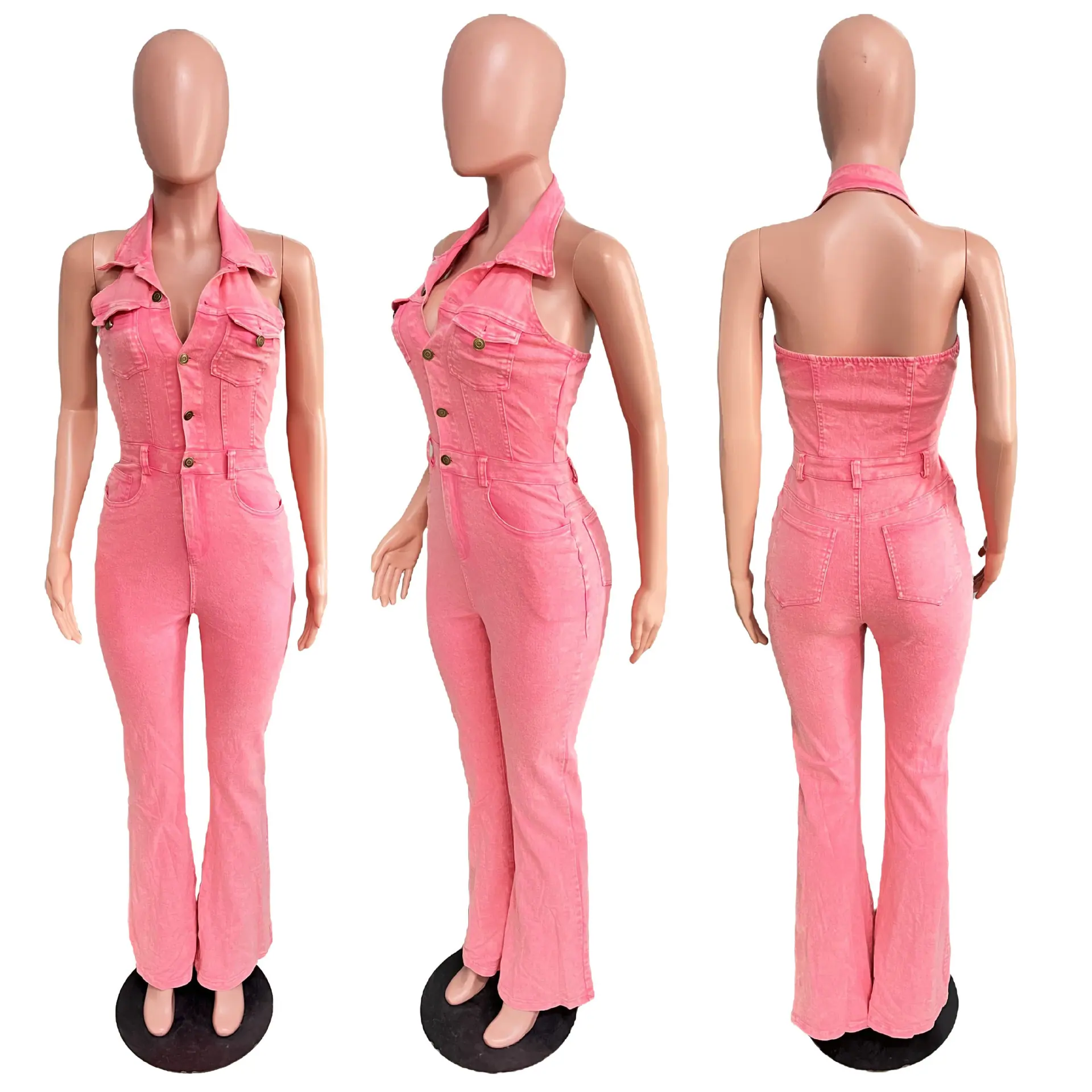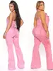 Moda Europea y Americana Transfronteriza Jumpsuit Cargo de Solapa sin Espalda Sexy de Alta Elasticidad