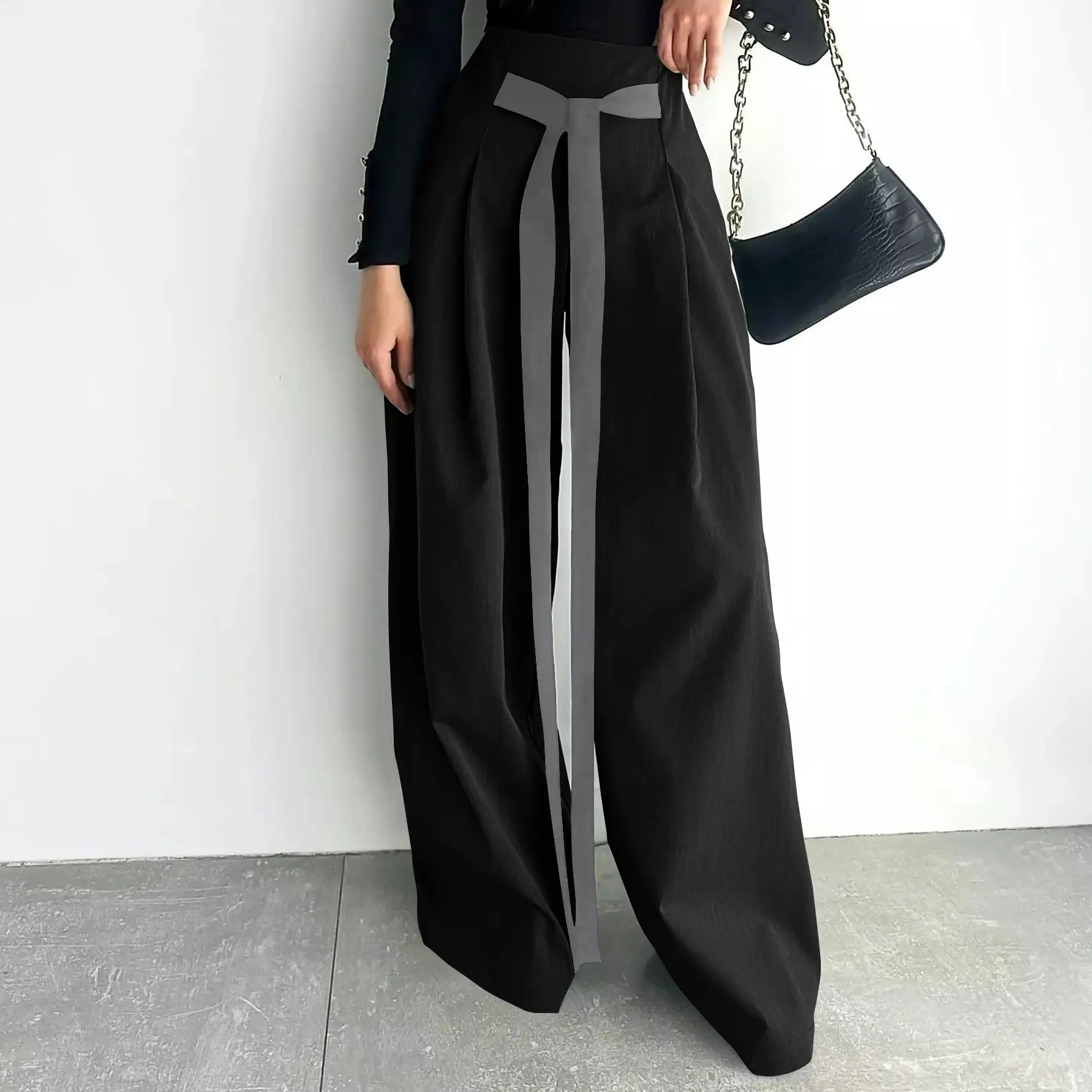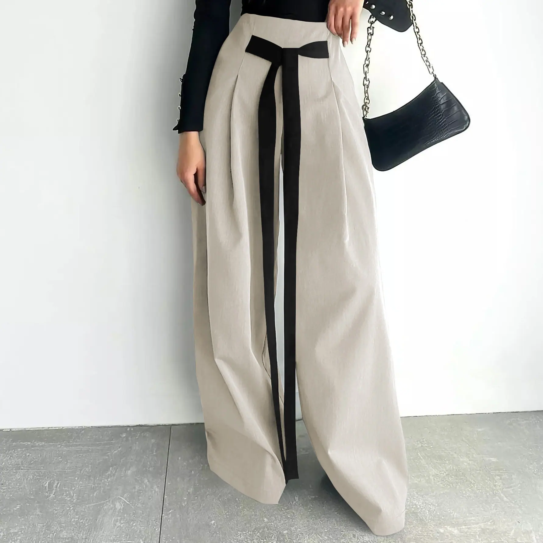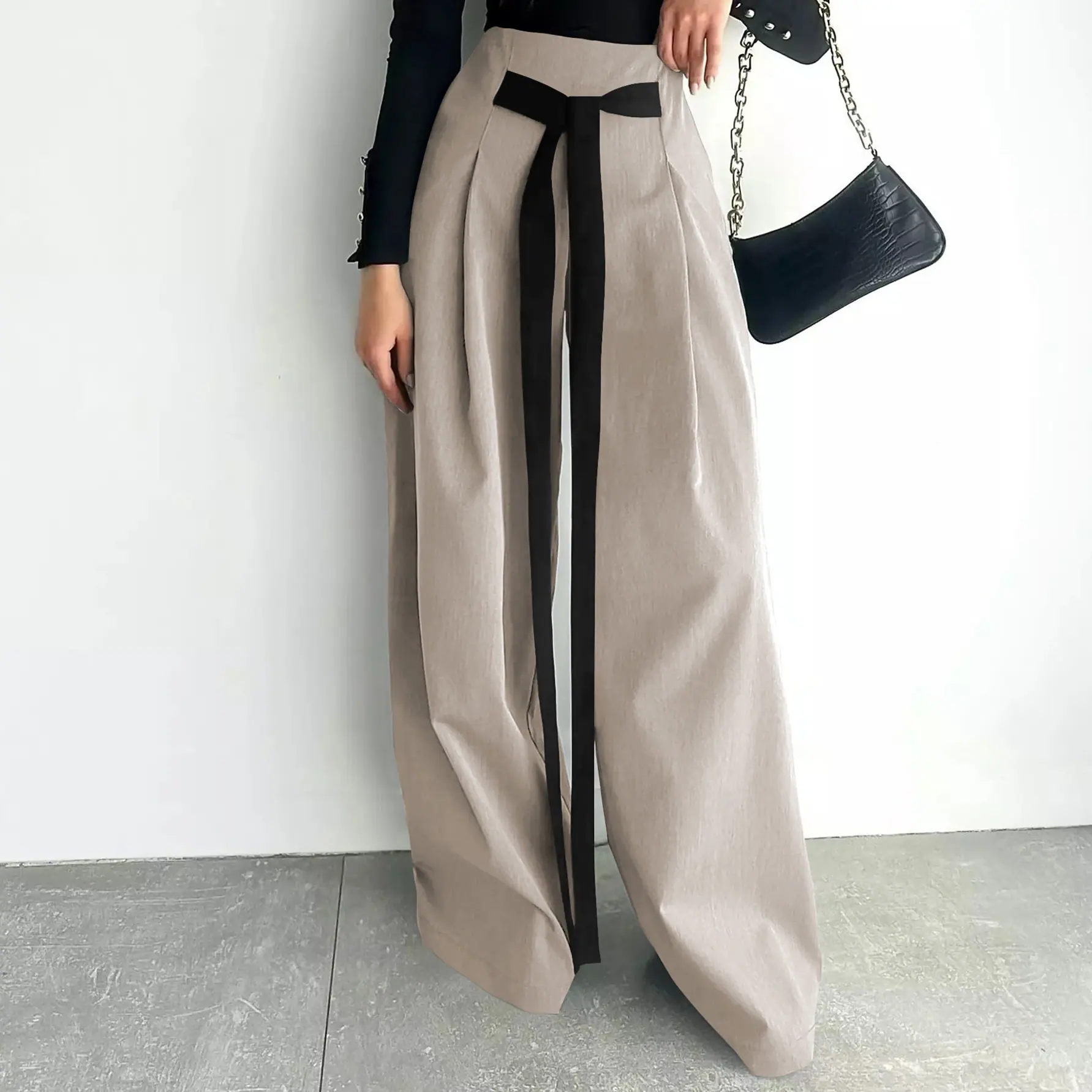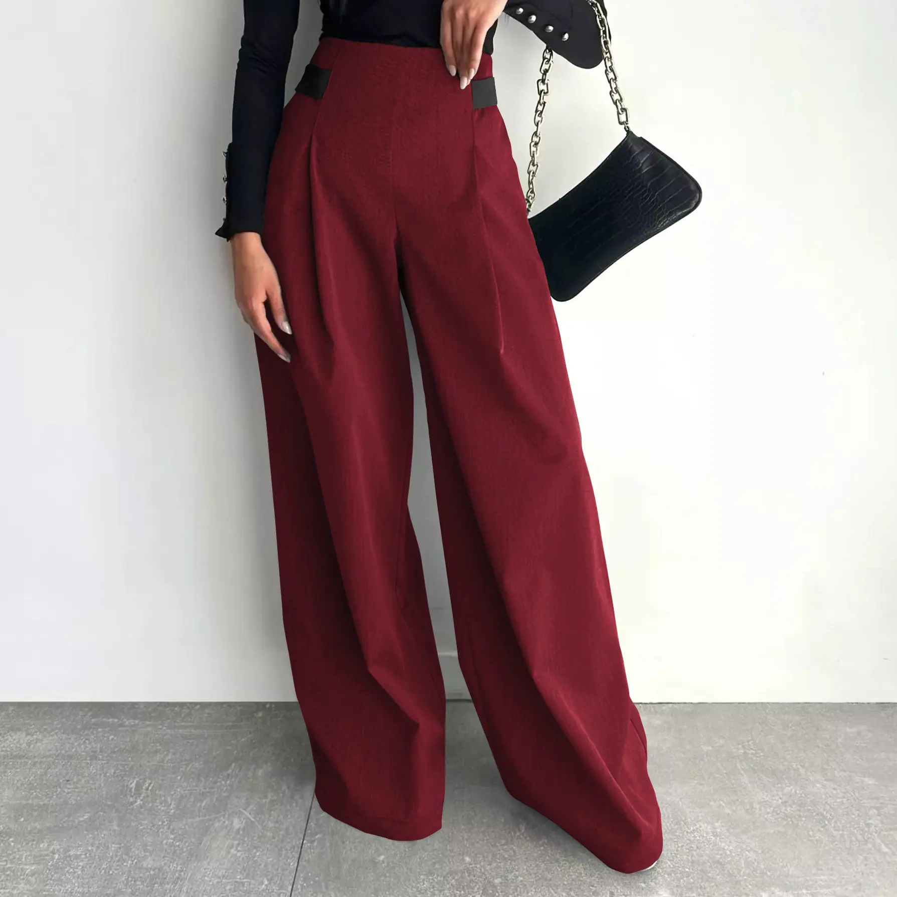 Traje de Diseño de Moda Europea y Americana para Comercio Exterior Transfronterizo, Pantalones de Pierna Ancha, Ropa de Trabajo Elegante de Color Puro de Alta Gama, Pantalones para Mujer que Estilizan la Figura