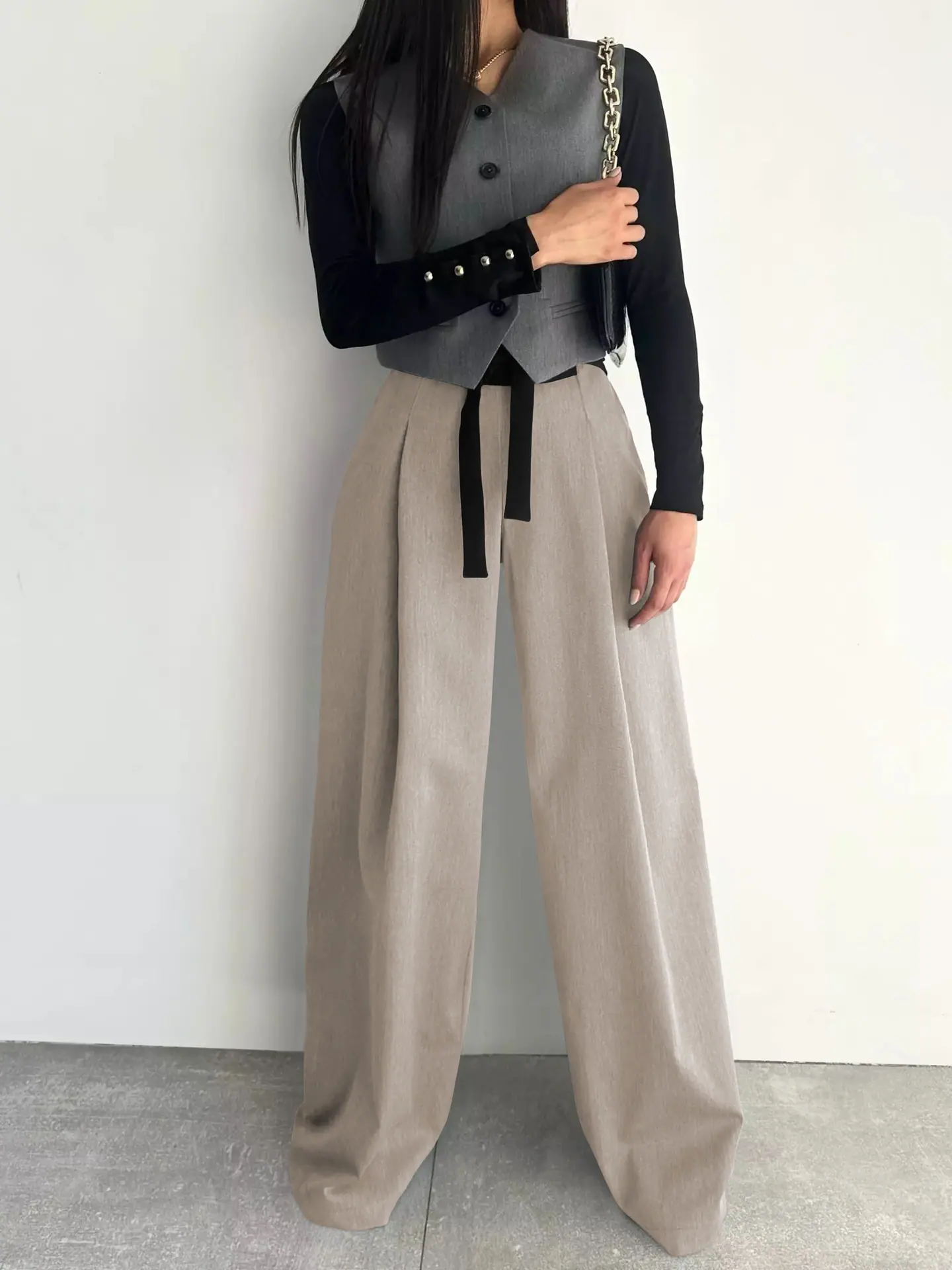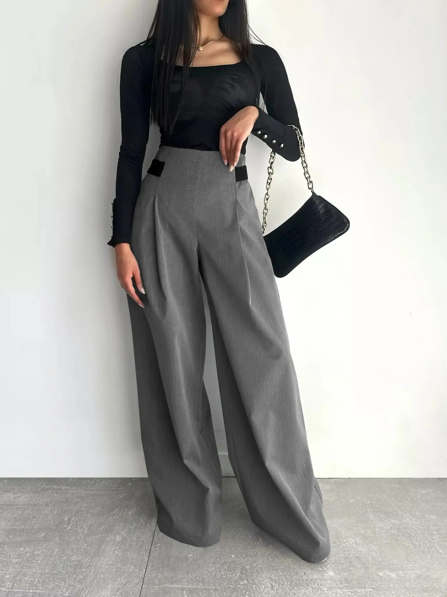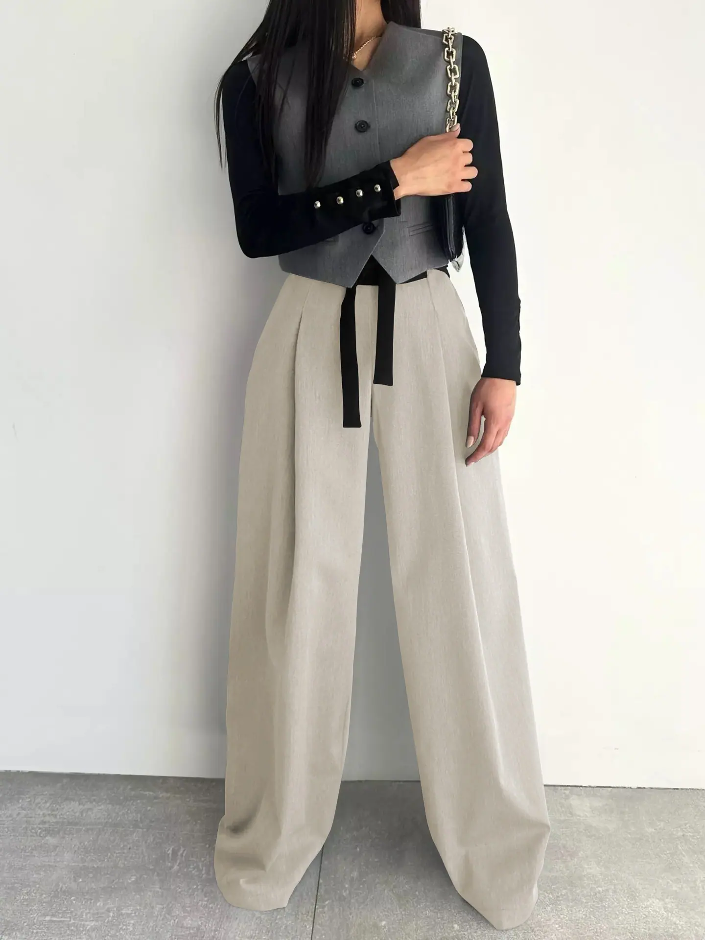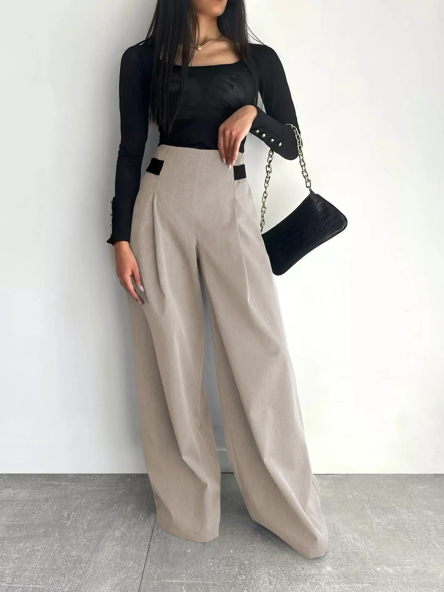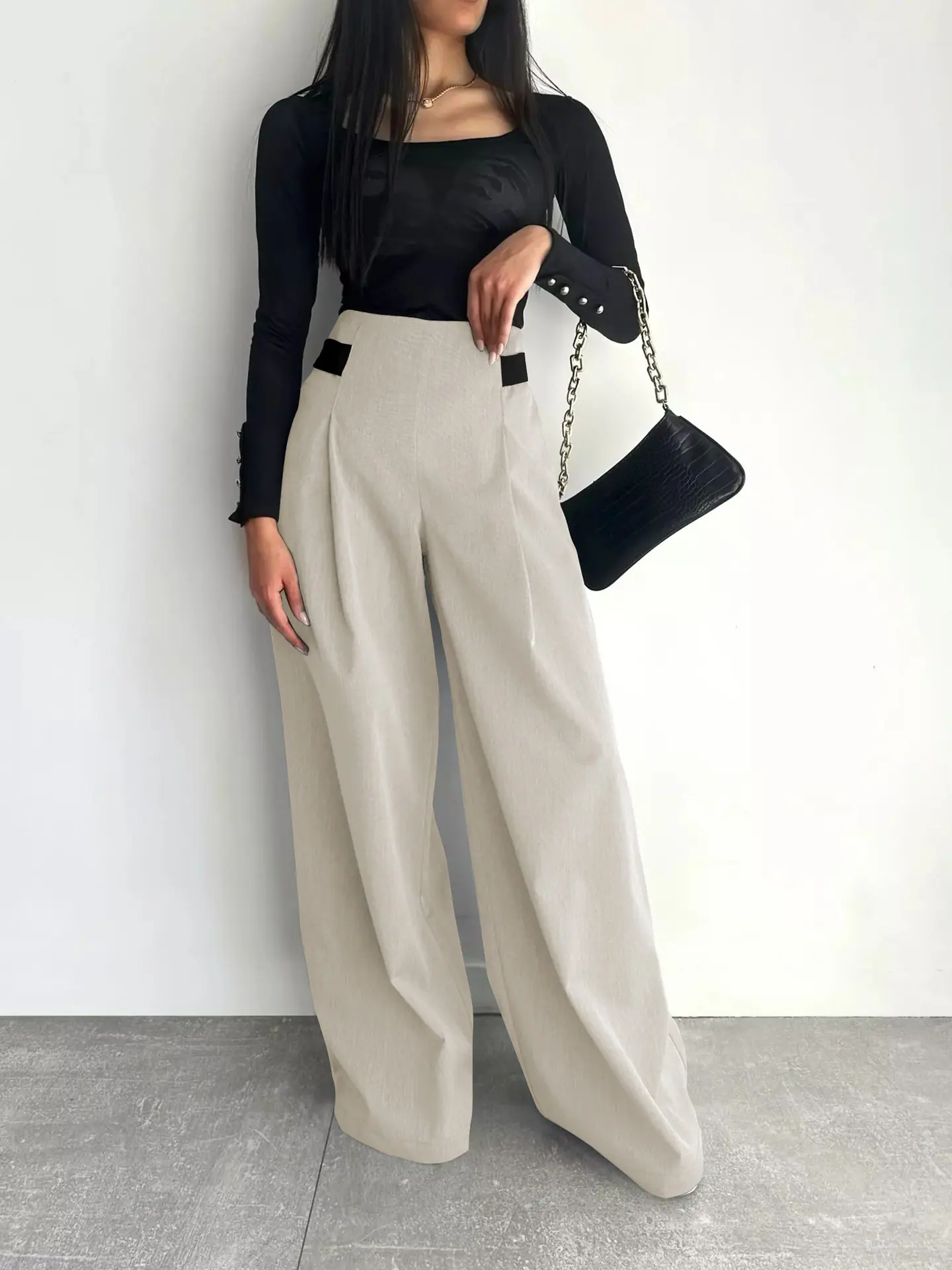 Traje de Diseño de Moda Europea y Americana para Comercio Exterior Transfronterizo, Pantalones de Pierna Ancha, Ropa de Trabajo Elegante de Color Puro de Alta Gama, Pantalones para Mujer que Estilizan la Figura