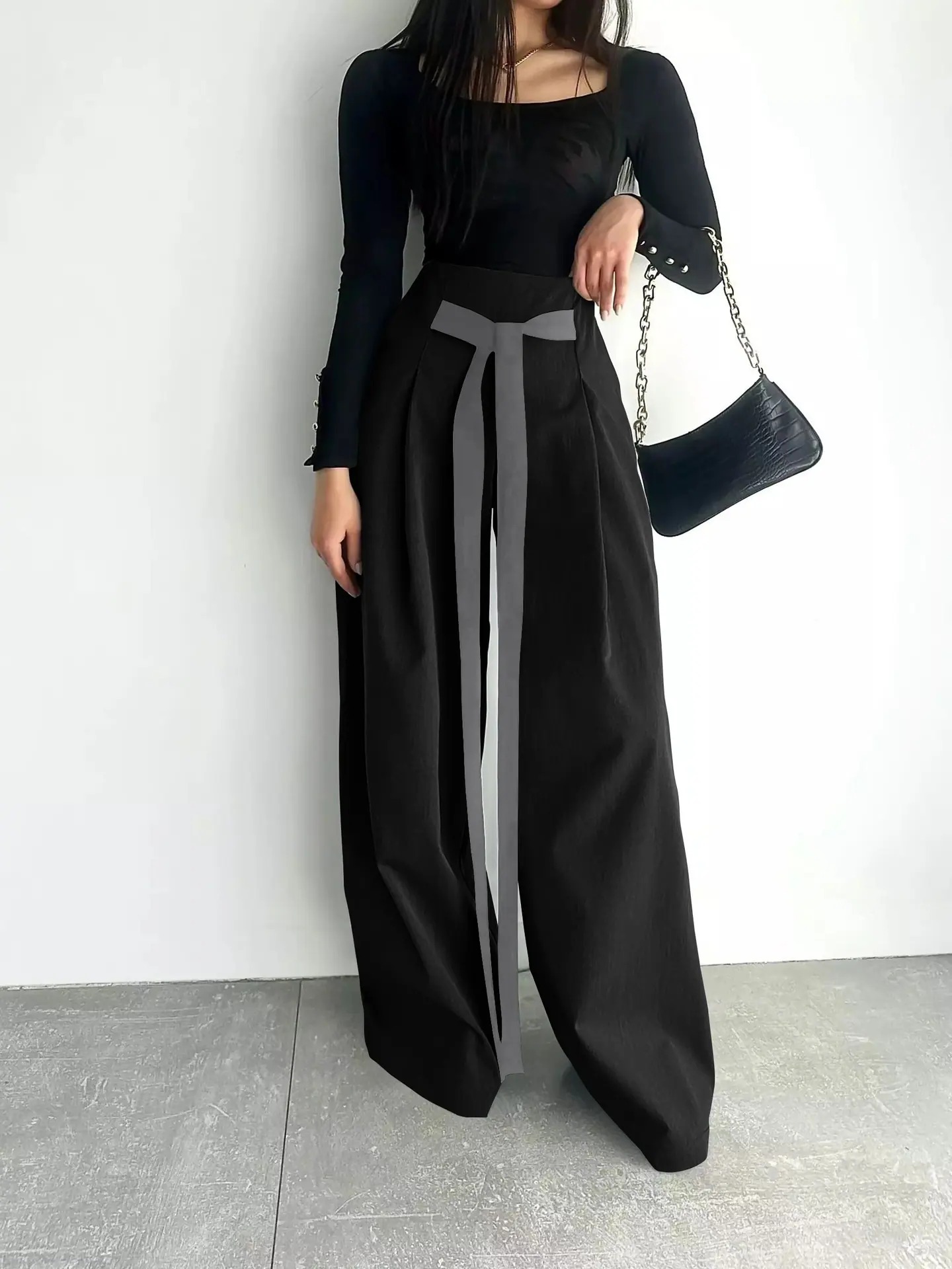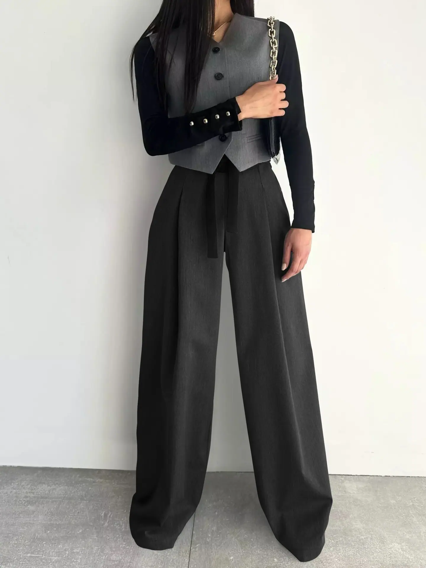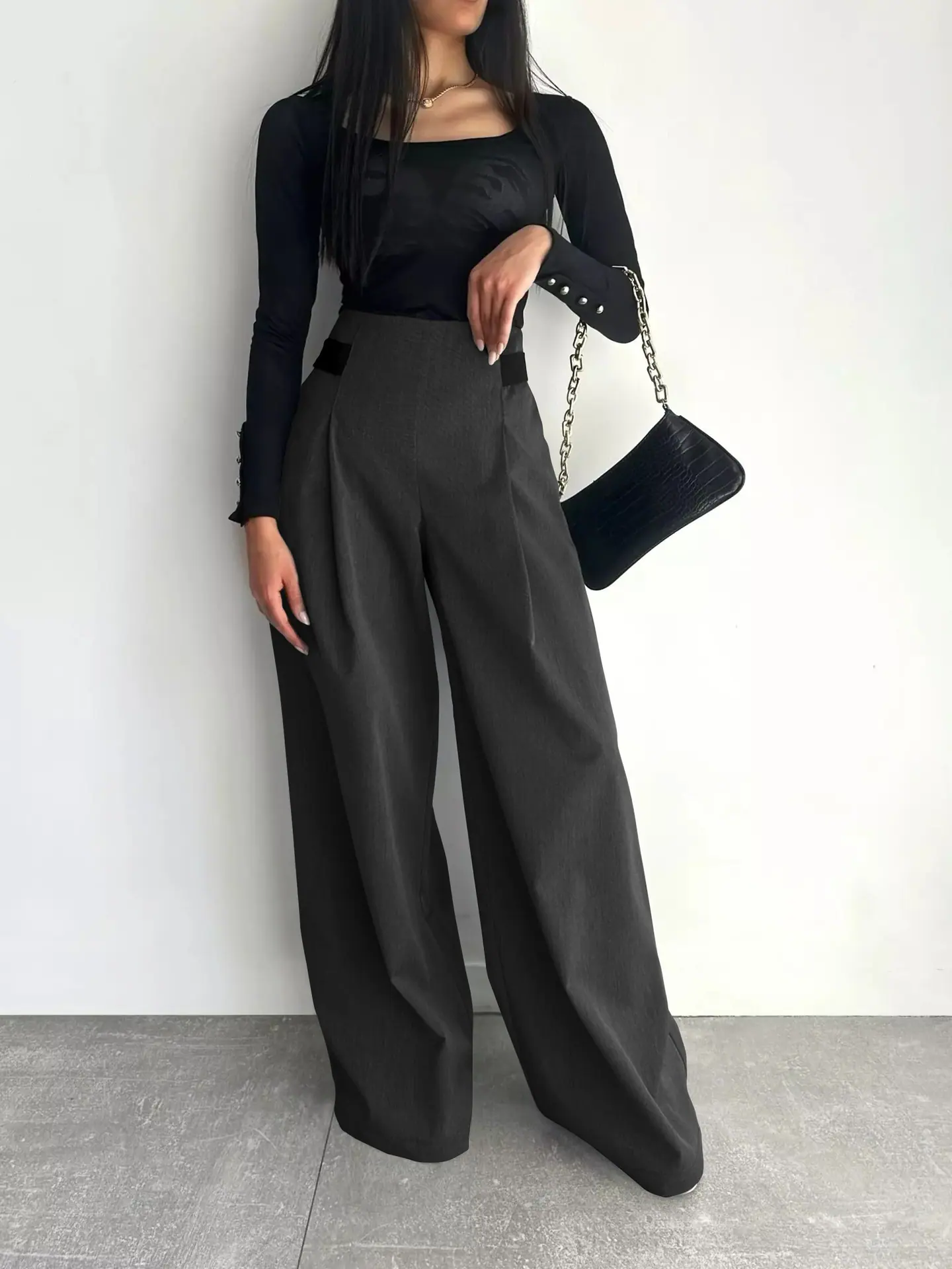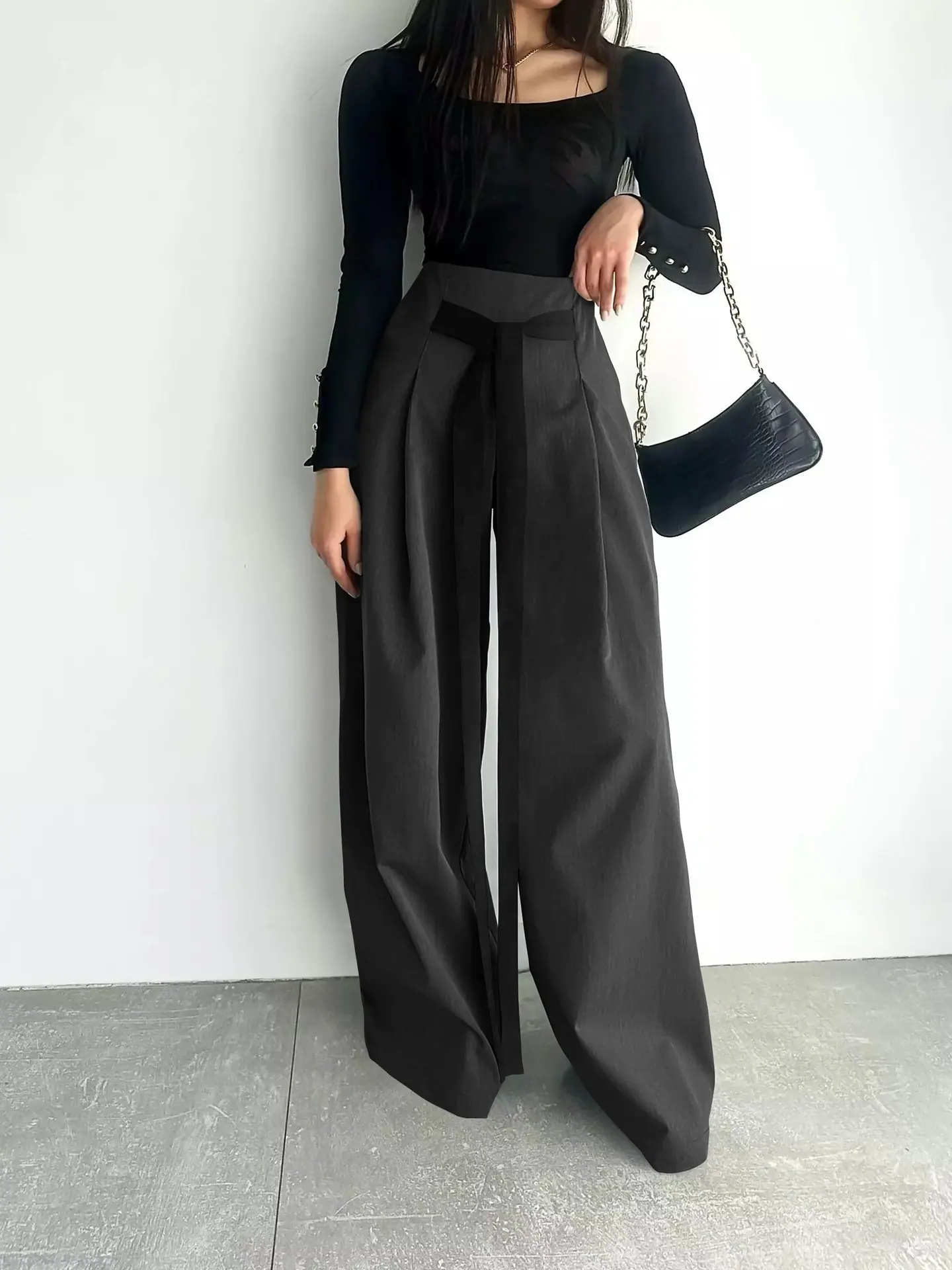 Traje de Diseño de Moda Europea y Americana para Comercio Exterior Transfronterizo, Pantalones de Pierna Ancha, Ropa de Trabajo Elegante de Color Puro de Alta Gama, Pantalones para Mujer que Estilizan la Figura