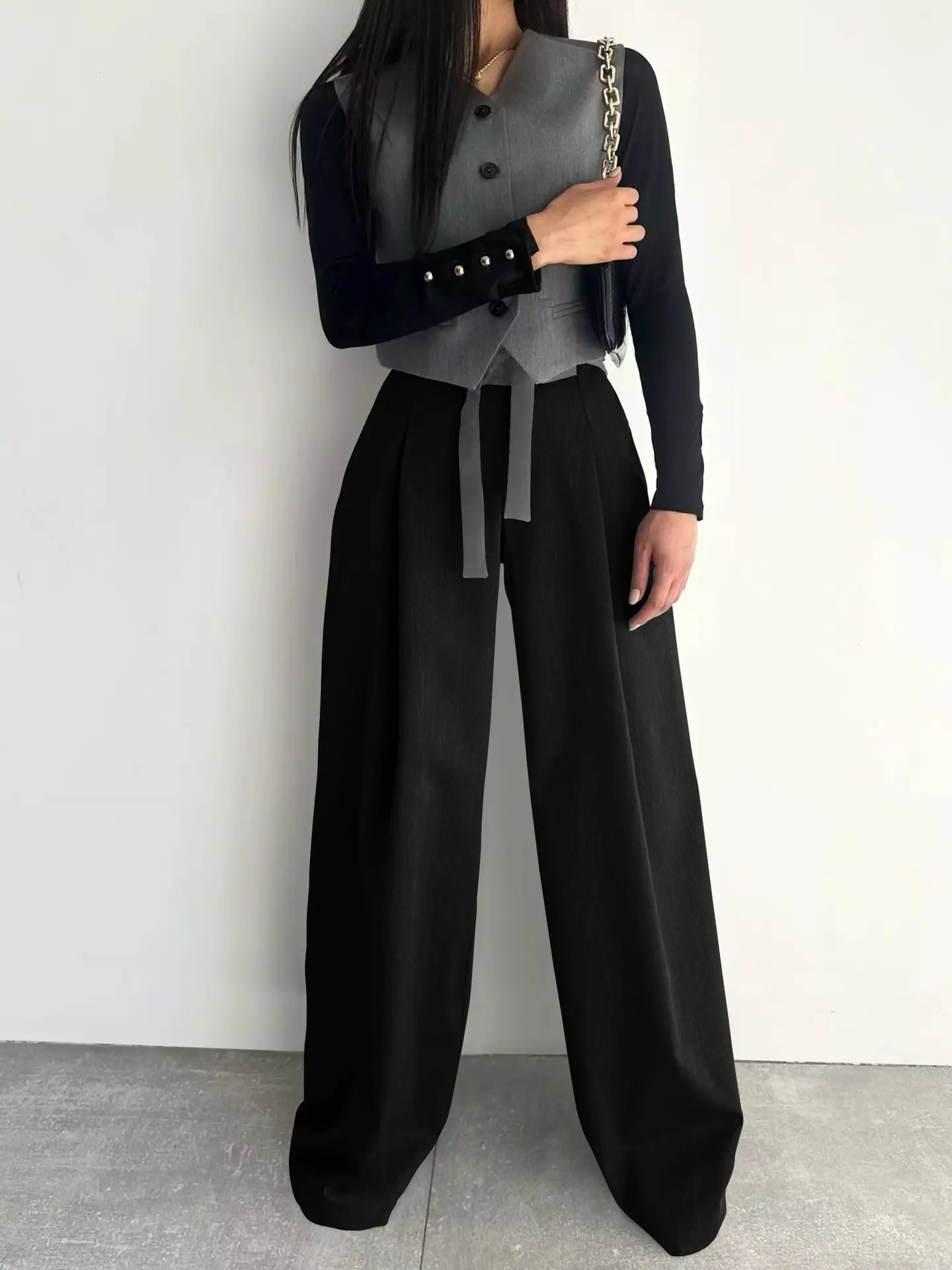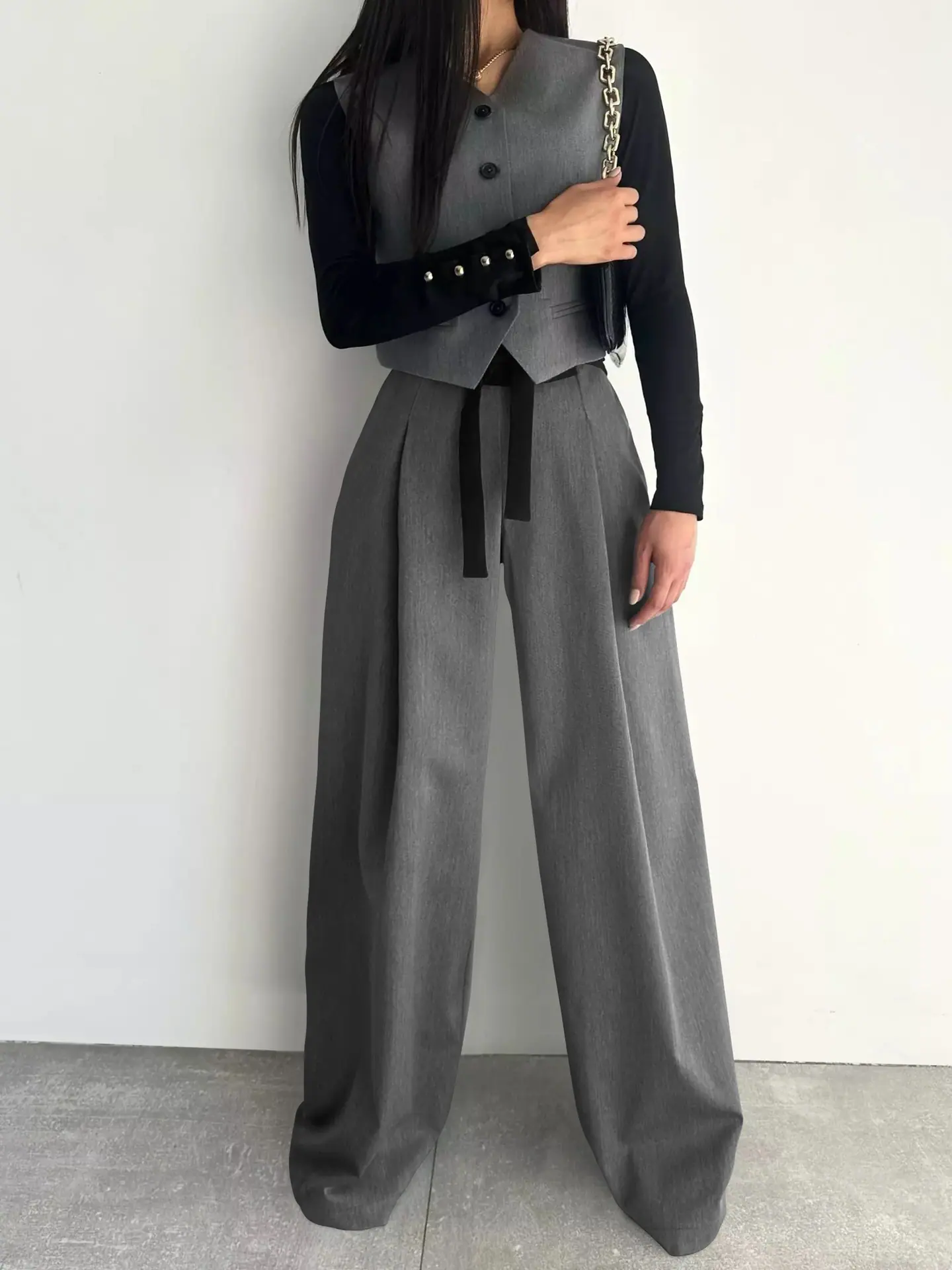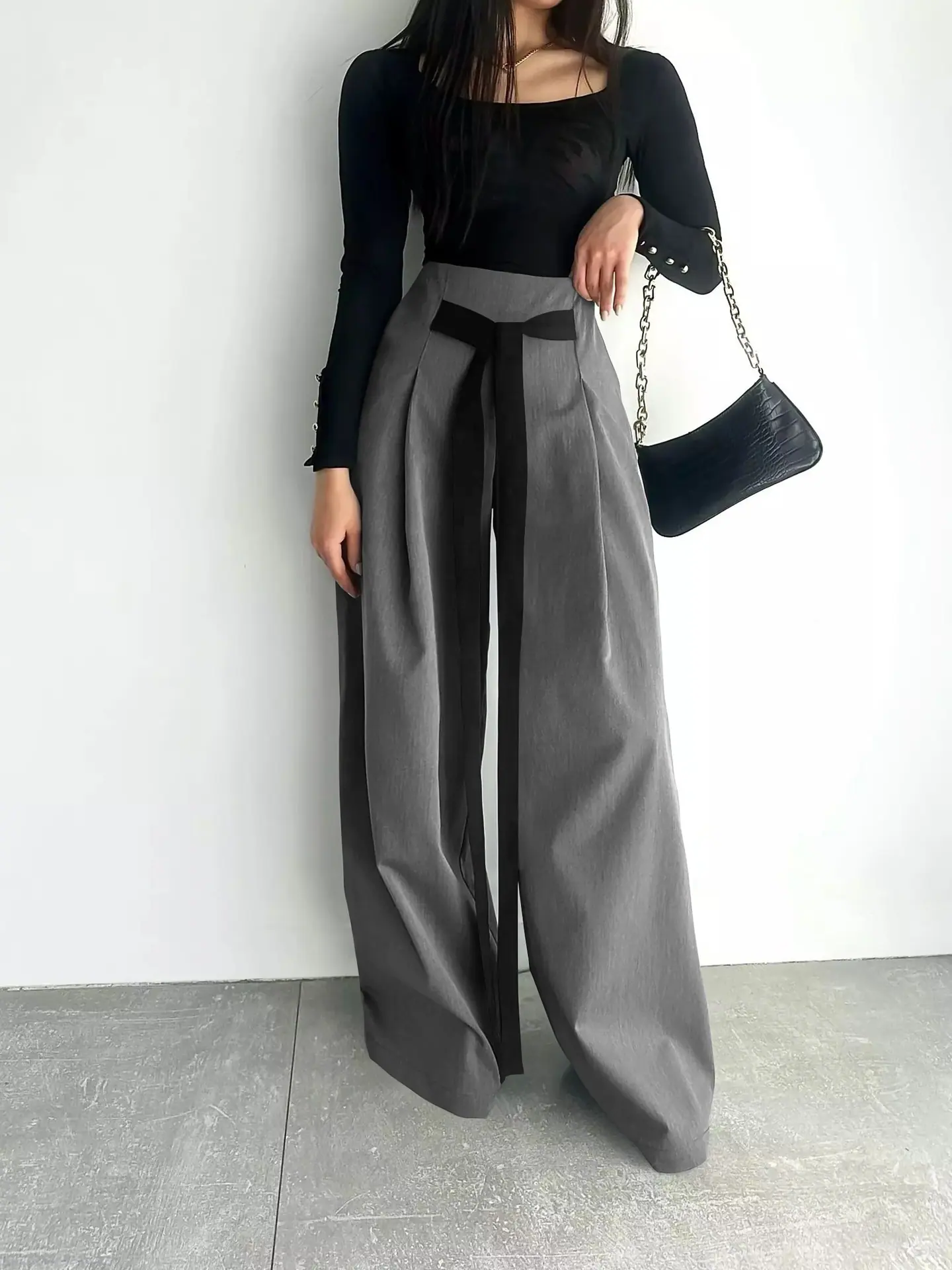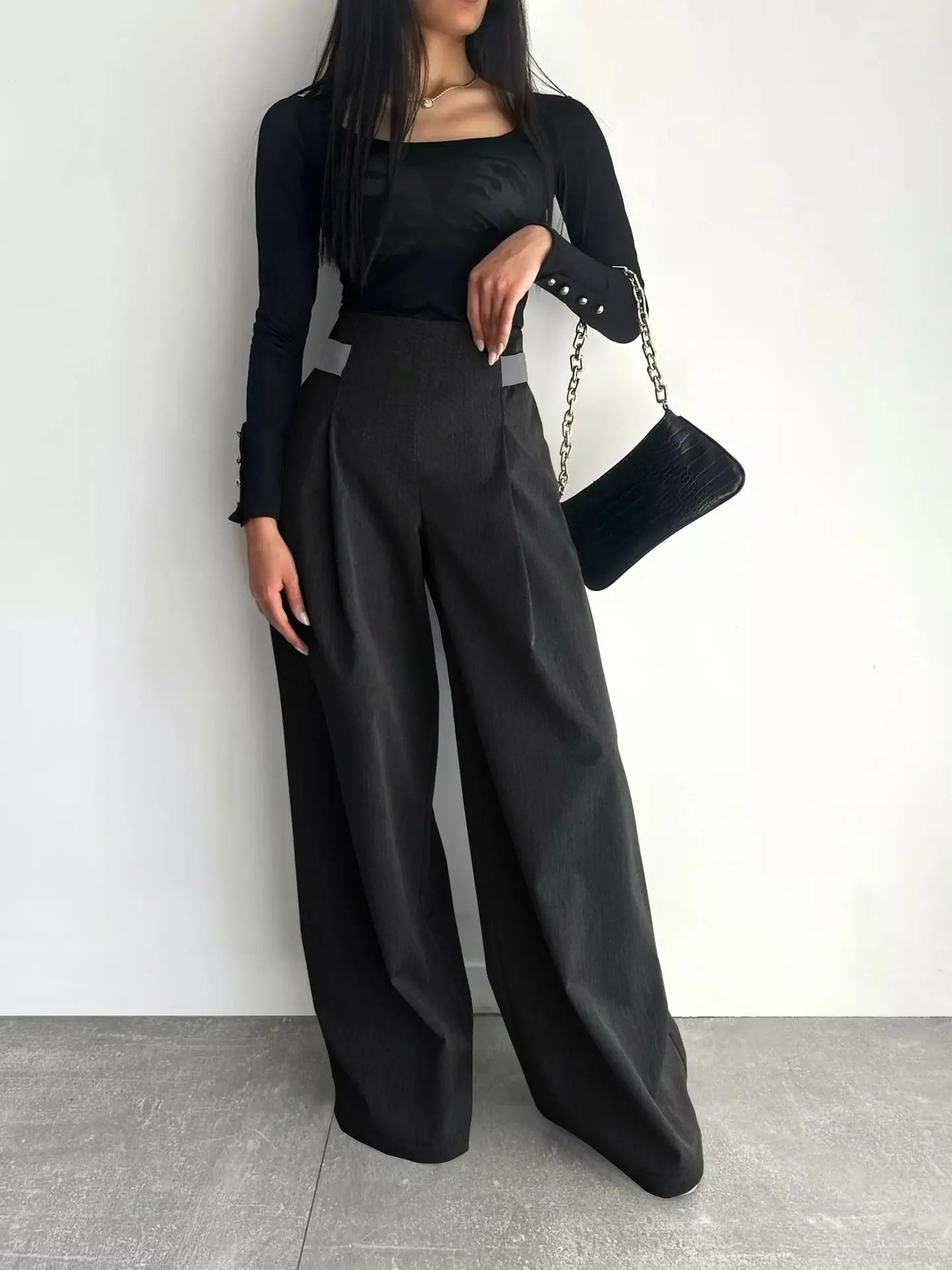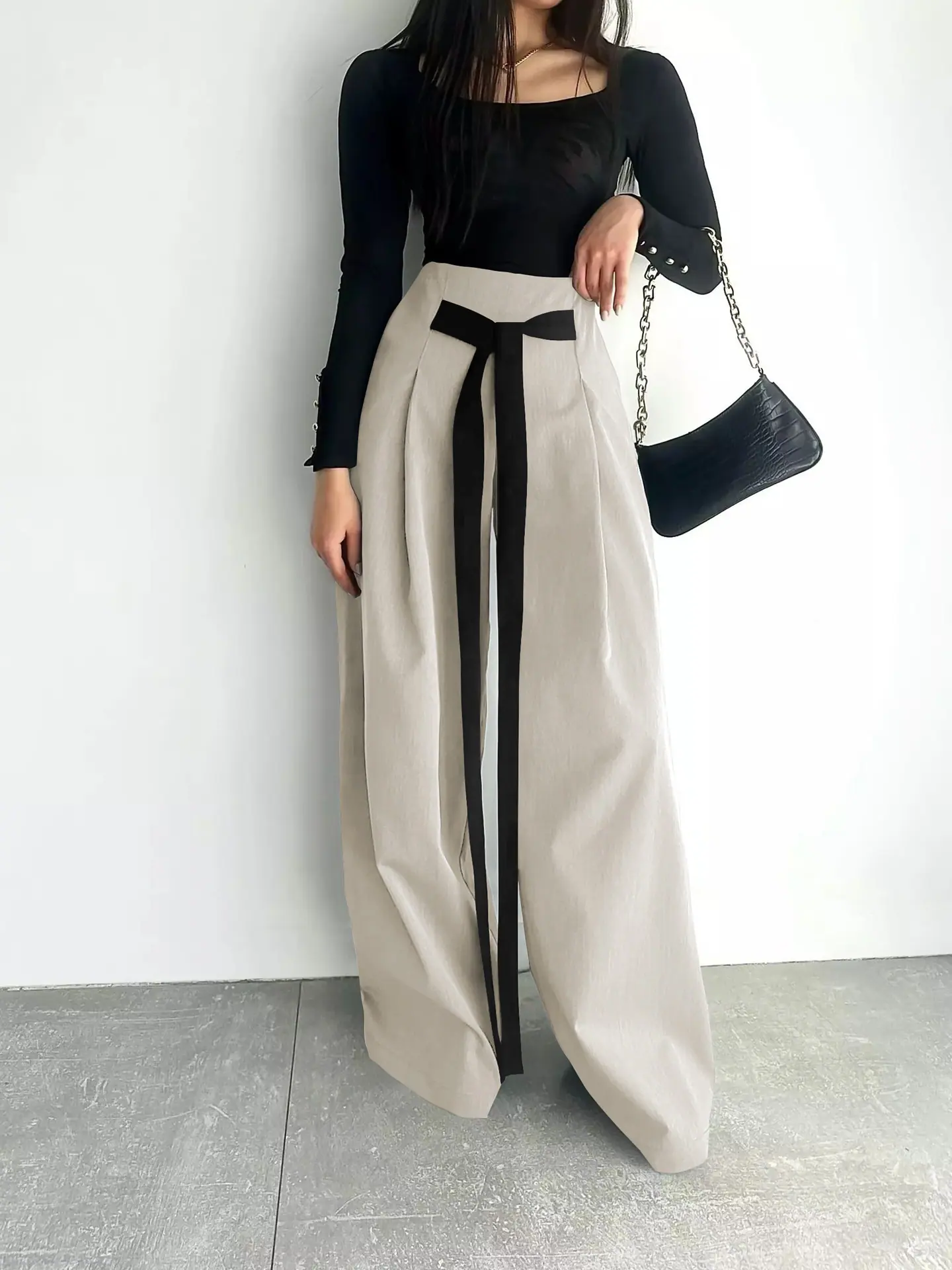 Traje de Diseño de Moda Europea y Americana para Comercio Exterior Transfronterizo, Pantalones de Pierna Ancha, Ropa de Trabajo Elegante de Color Puro de Alta Gama, Pantalones para Mujer que Estilizan la Figura