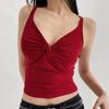 Top Camisola de Encaje con Cuello en V Estilo Francés, Empalme, Nudo Retorcido, Ajustado, Deseo Puro, Chica Caliente, Capa Base