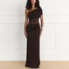 Transfronterizo 2025 Nuevo Verano para Mujer Europeo y Americano Un Hombro Color Puro Empalme Encaje Ajustado Cadera Vestido Largo