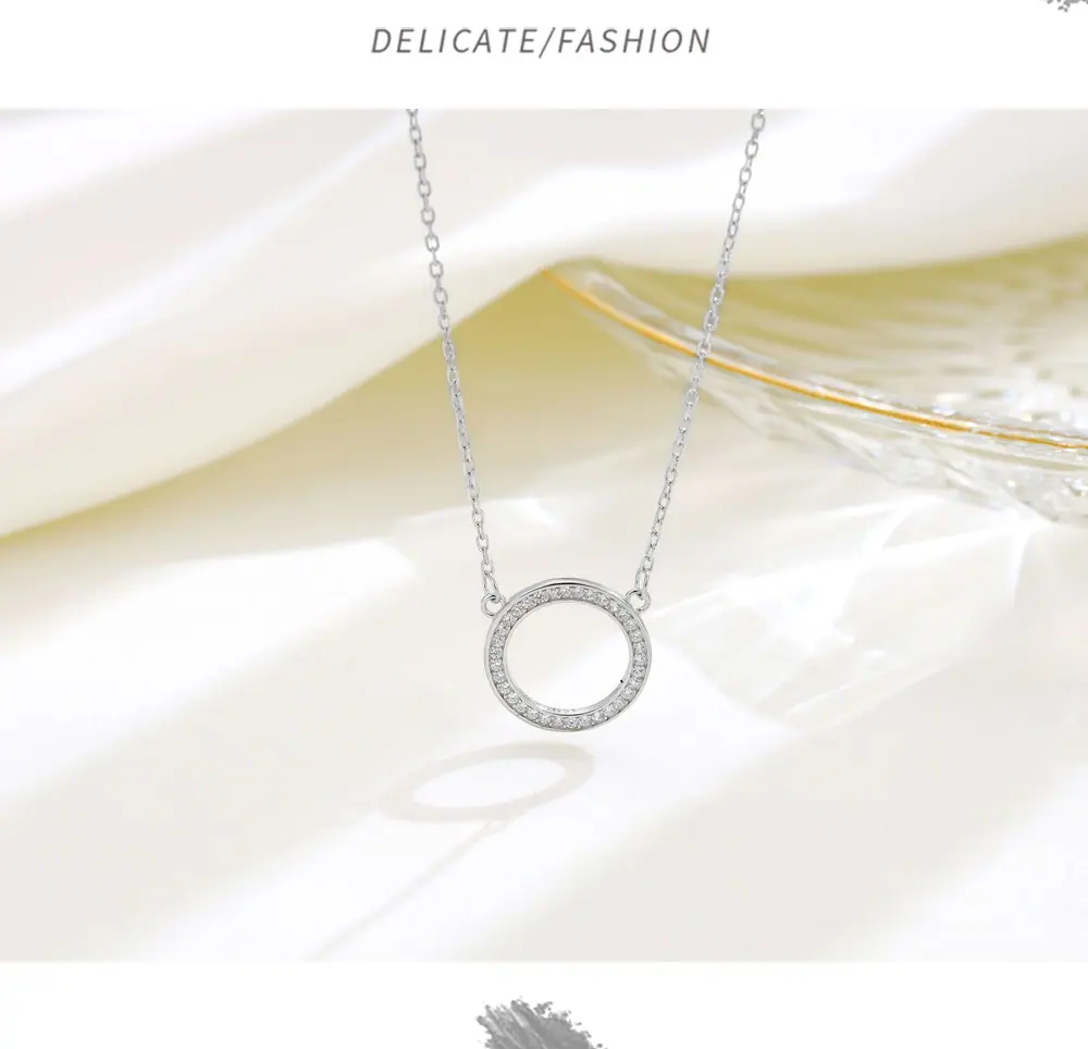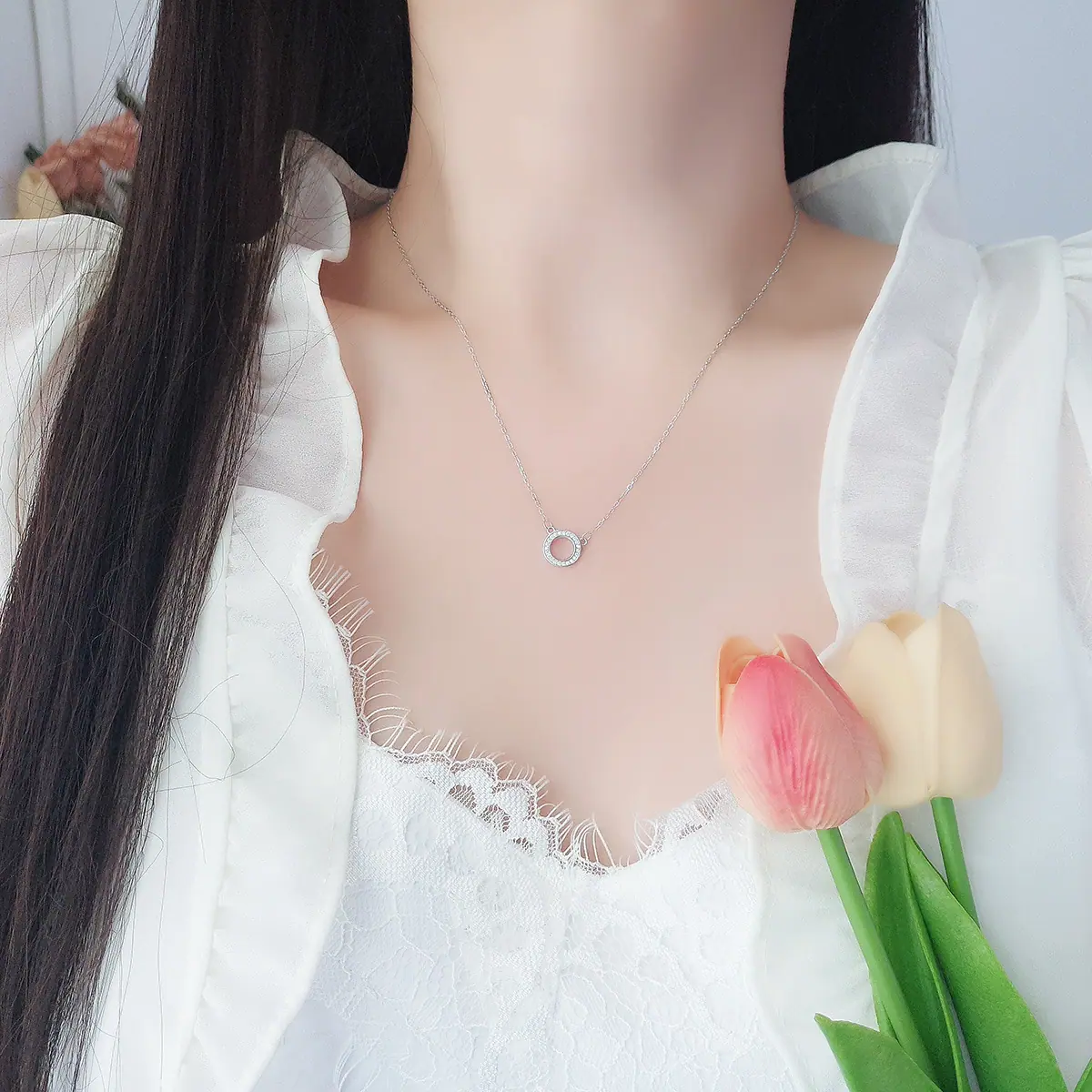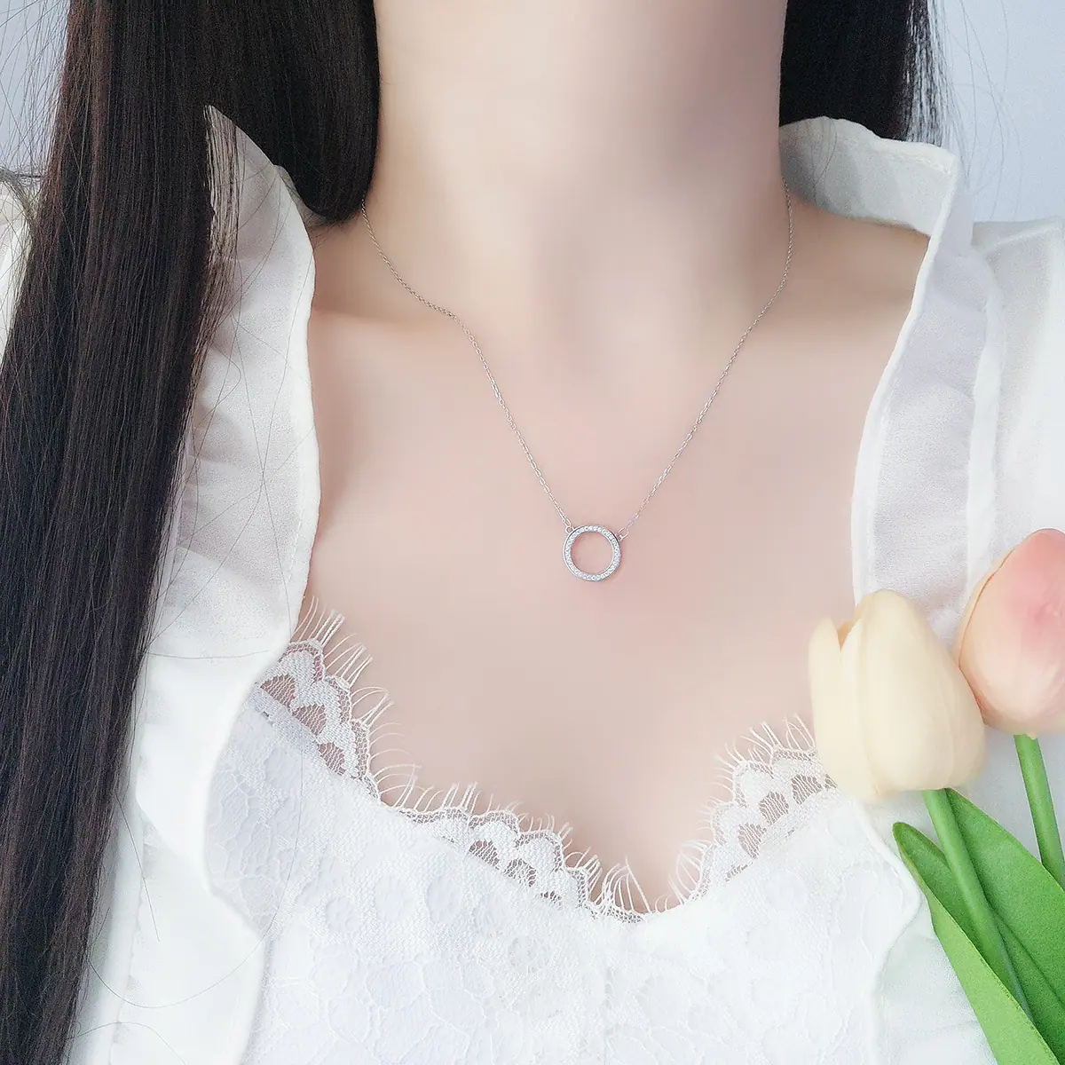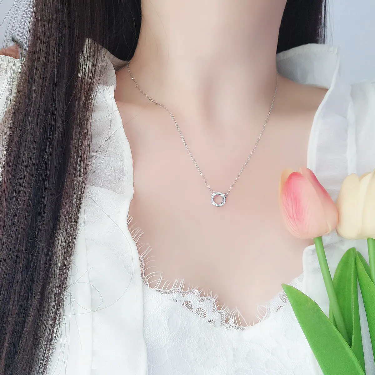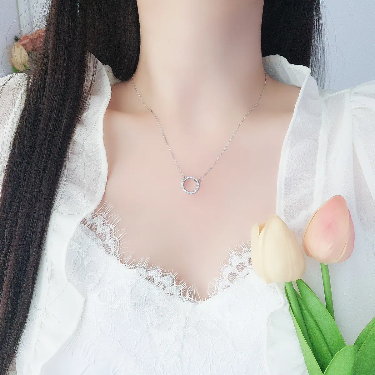 Collar circular de plata de ley S925 con incrustaciones de diamantes, elegante y a la moda, cadena de clavícula redonda sencilla, accesorios para mujer.