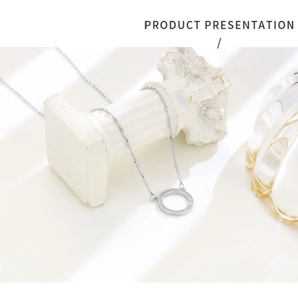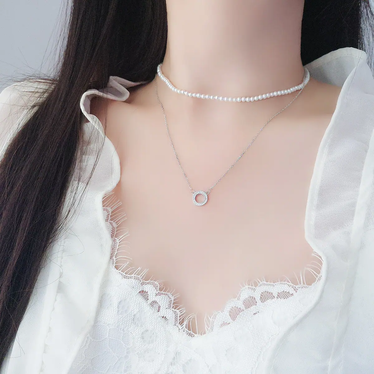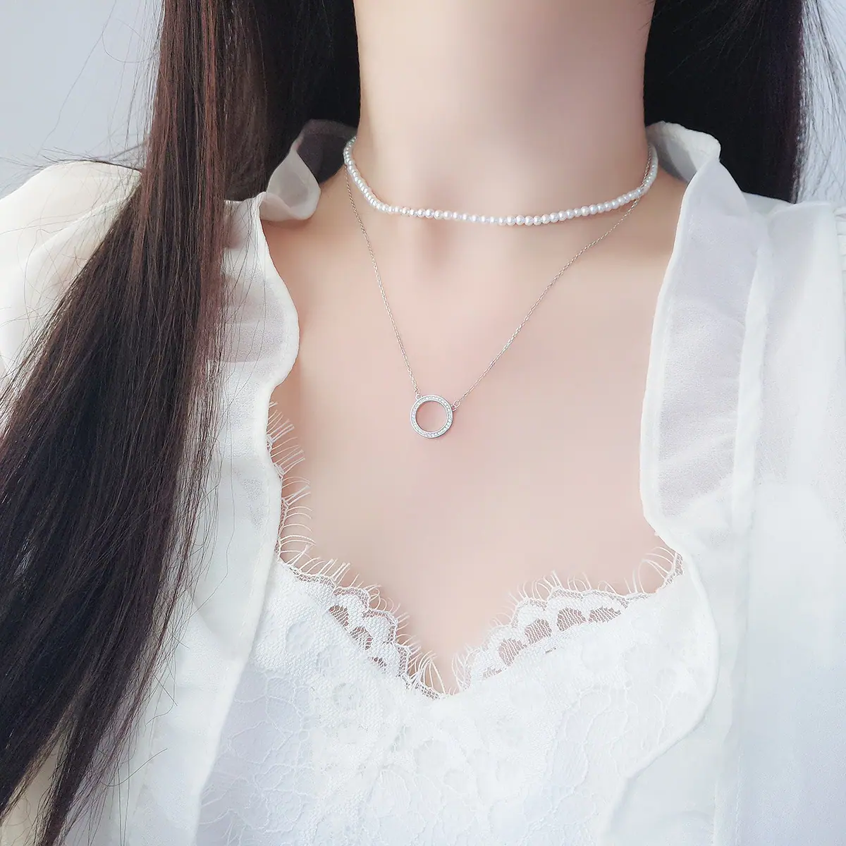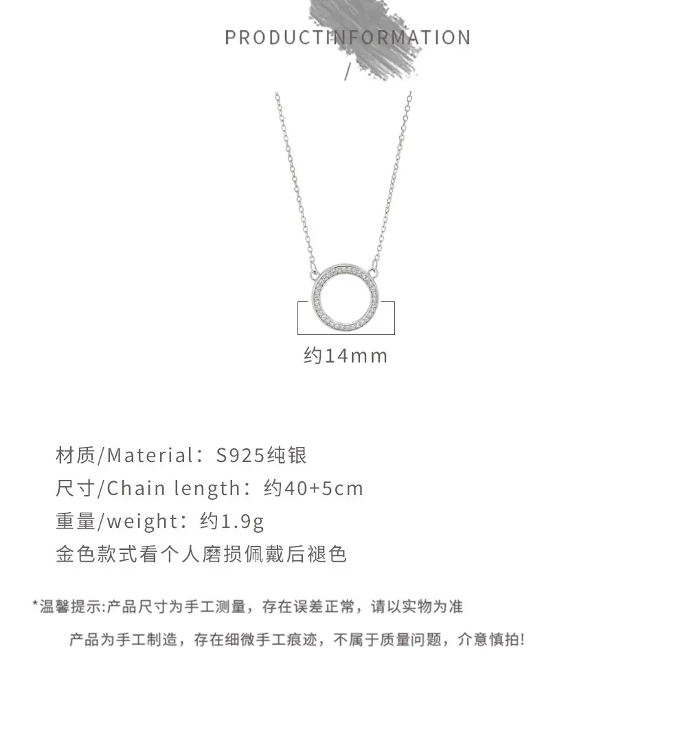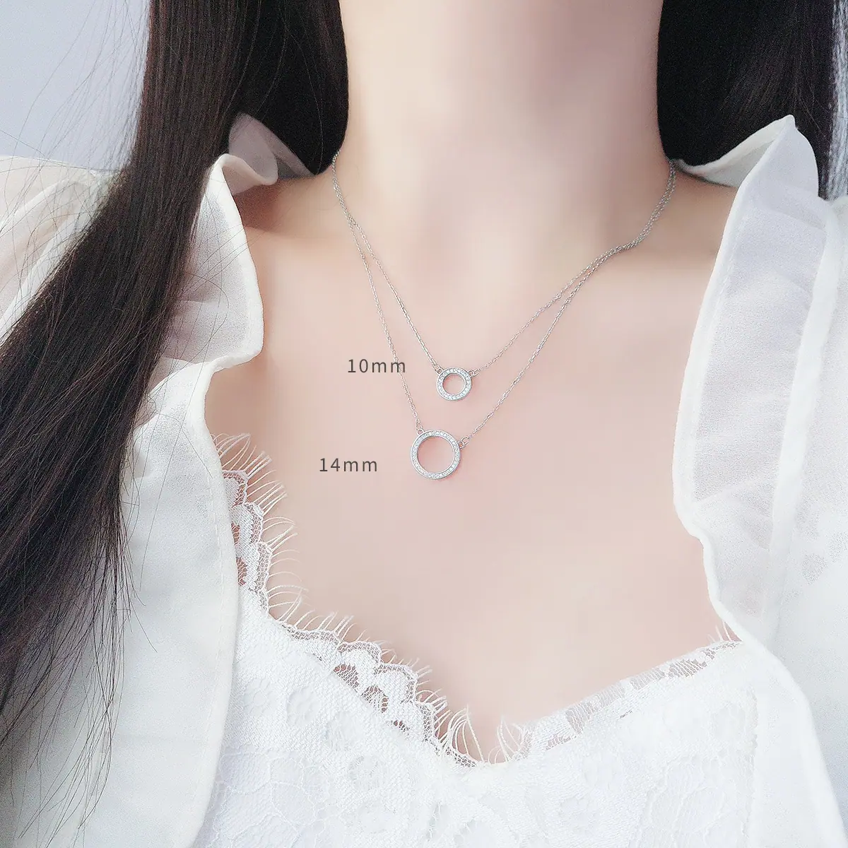 Collar circular de plata de ley S925 con incrustaciones de diamantes, elegante y a la moda, cadena de clavícula redonda sencilla, accesorios para mujer.