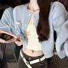 Suéter de Punto Azul Nuevo Primavera y Otoño 2025 Cárdigan para Mujer Top Corto Exterior Diseño de Nicho Petite
