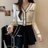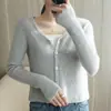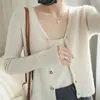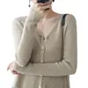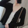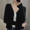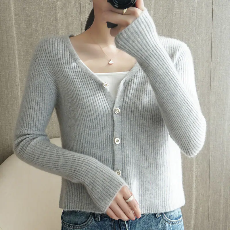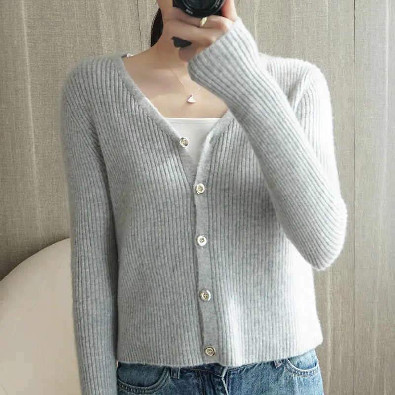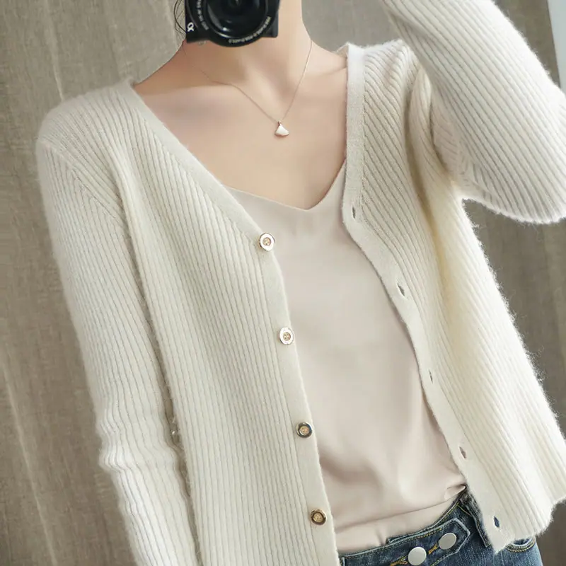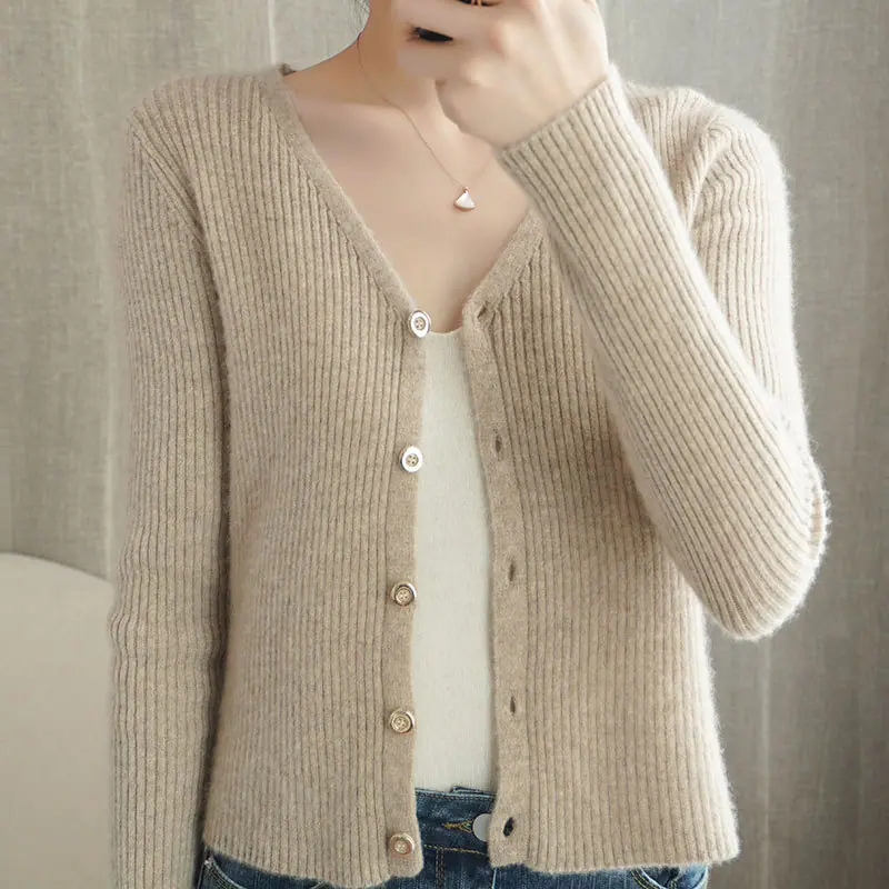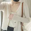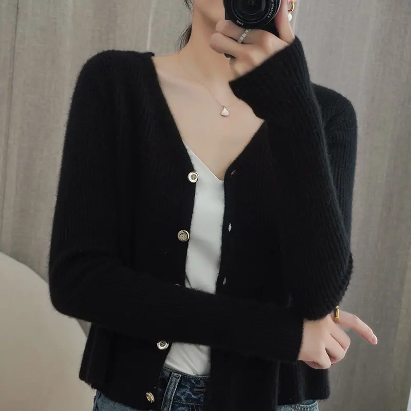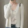 Cárdigan de punto de moda de cintura alta nuevo de otoño 2024, abrigo corto exterior adelgazante, suéter de cuello en V, abrigo pequeño, top para mujer