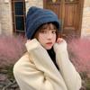 Gorro de Invierno Nuevo para Mujer, Color Sólido Versátil, Adelgazante, Pequeño de Punto, con Dobladillo Plegable, Gorro de Punto Grueso Holgado con Borde Plegado