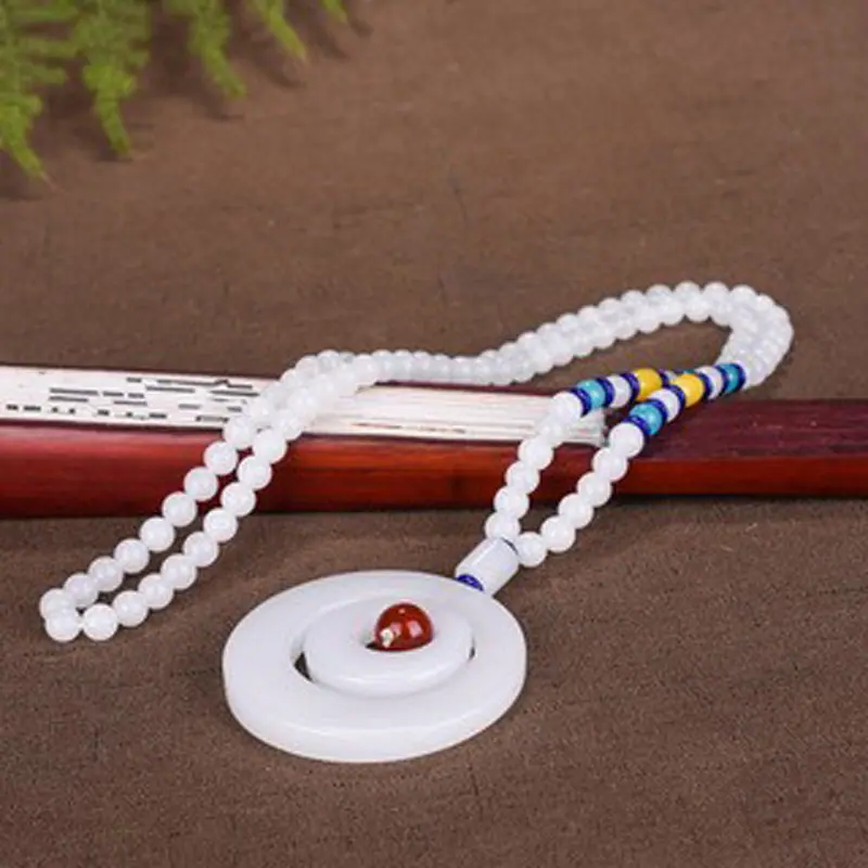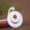 Jade de Xinjiang Jade jade de seda dorada círculo concéntrico madre e hijo anillo cadena para suéter doble anillo hebilla colgante colgante femenino