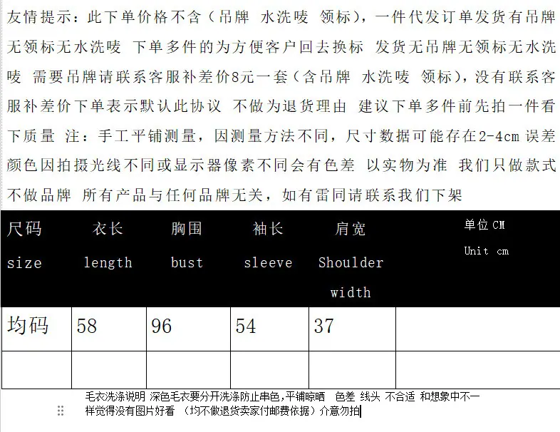 Dado que el producto sale de fábrica sin marcas de lavado, marcas de cuello o etiquetas colgantes, tenga cuidado al fotografiarlo.