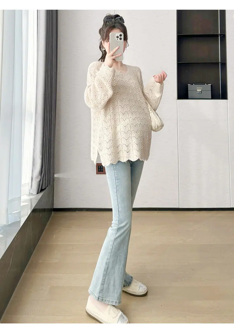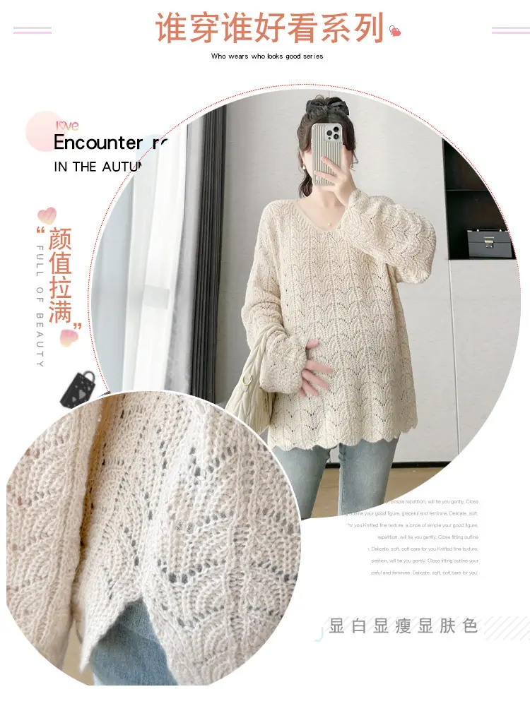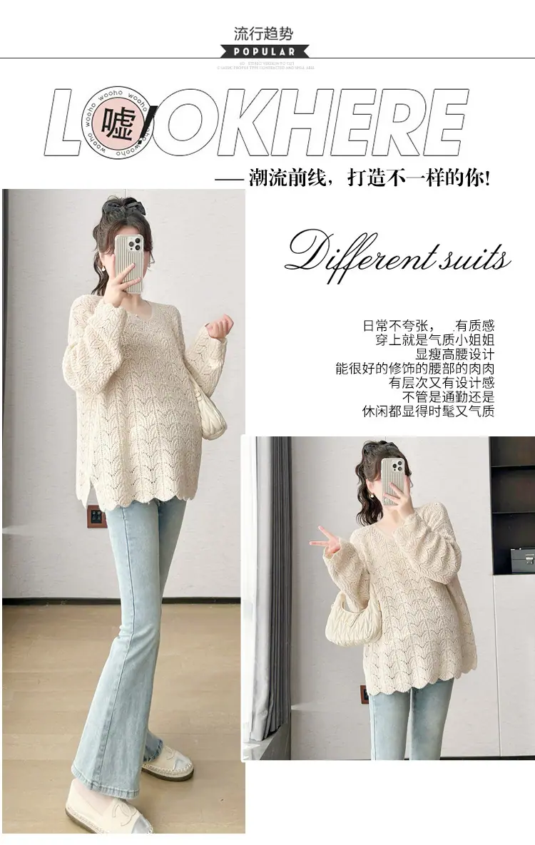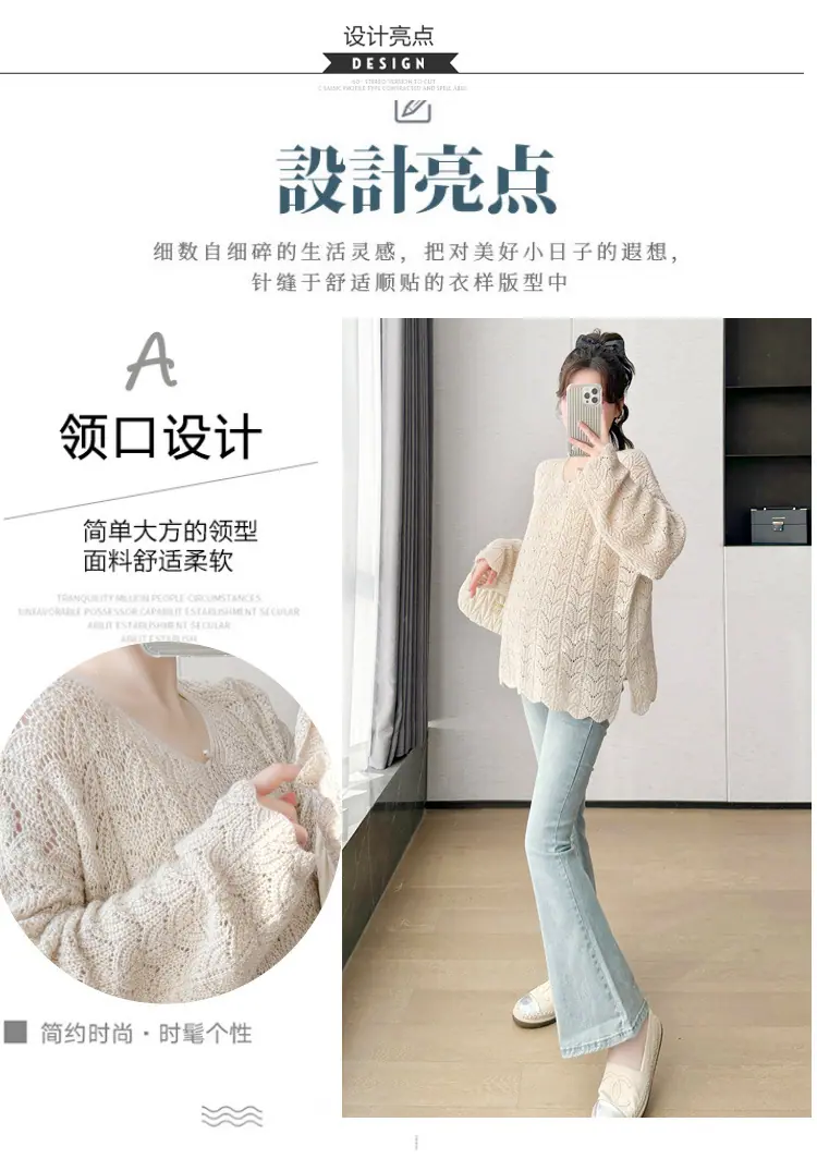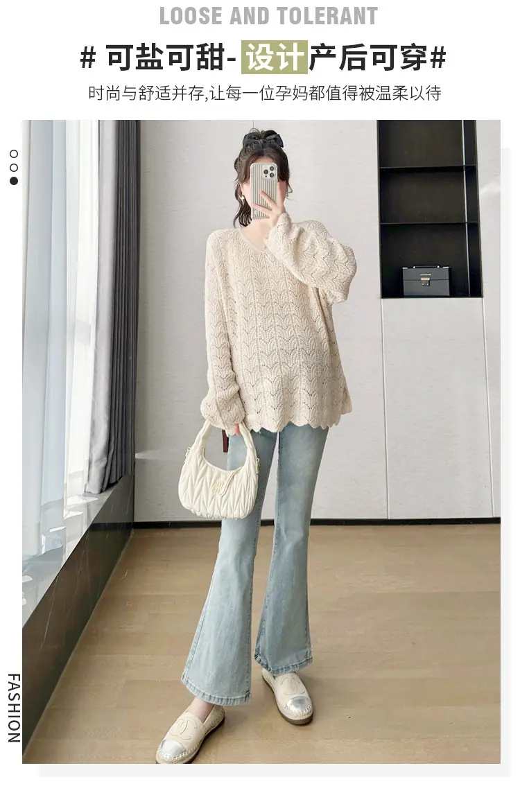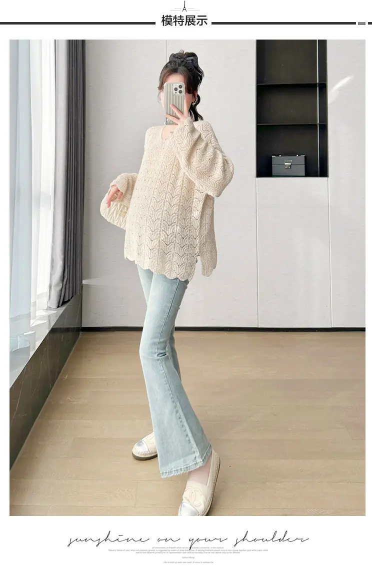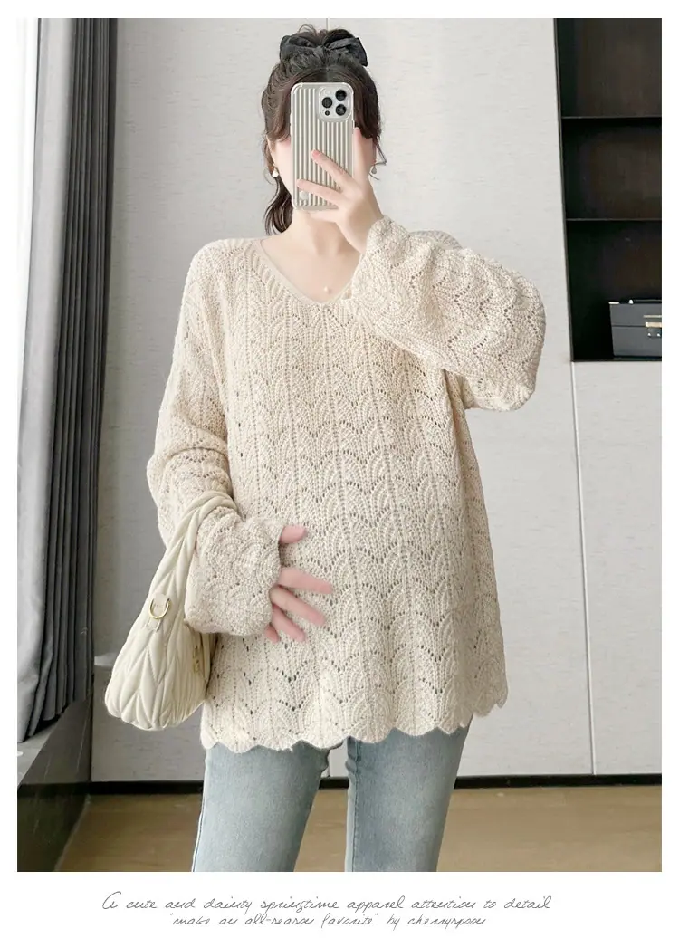Ropa de Maternidad Tops de Primavera 2025 Nueva Moda y Trendy Mamá Suelto Largo Medio Cuello en V Cut Out Tejido